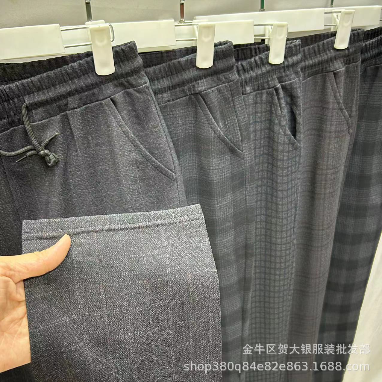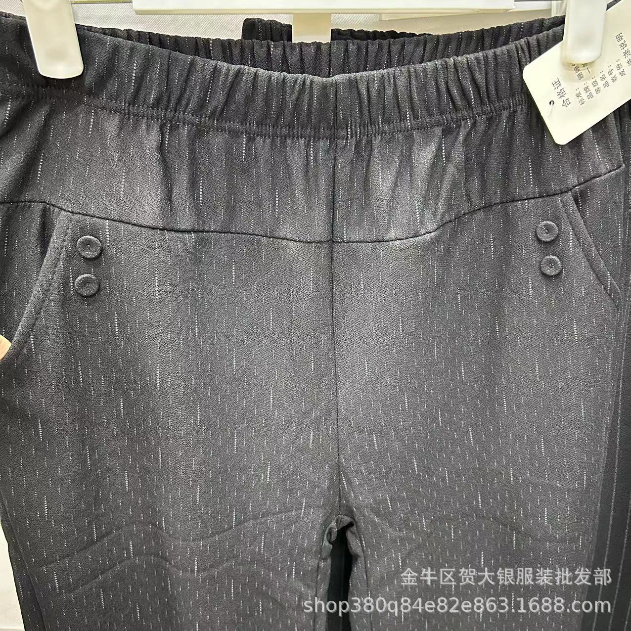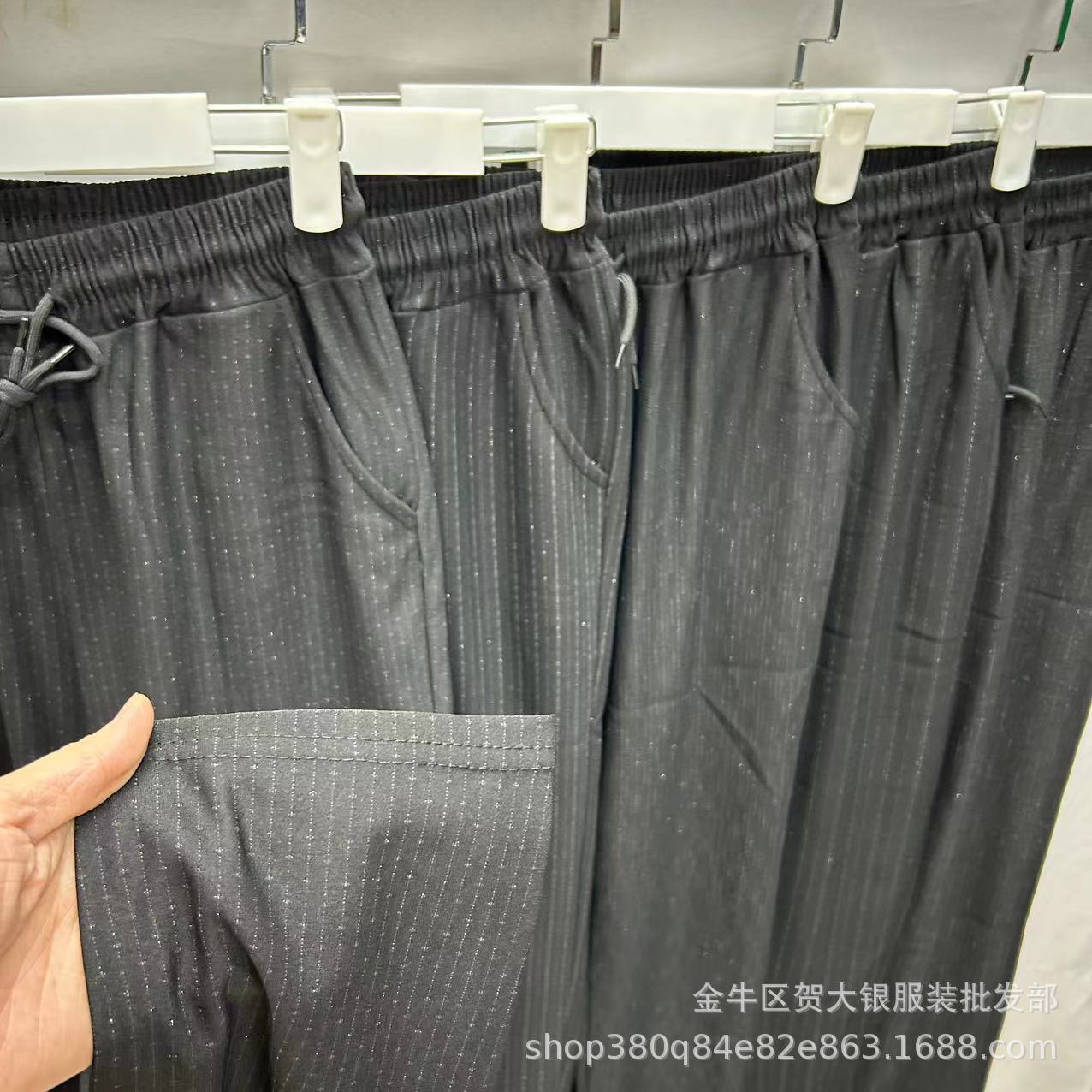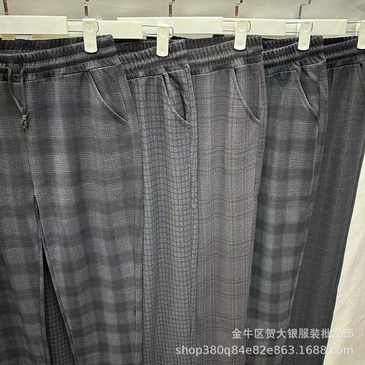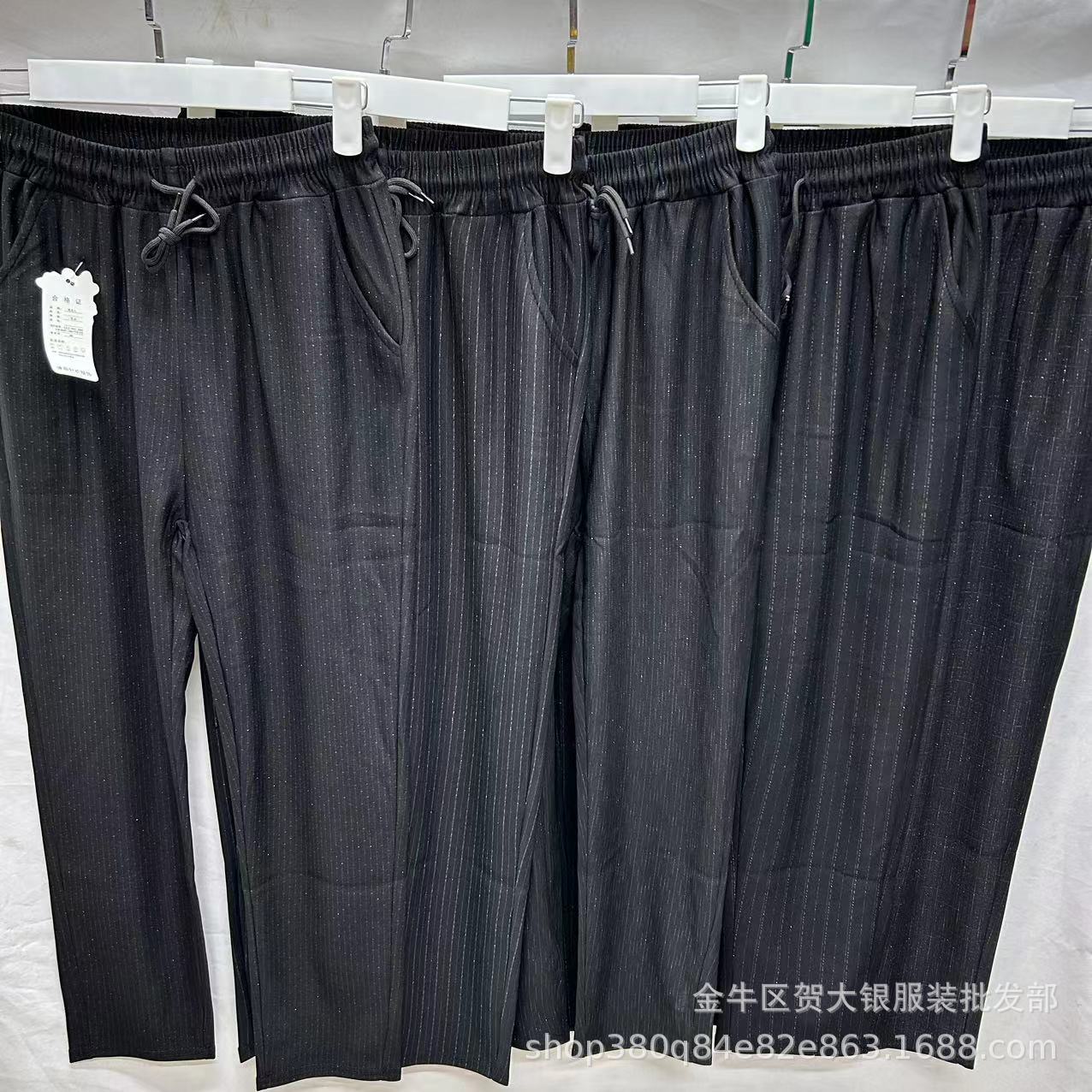 25 весенних, осенних и зимних повседневных брюк с неопрятной веревкой для мам, верхние брюки большого размера с высокой талией, стойки с женской одеждой среднего и пожилого возраста.