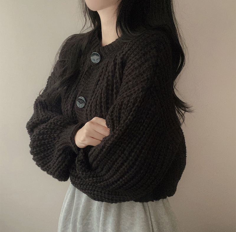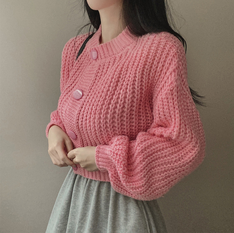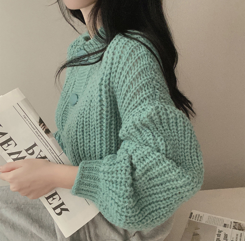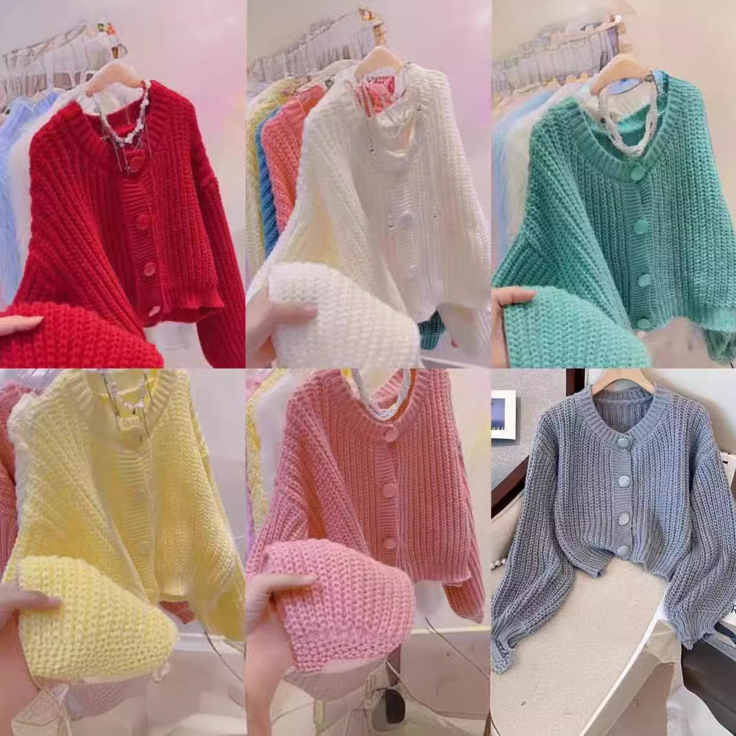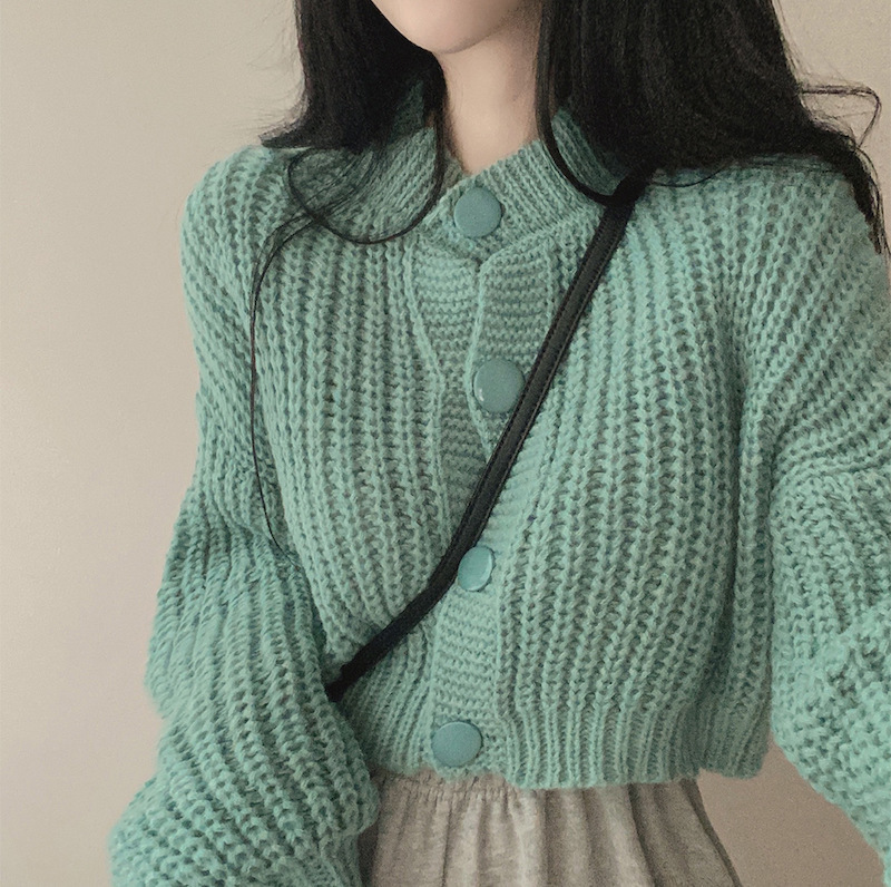 Сплошной цвет минималистский ветровой вязаный короткий свитер для свитера Трансграничная амазонка внешней торговли тонкая вязаная девушка на пуговицах