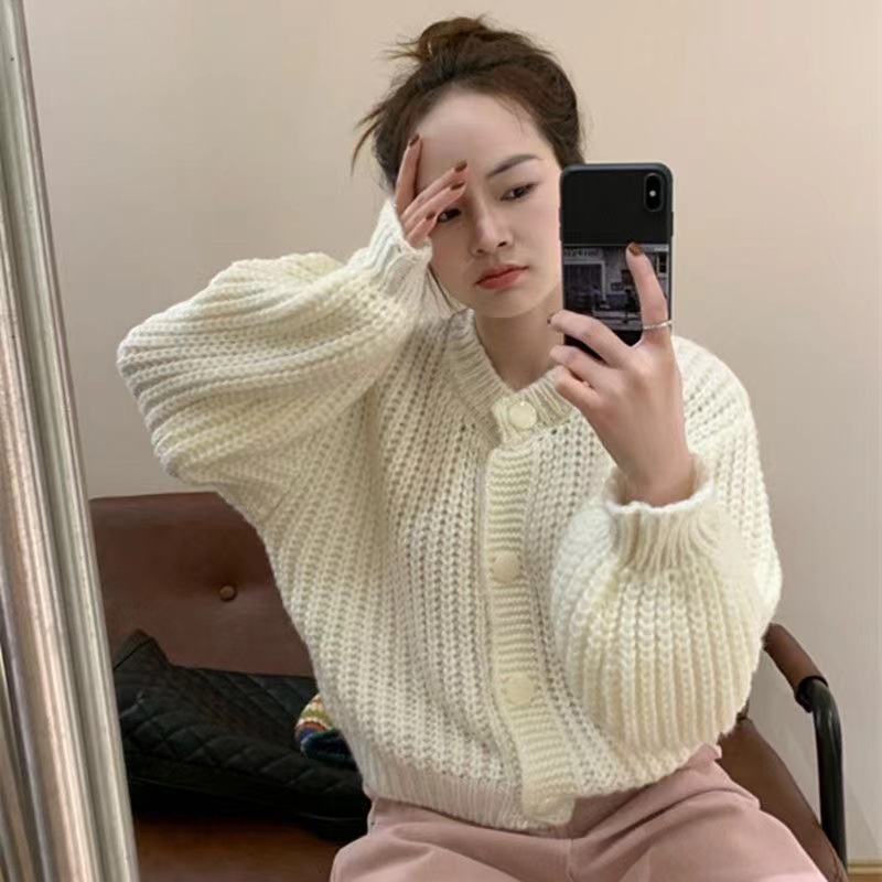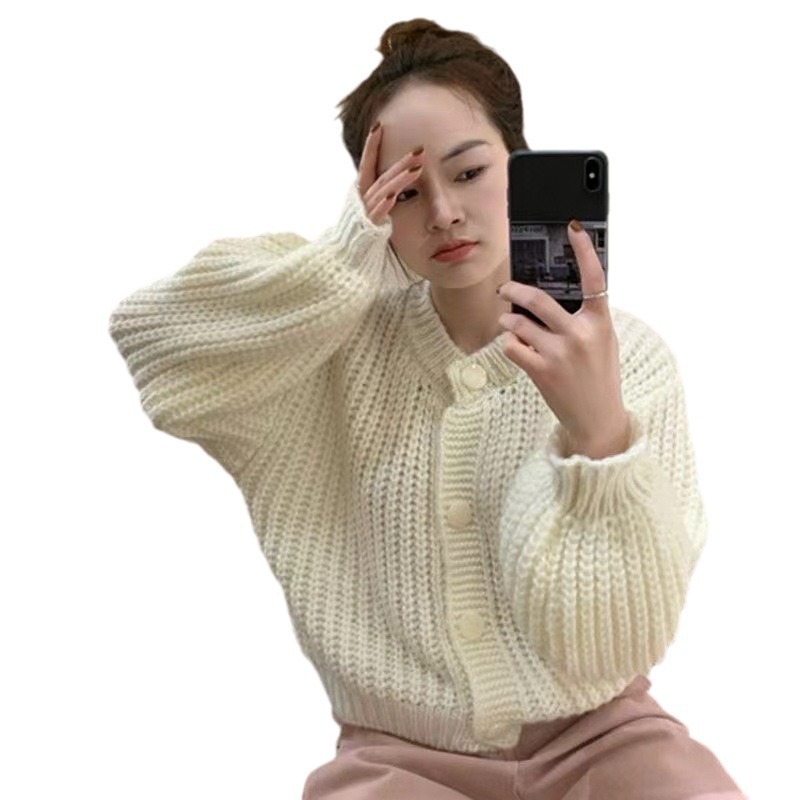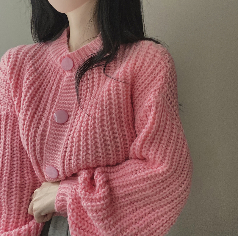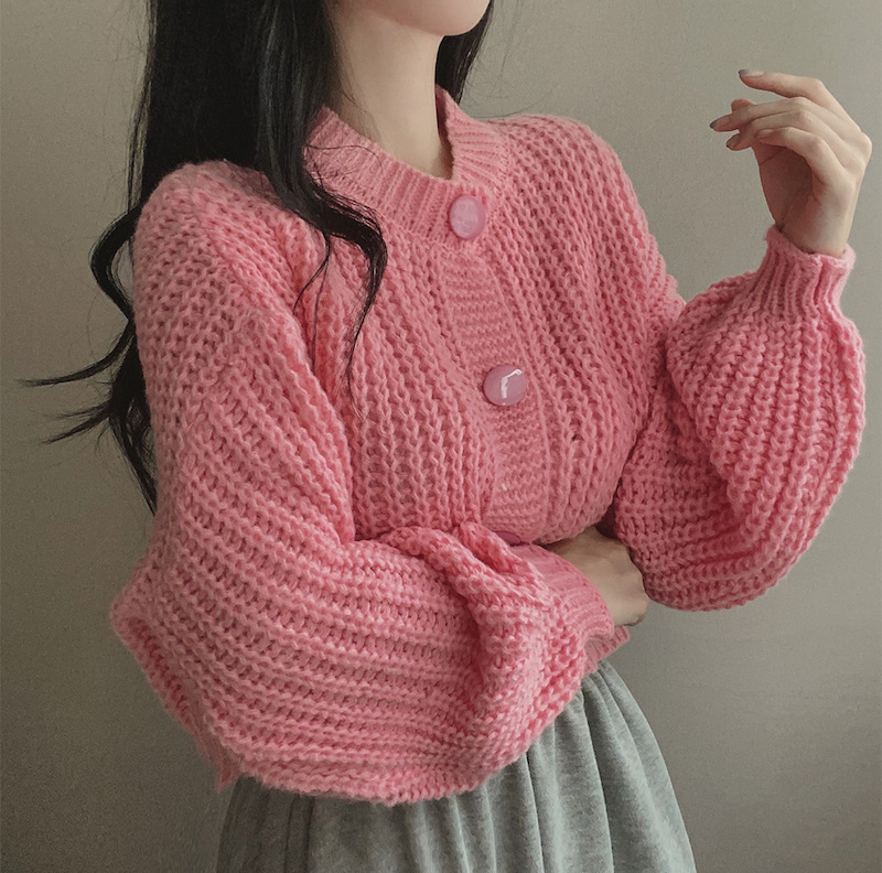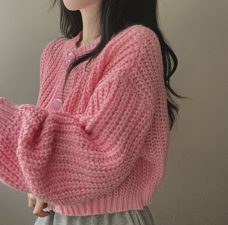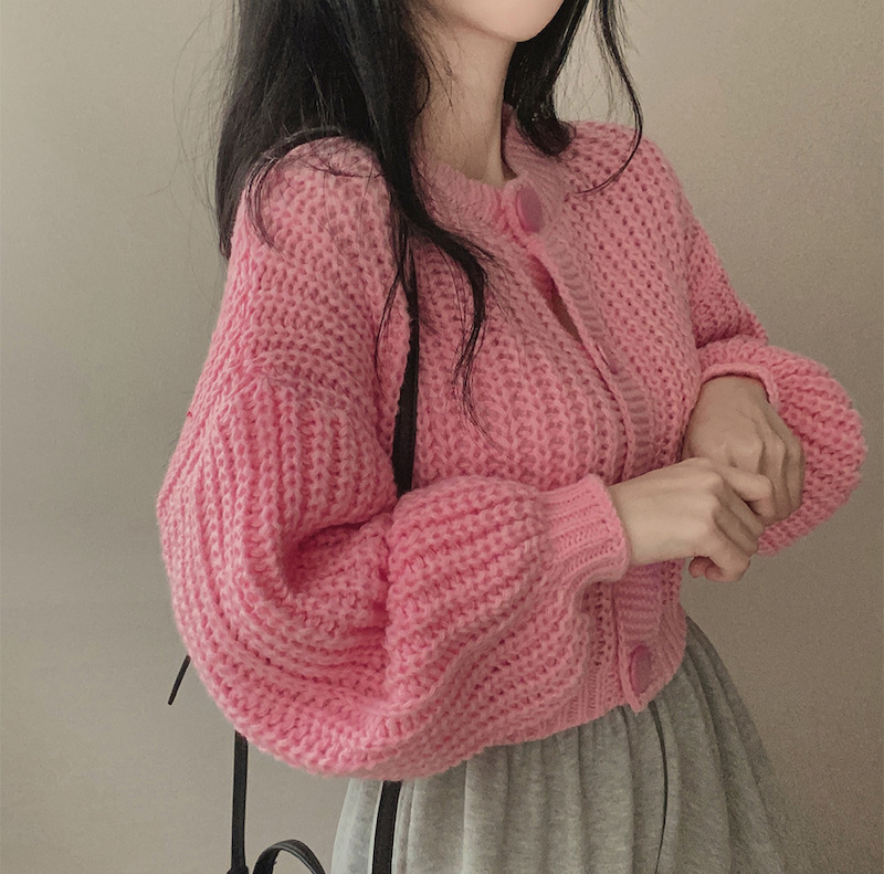 Сплошной цвет минималистский ветровой вязаный короткий свитер для свитера Трансграничная амазонка внешней торговли тонкая вязаная девушка на пуговицах