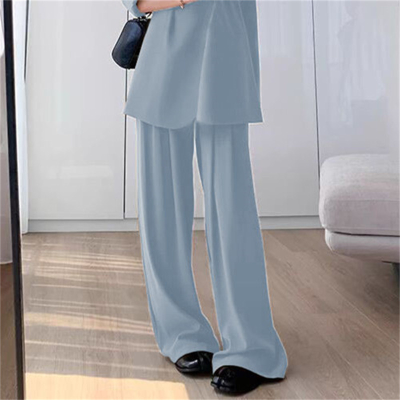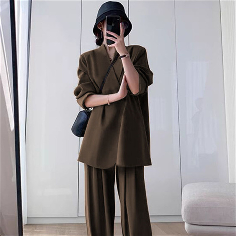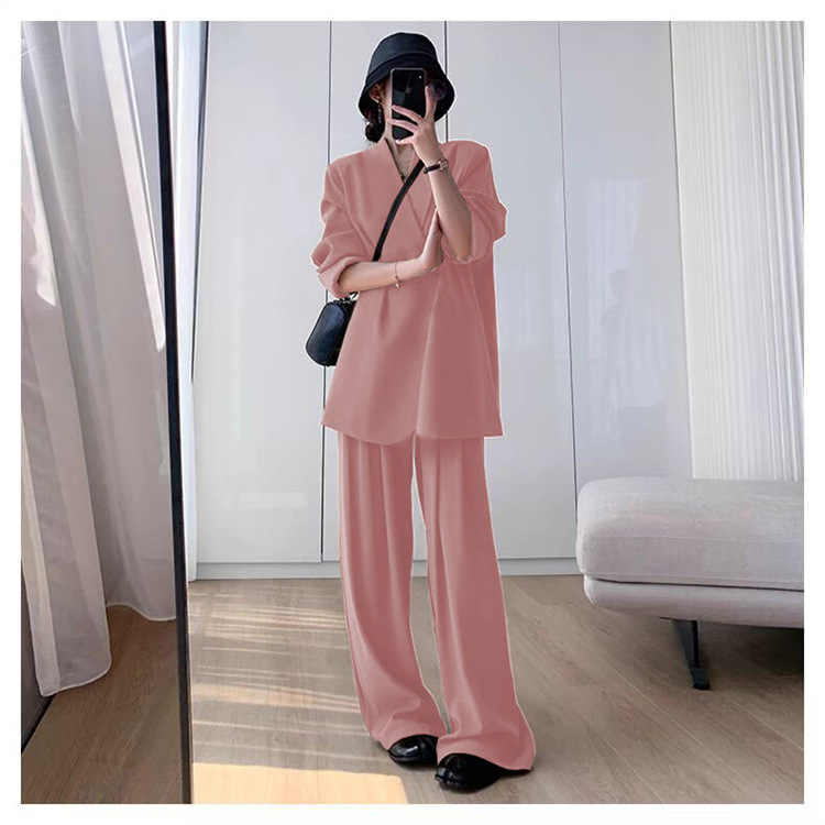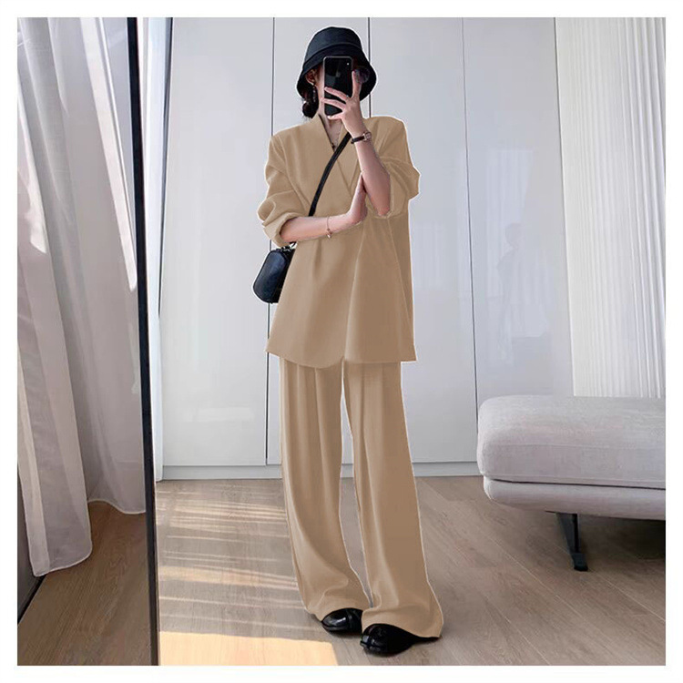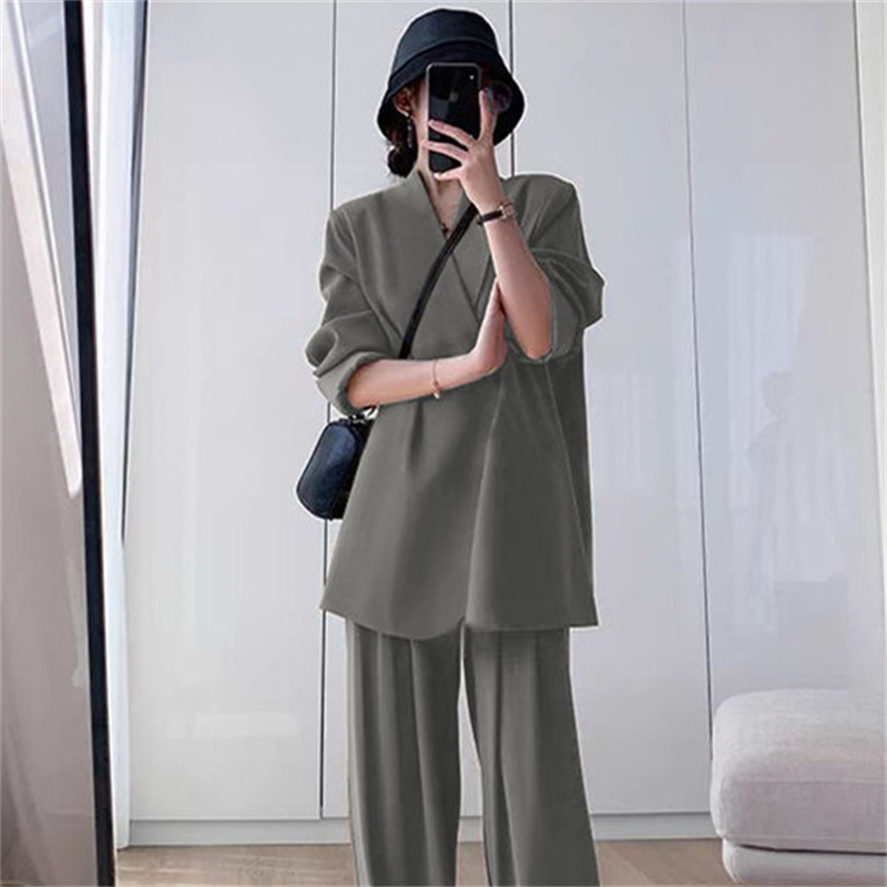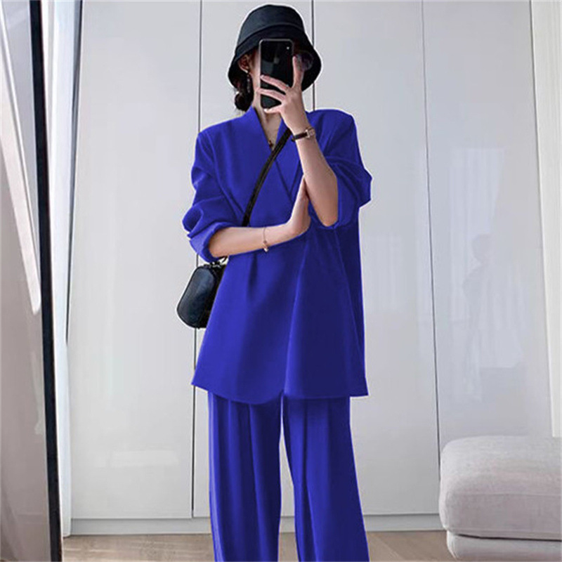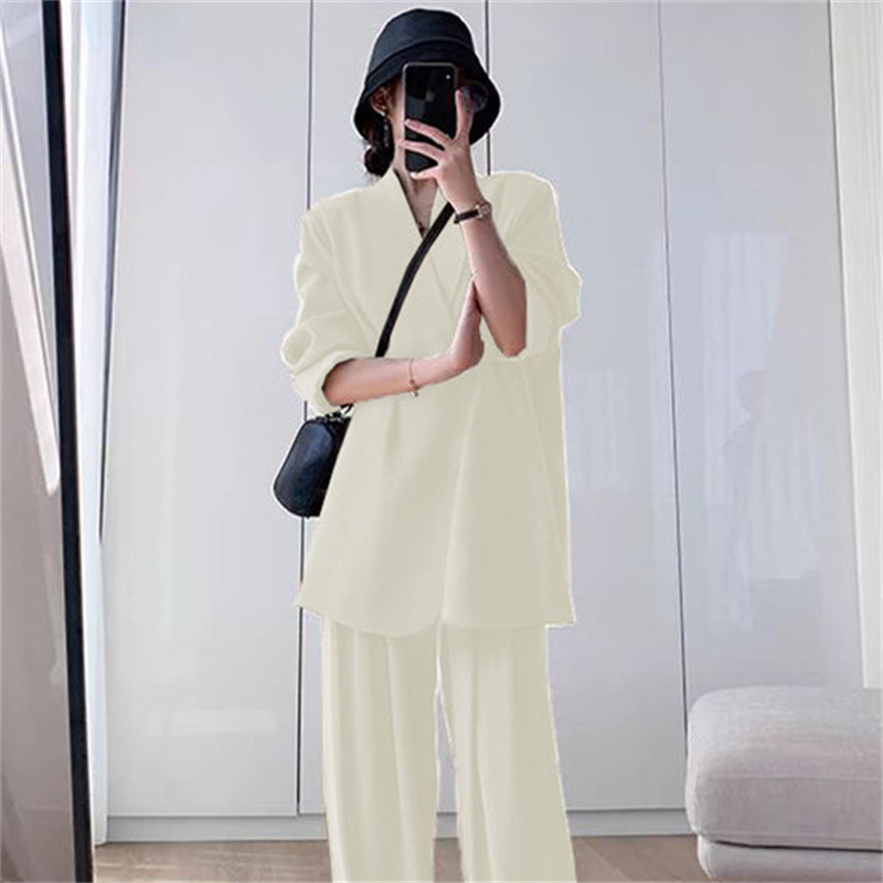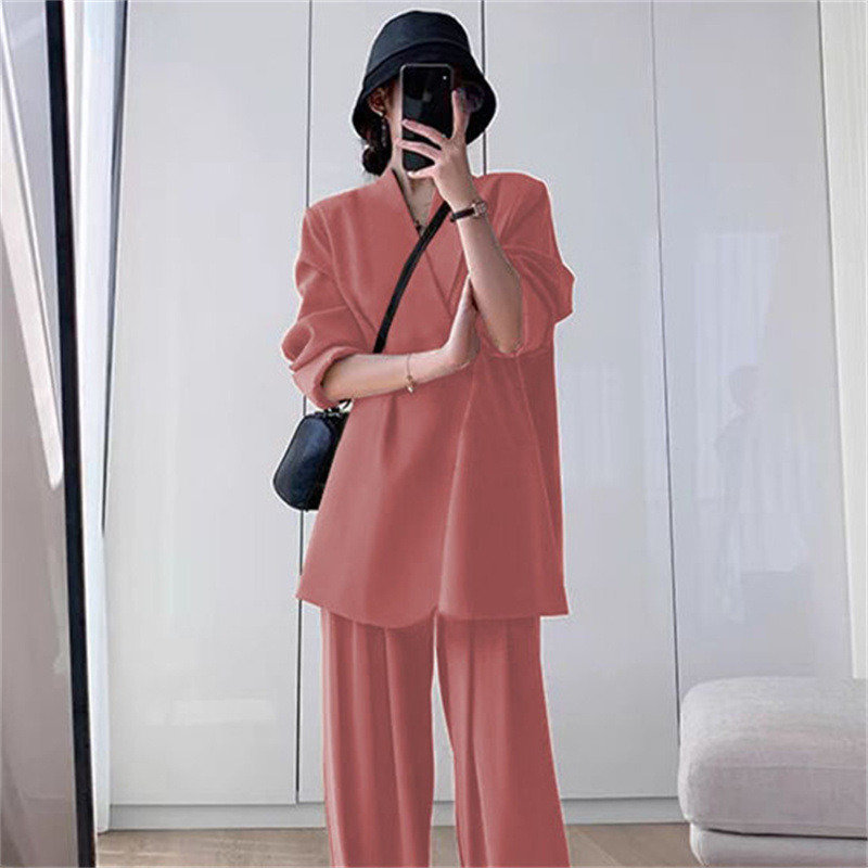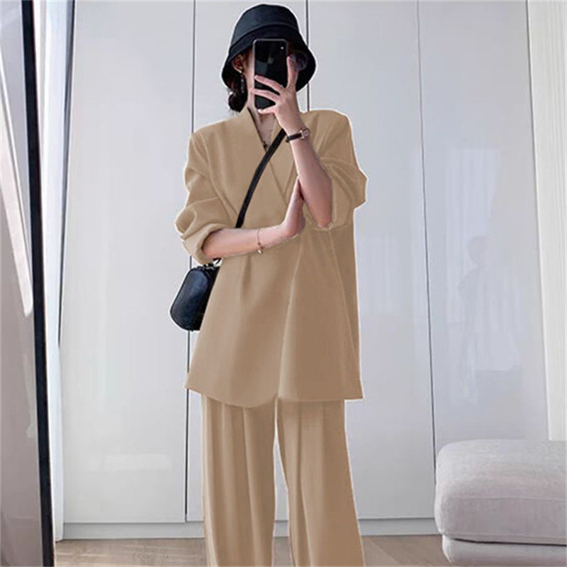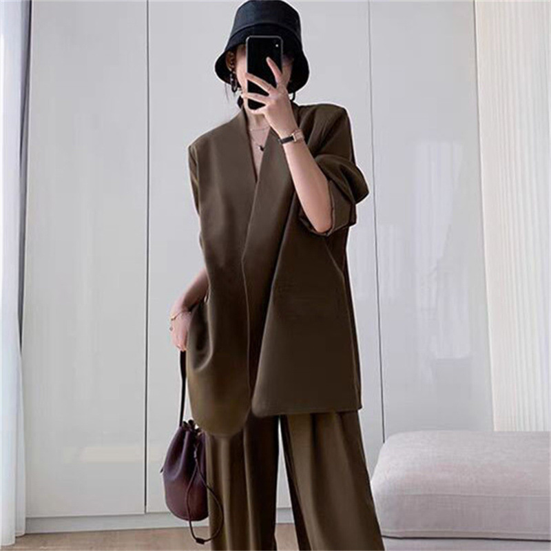 Повседневный костюм для женщин 2025: летний тонкий комплект с широкими брюками для миниатюрных фигур, элегантный весенне-осенний модный повседневный костюм для женщин
