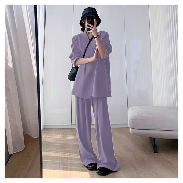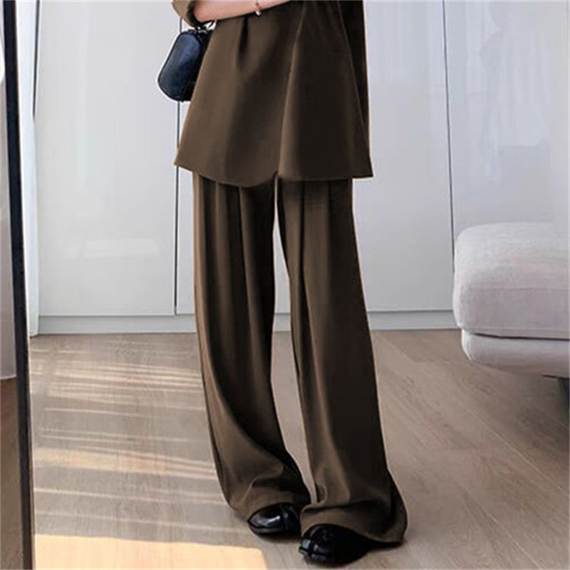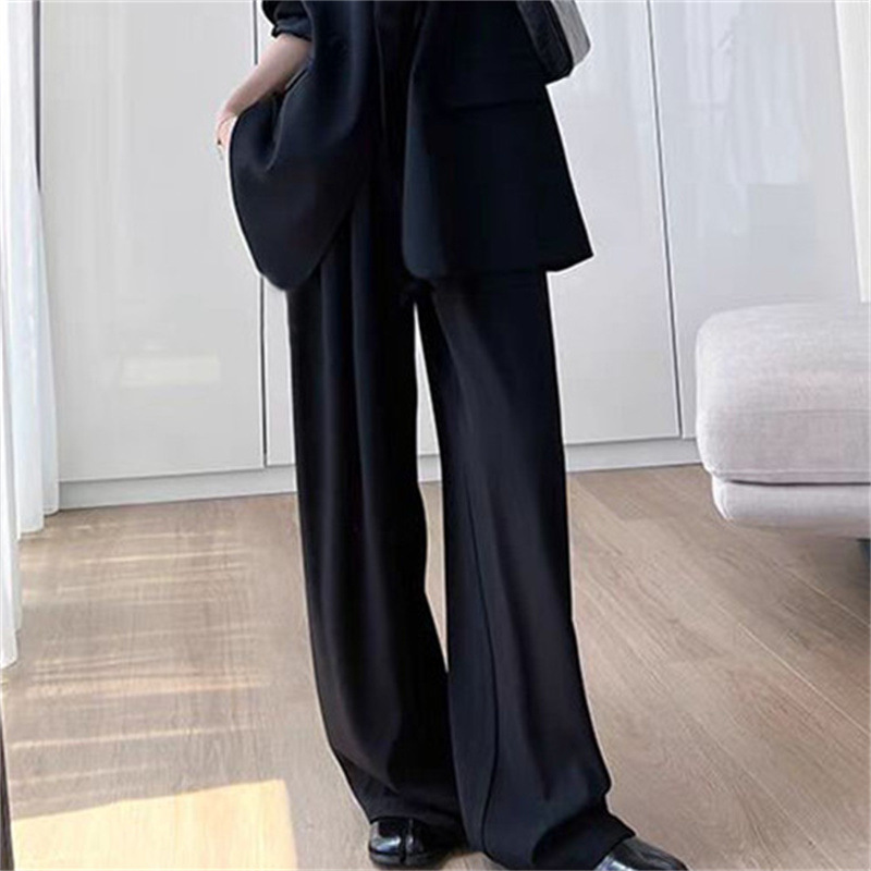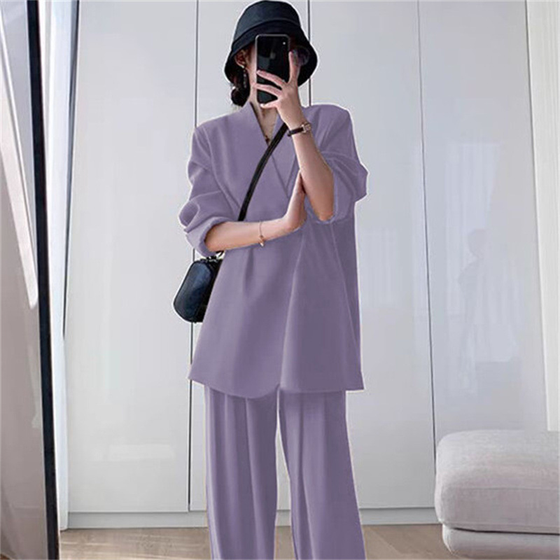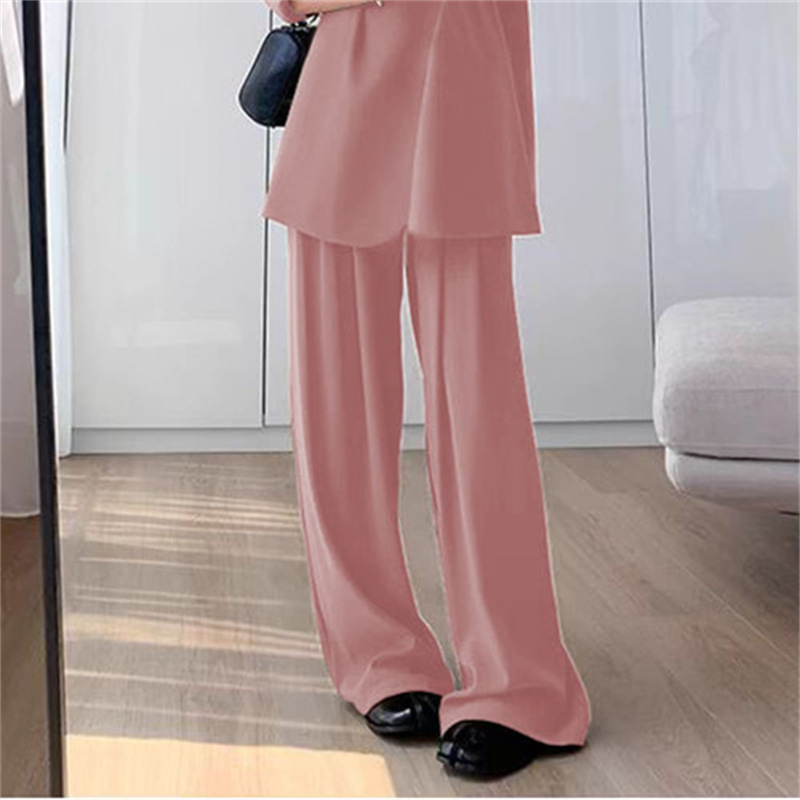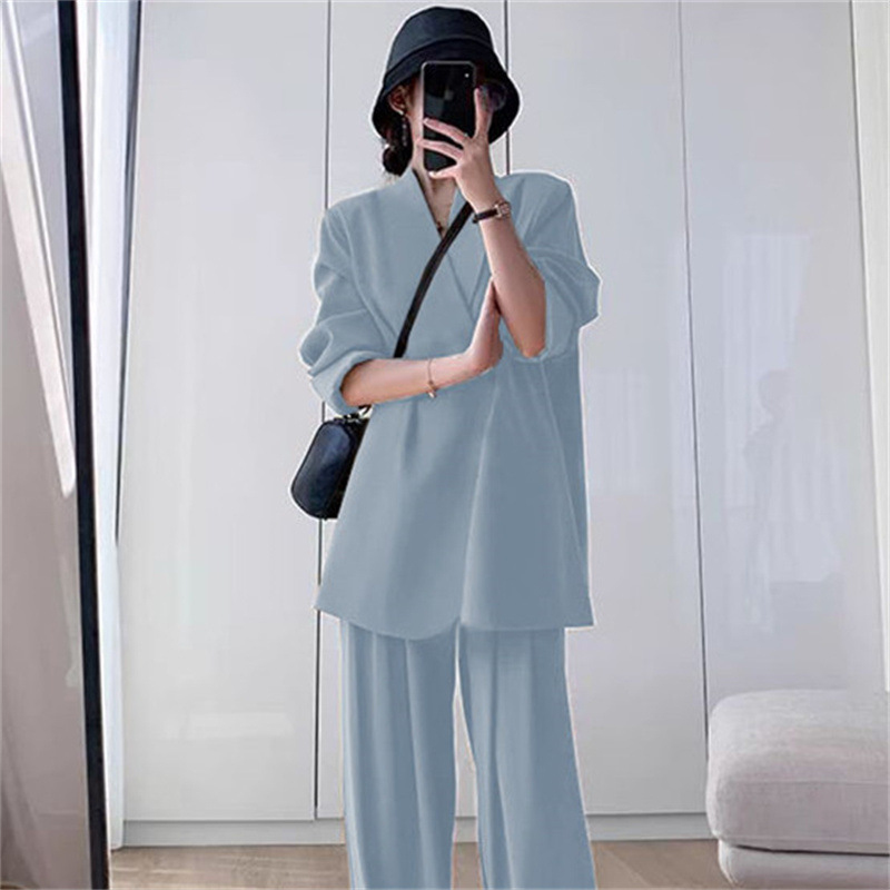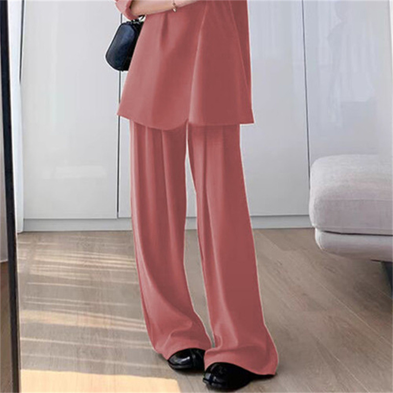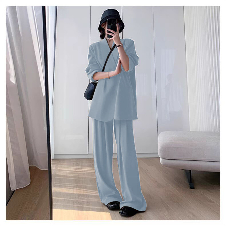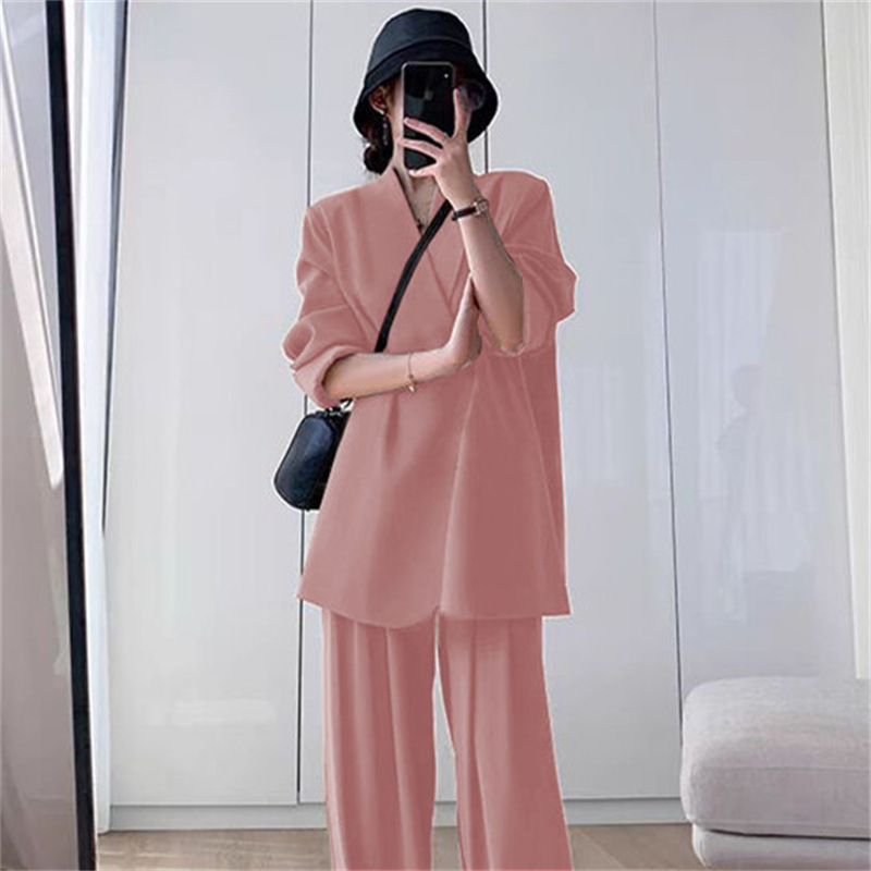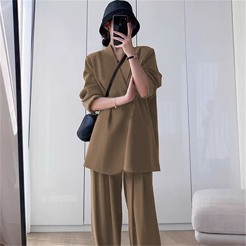 Повседневный костюм для женщин 2025: летний тонкий комплект с широкими брюками для миниатюрных фигур, элегантный весенне-осенний модный повседневный костюм для женщин