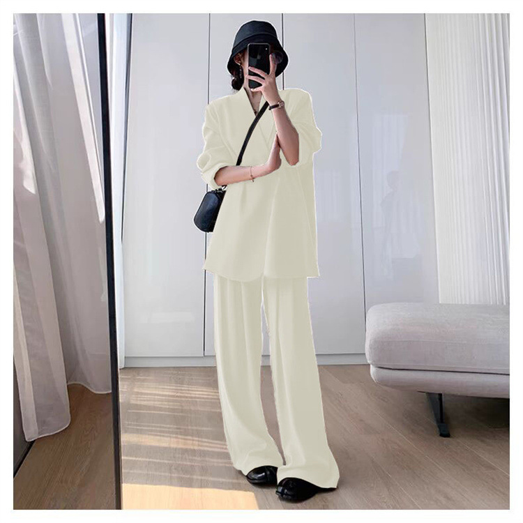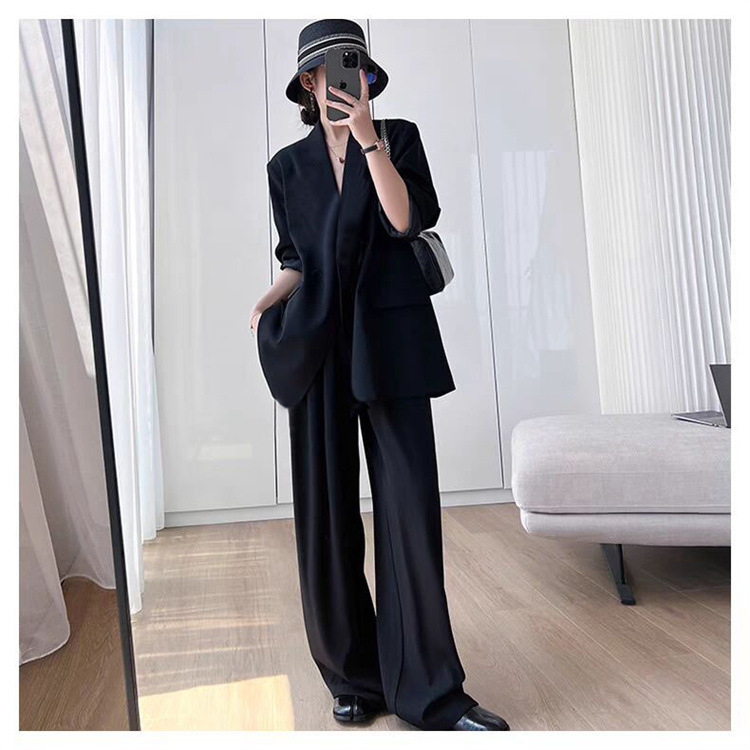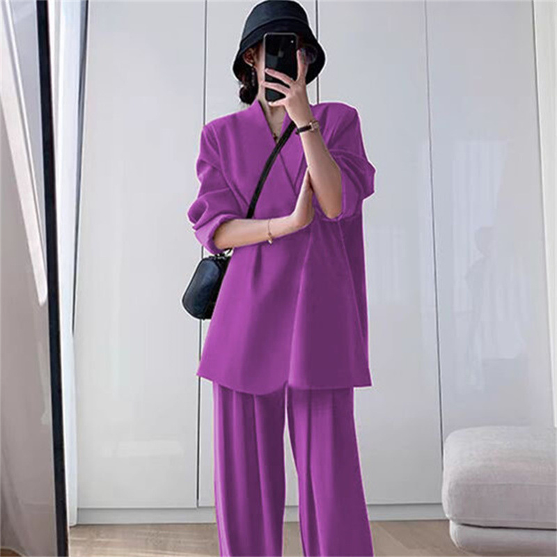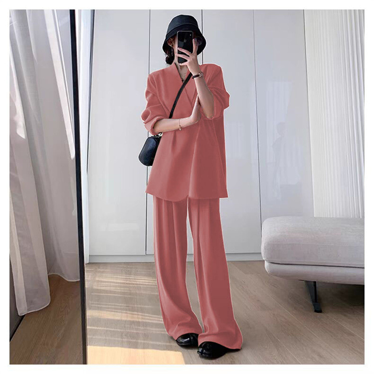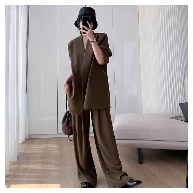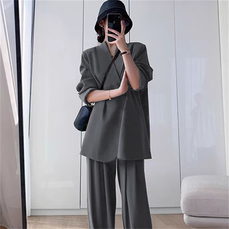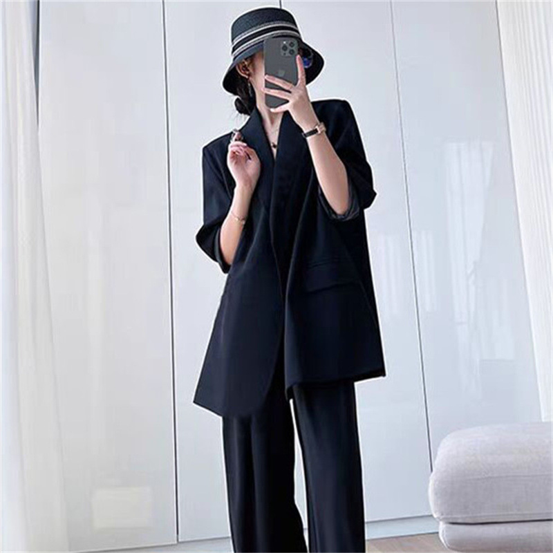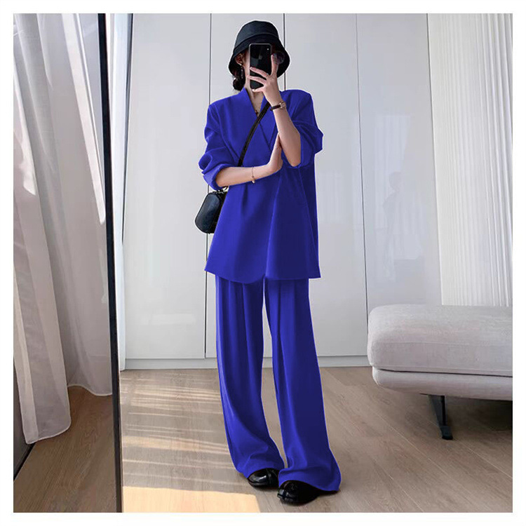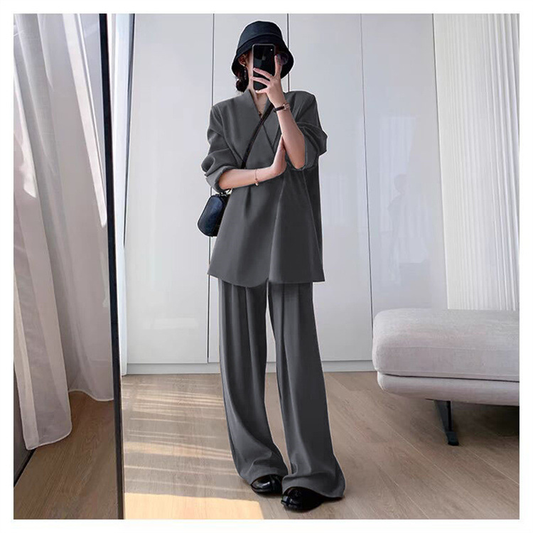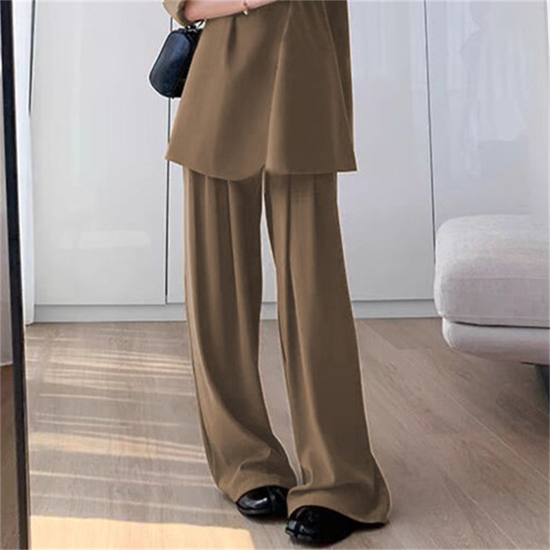 Повседневный костюм для женщин 2025: летний тонкий комплект с широкими брюками для миниатюрных фигур, элегантный весенне-осенний модный повседневный костюм для женщин
