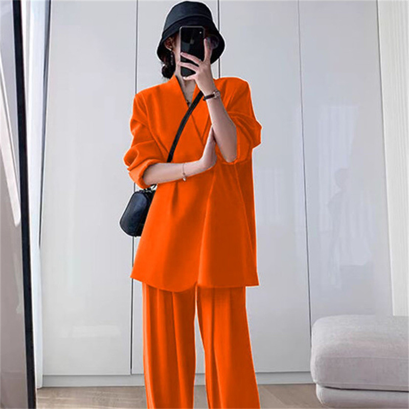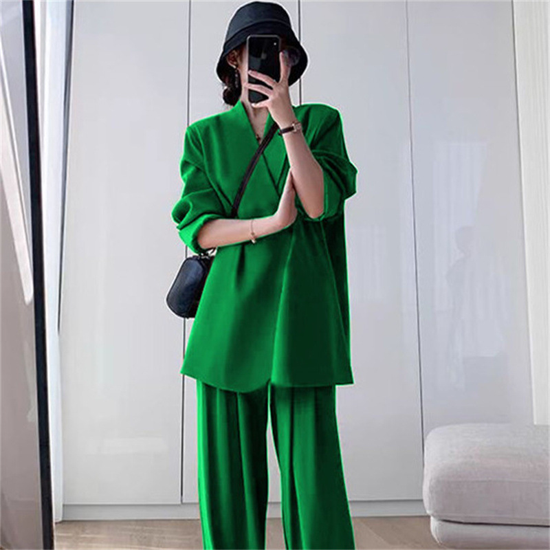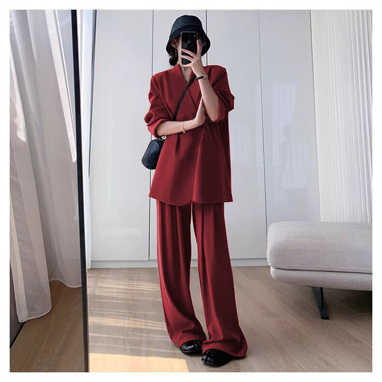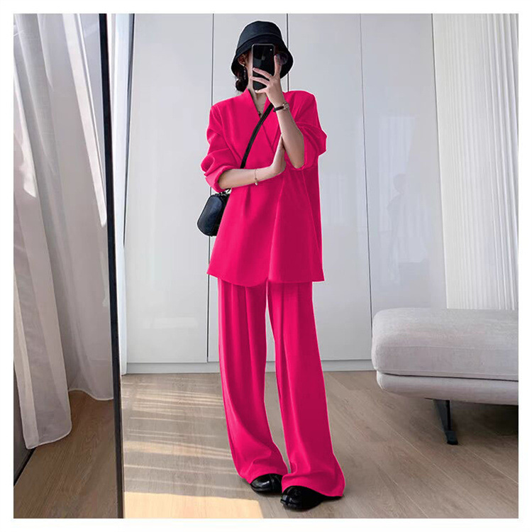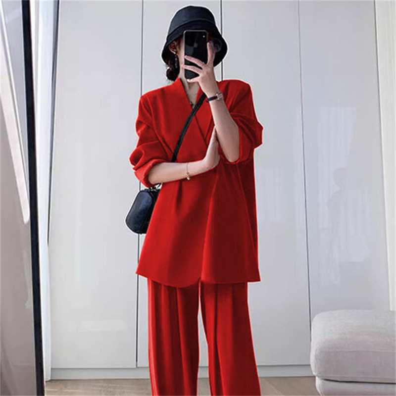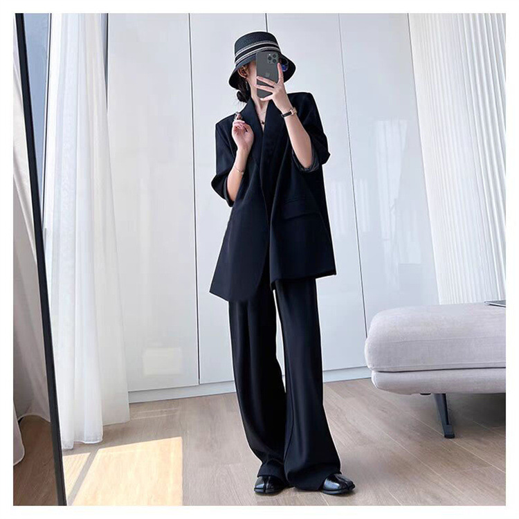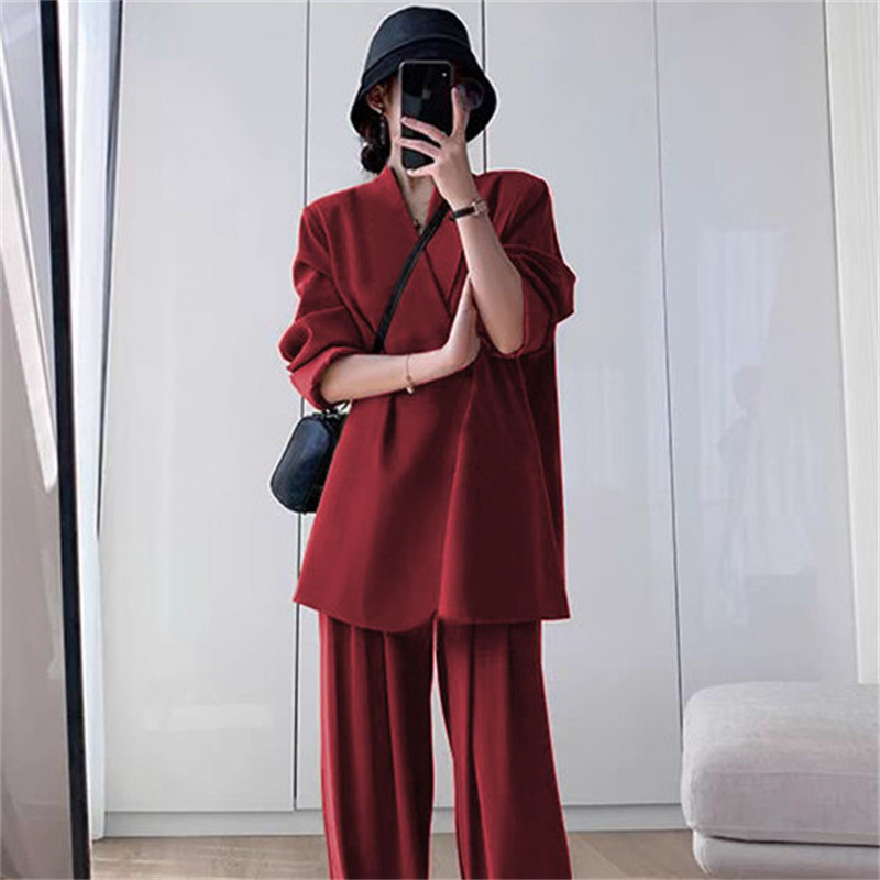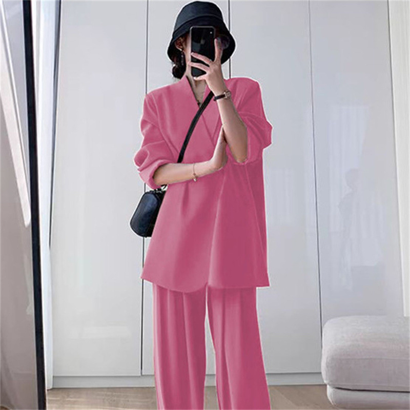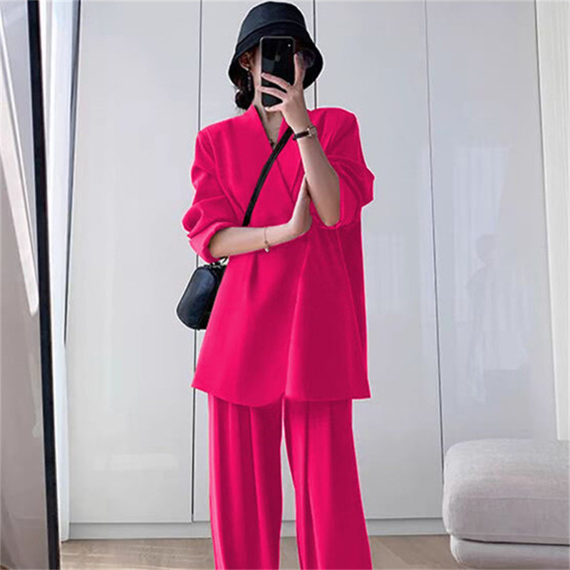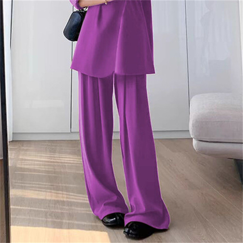 Повседневный костюм для женщин 2025: летний тонкий комплект с широкими брюками для миниатюрных фигур, элегантный весенне-осенний модный повседневный костюм для женщин
