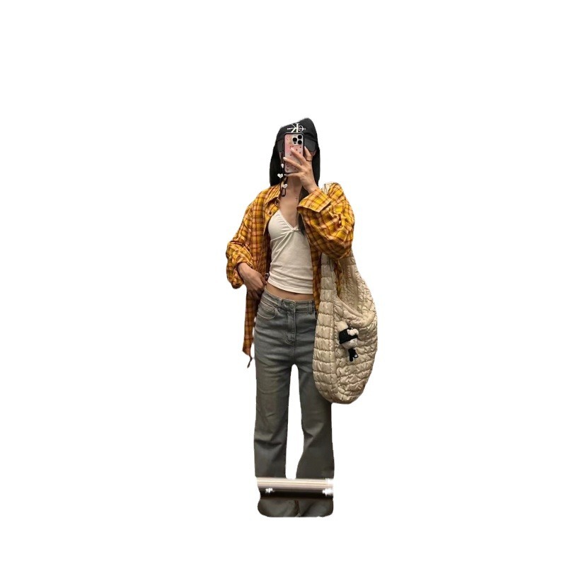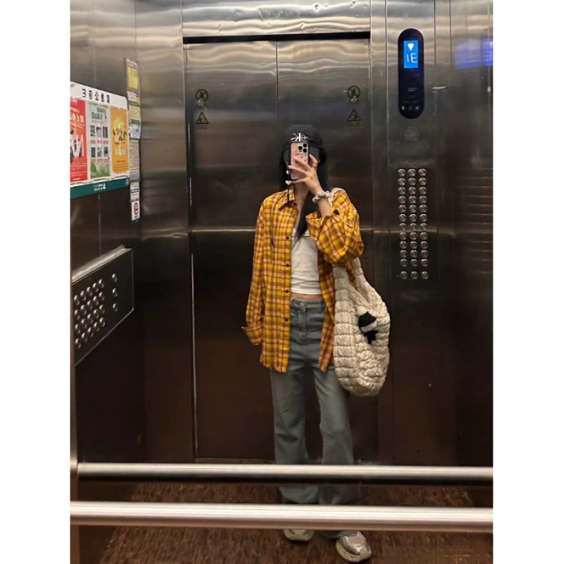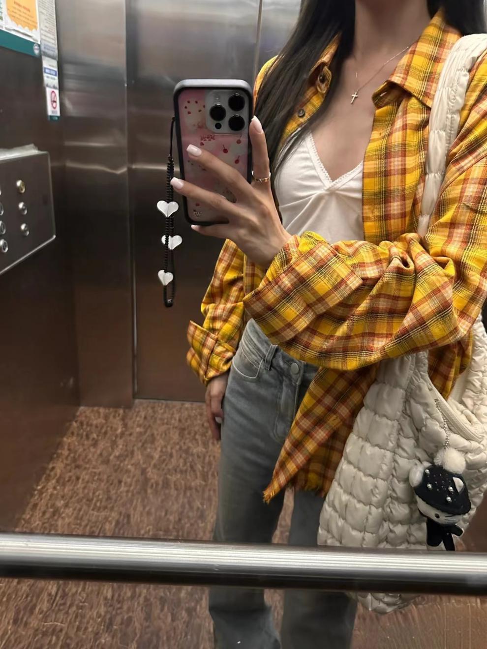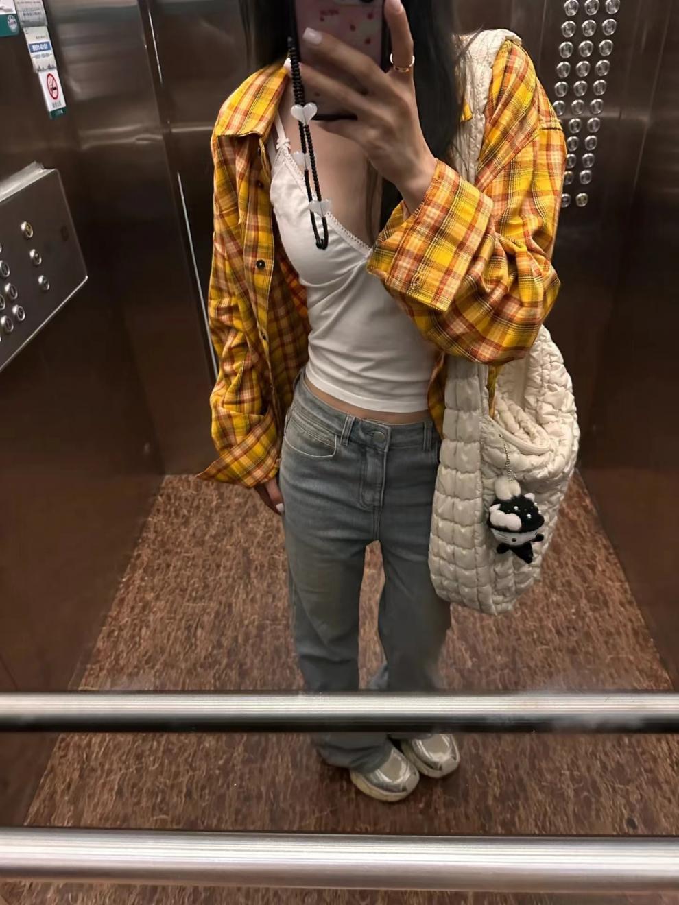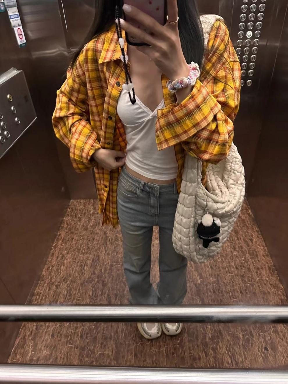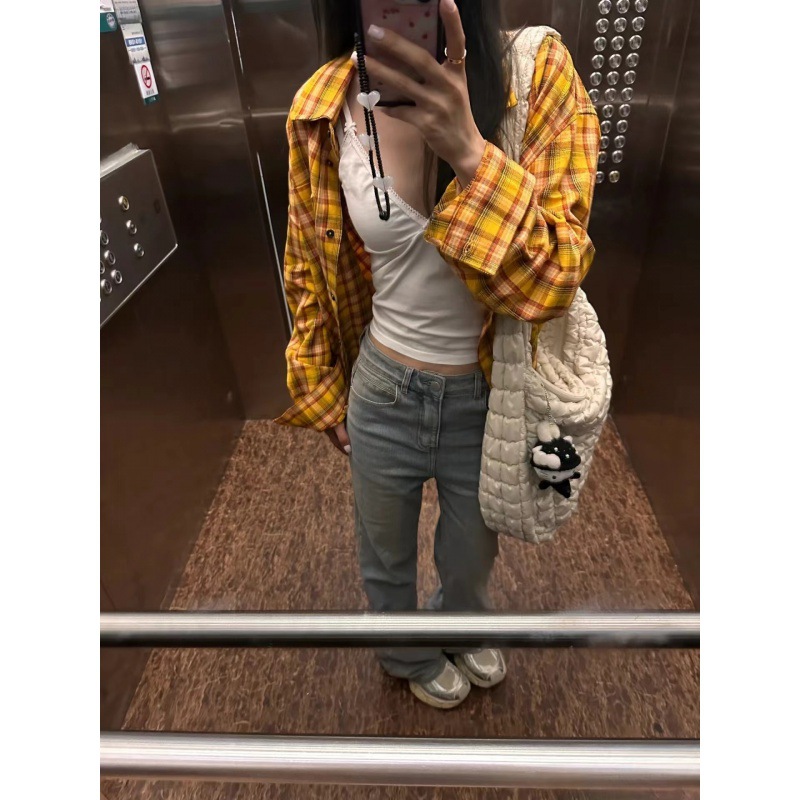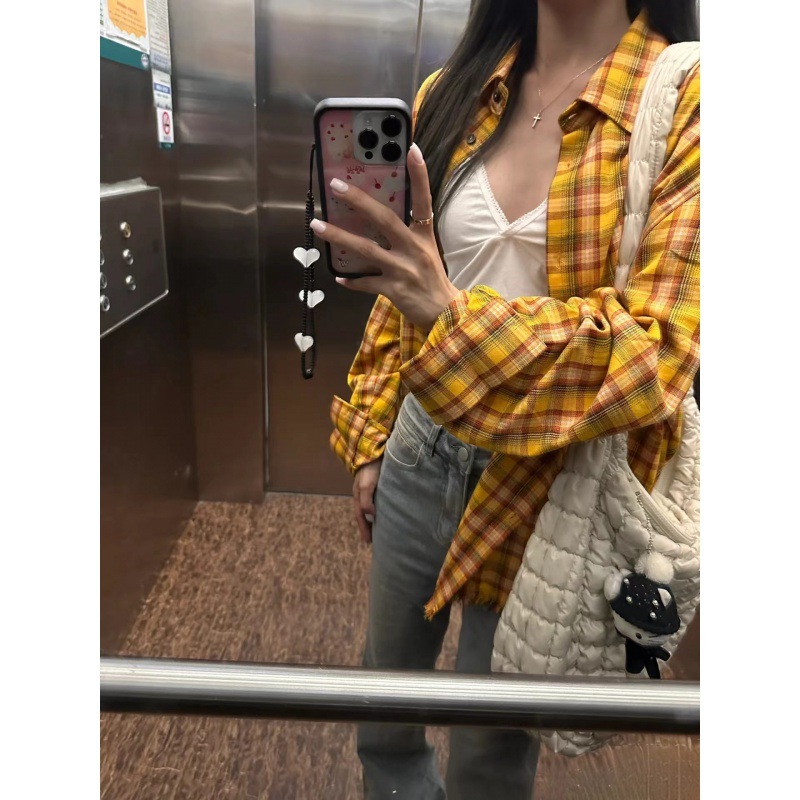 Гонконгский вкус ретро-желтая рубашка в клетку