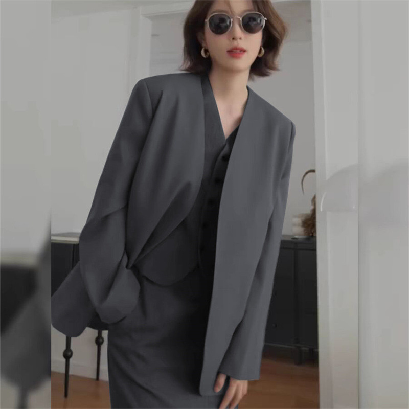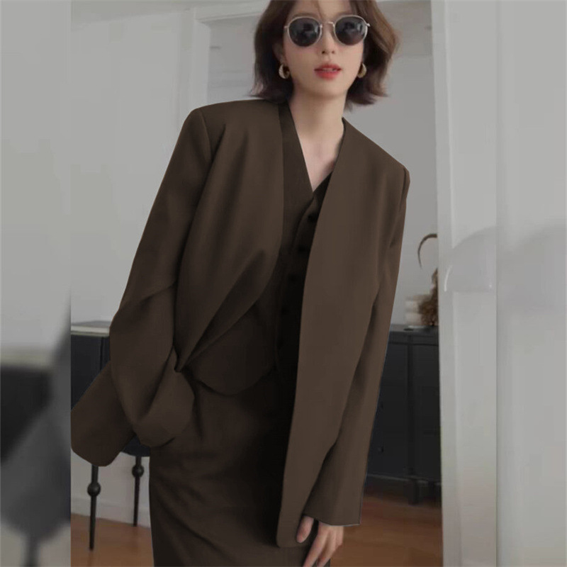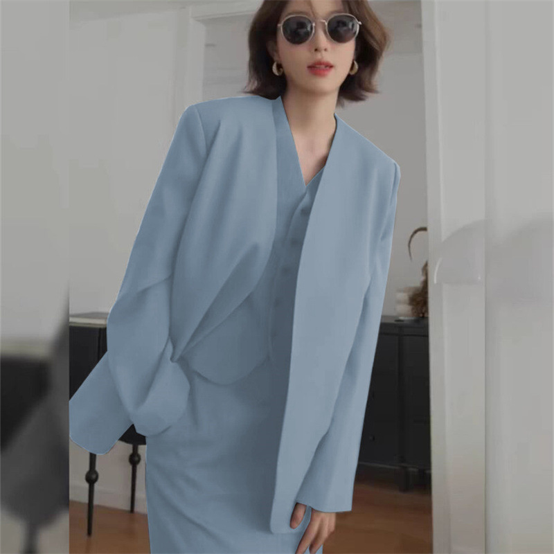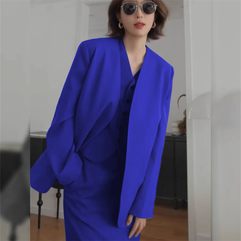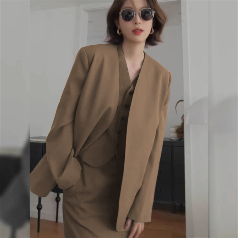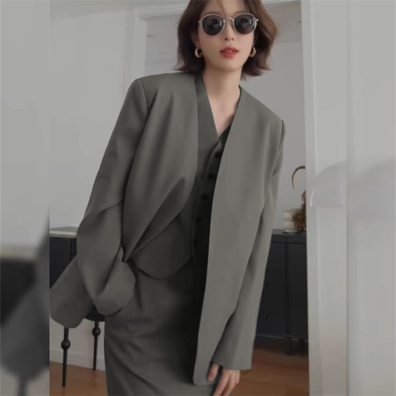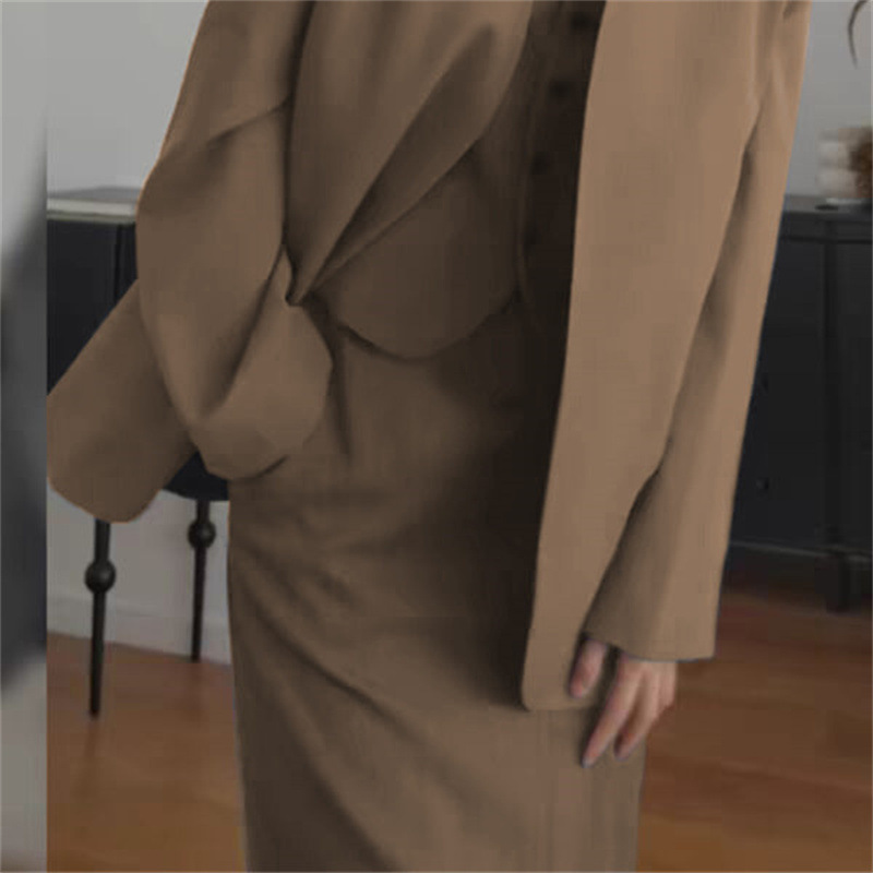 Блейзер, женственный стиль богини, юбка для деловых поездок, костюм 2025 года, модная женская юбка, двухкомпонентный деловой костюм