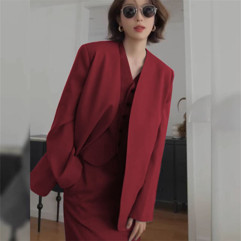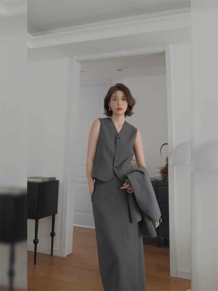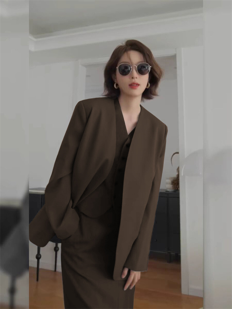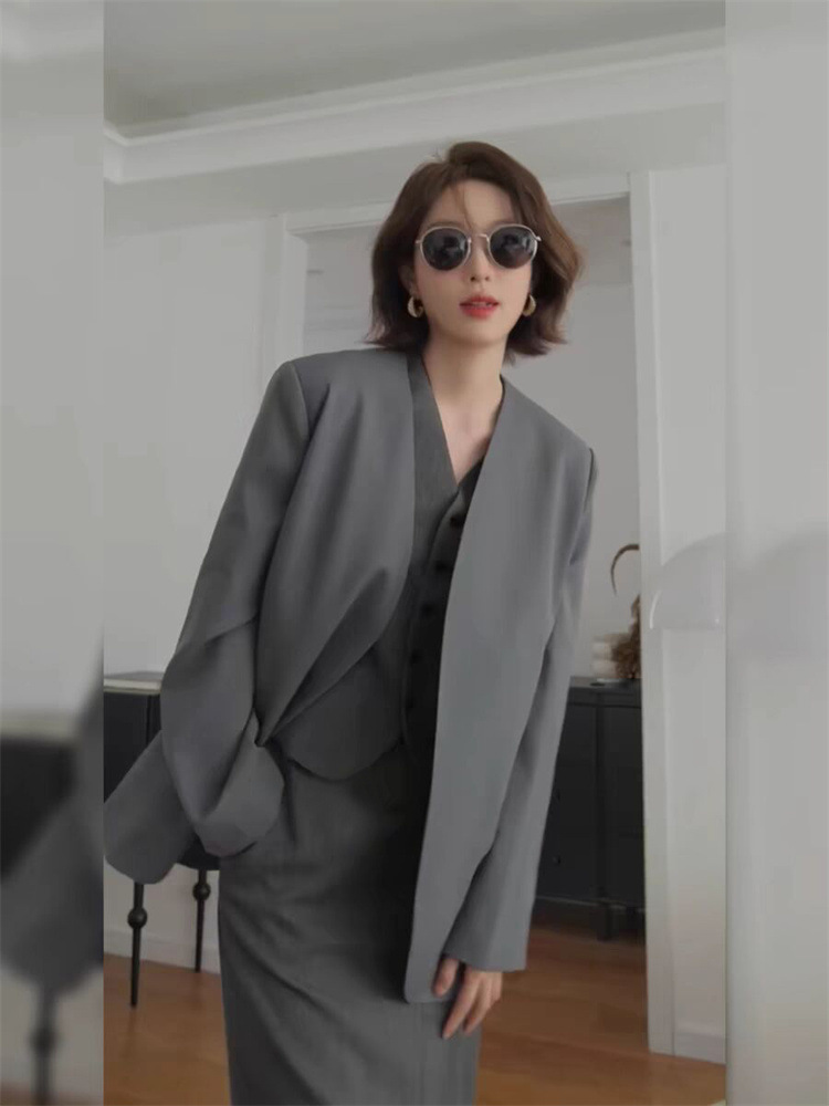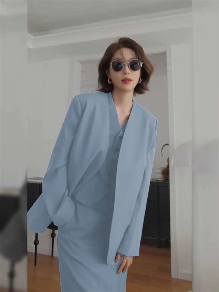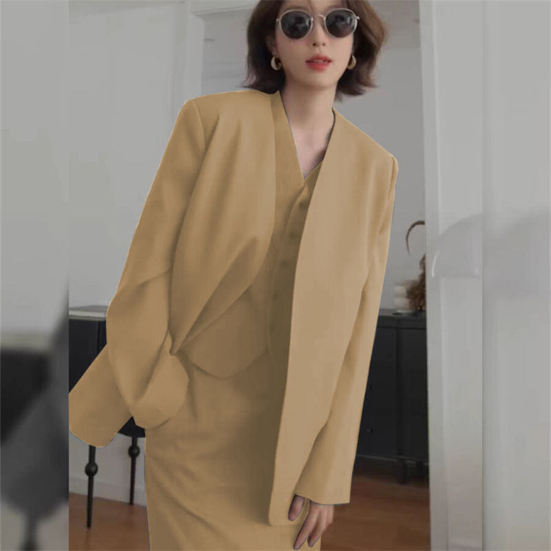 Блейзер, женственный стиль богини, юбка для деловых поездок, костюм 2025 года, модная женская юбка, двухкомпонентный деловой костюм