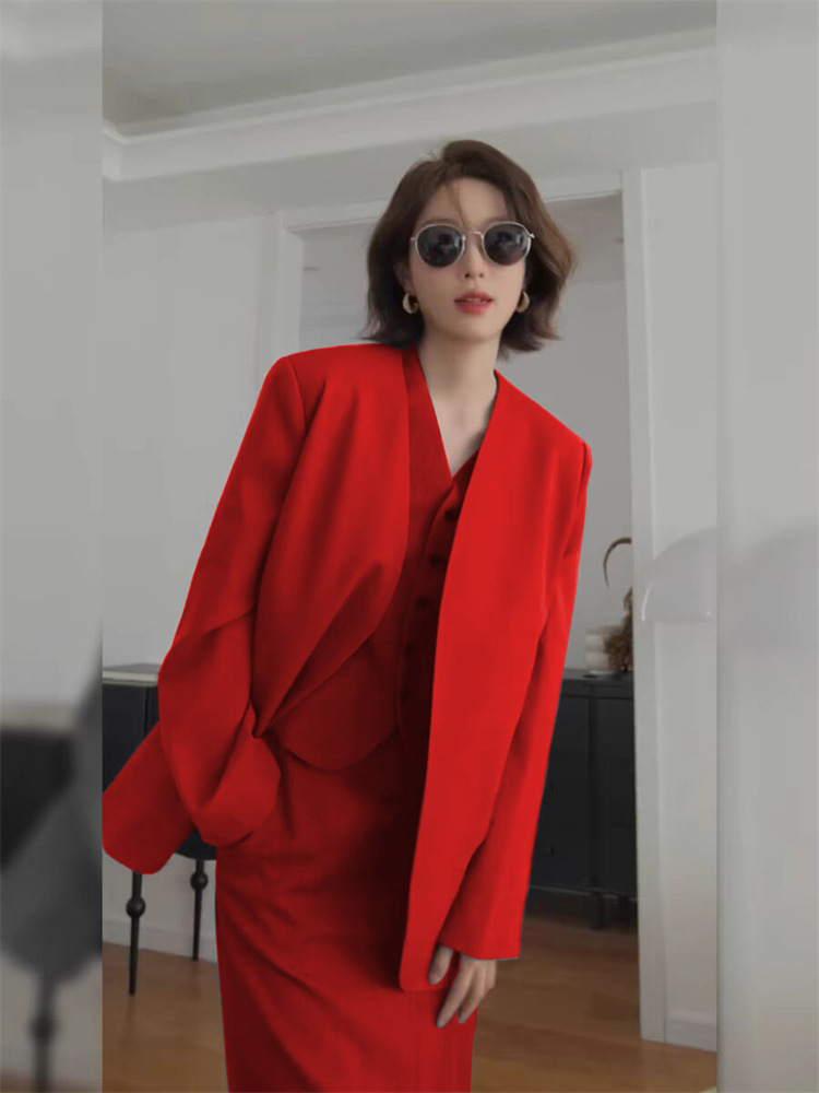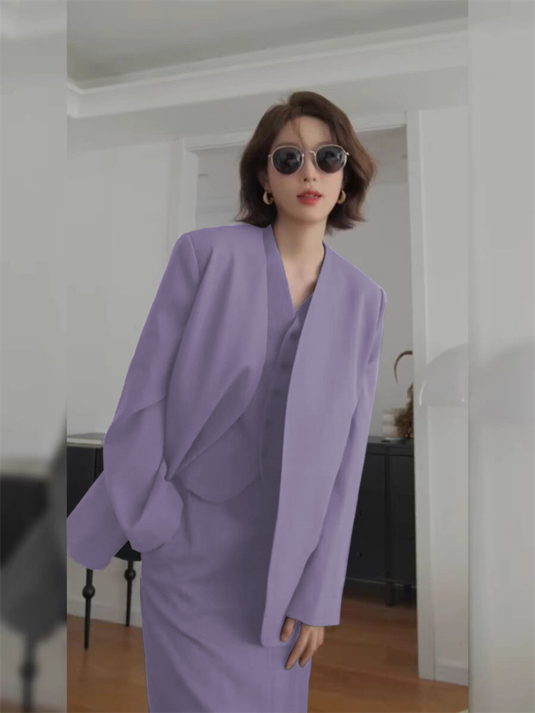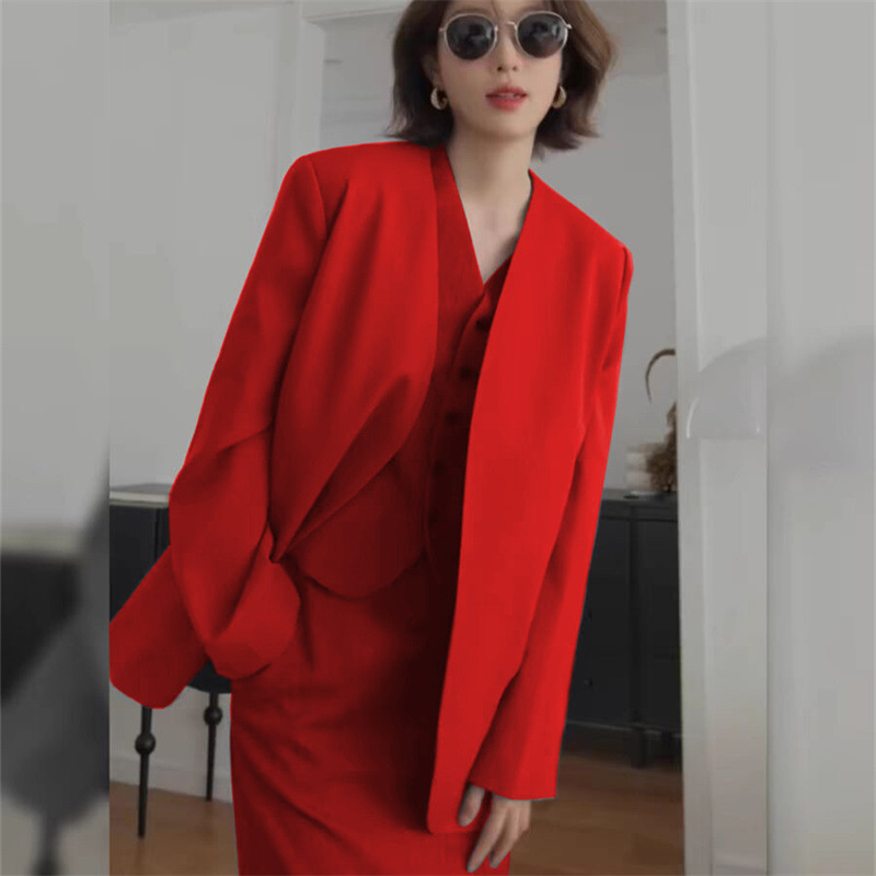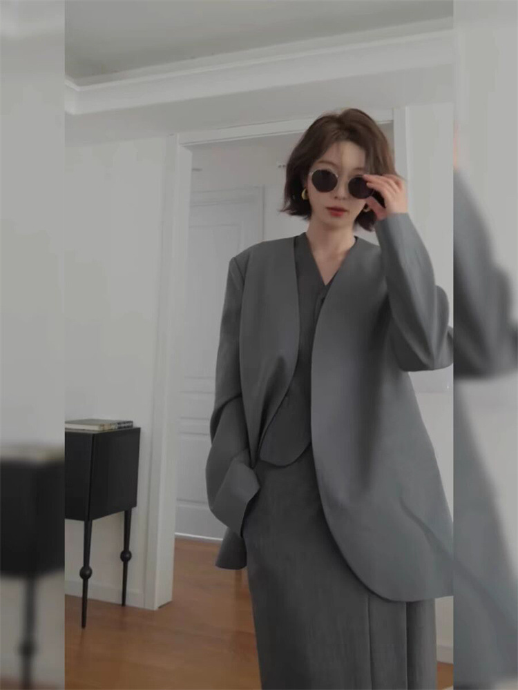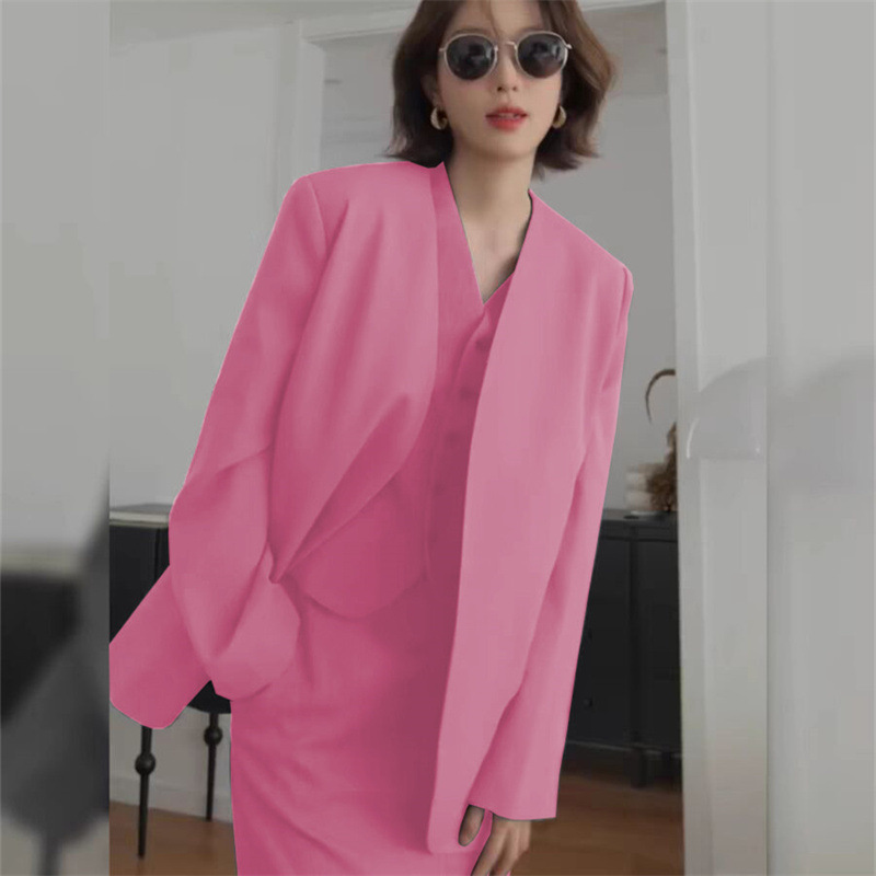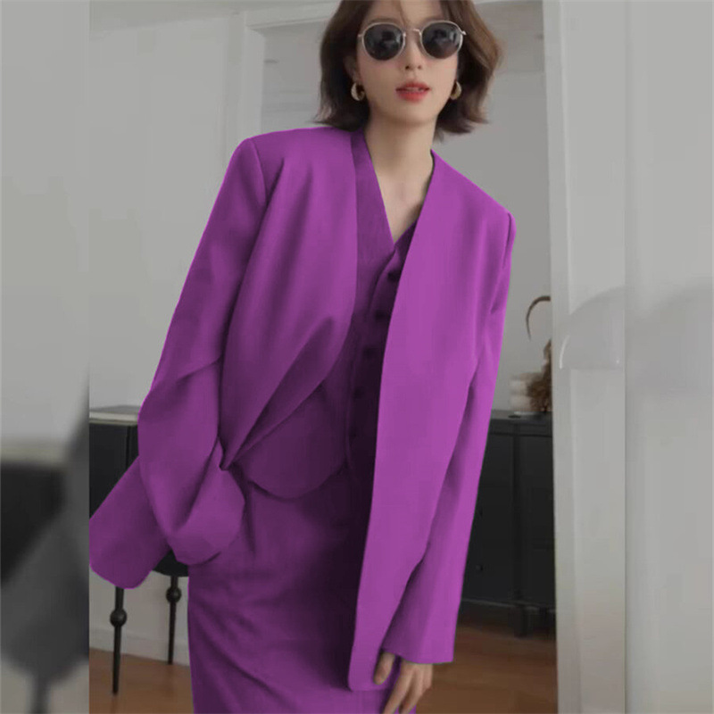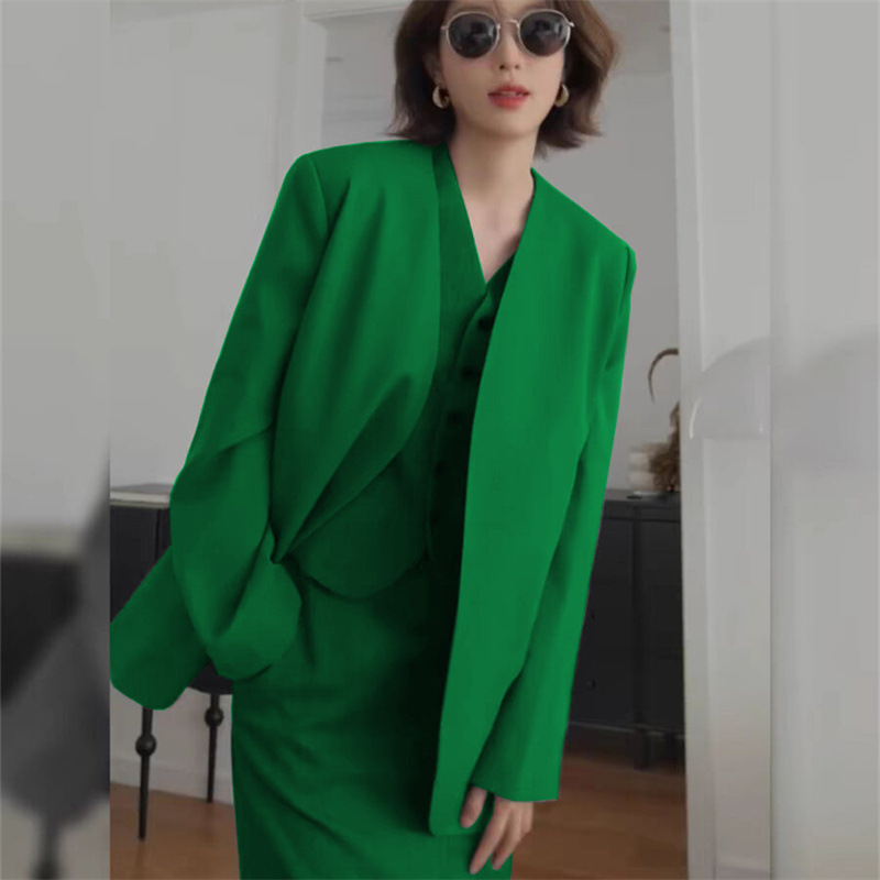 Блейзер, женственный стиль богини, юбка для деловых поездок, костюм 2025 года, модная женская юбка, двухкомпонентный деловой костюм