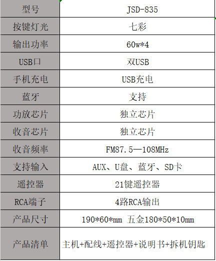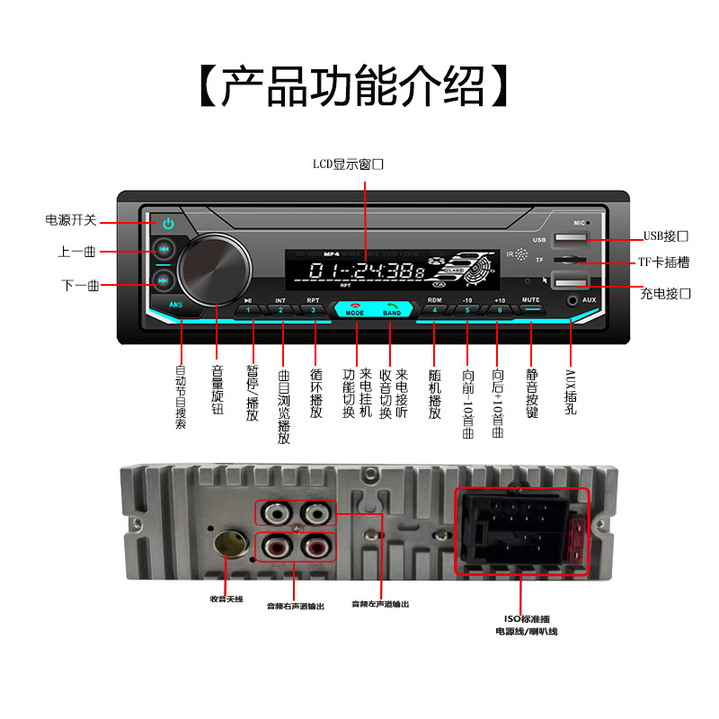 Трансграничный 835 автомобильный плеер Красочные огни радио Bluetooth громкой связи MP3-плеер USB-карта