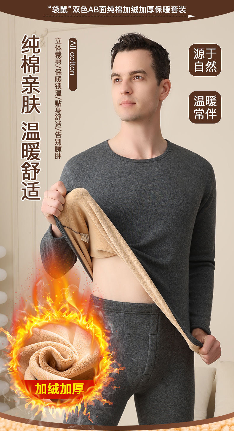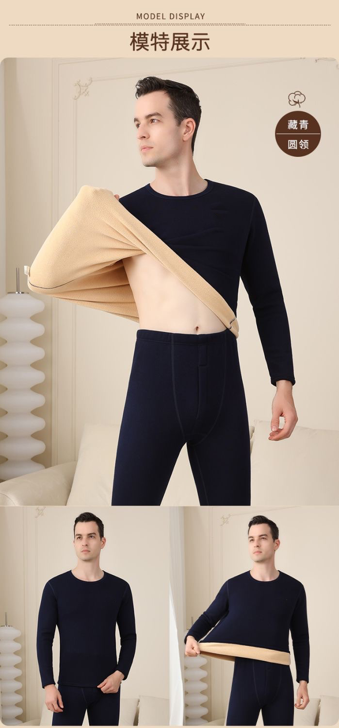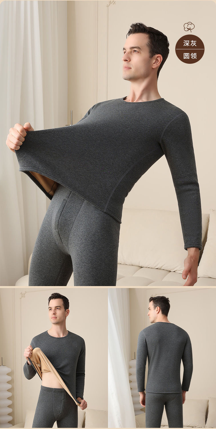 [Чистый хлопок огромный толстый кашемир] Осенний и зимний комплект термобелья мужской бархат утолщенный холодный осенний брюки