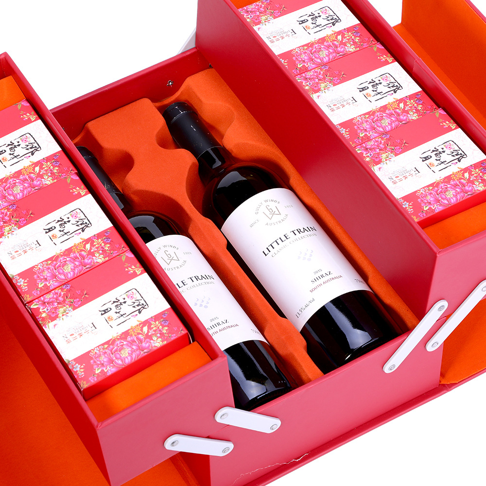 0717/02-двойное открытие коробки лунного пирога с красным вином
