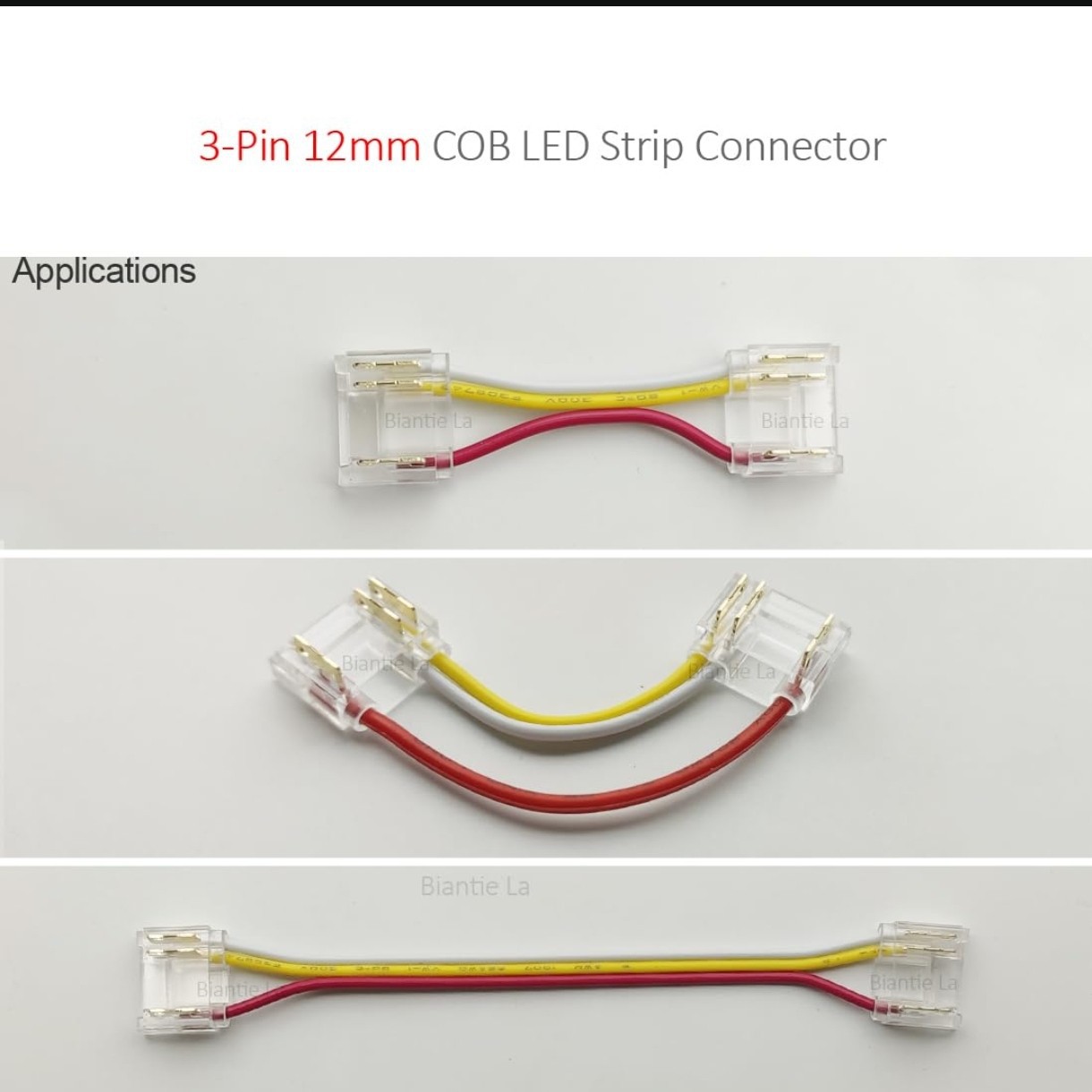 3P 10 мм COB без темной зоны, светодиодная линейная световая лента, без пайки, прозрачная хрустальная пряжка, разъем, двусторонняя линия, пара
