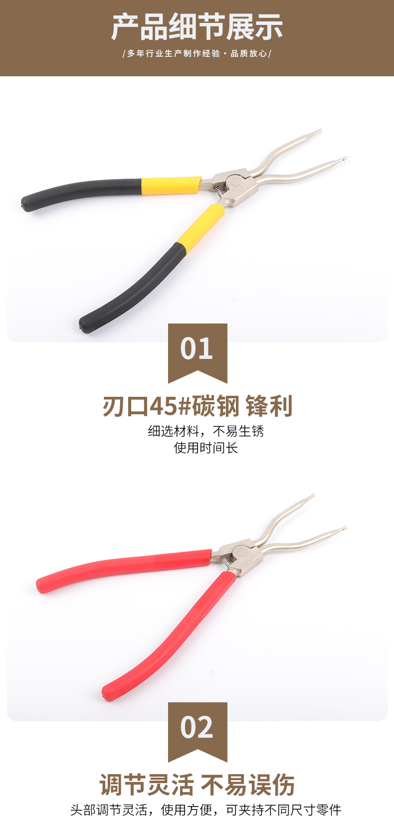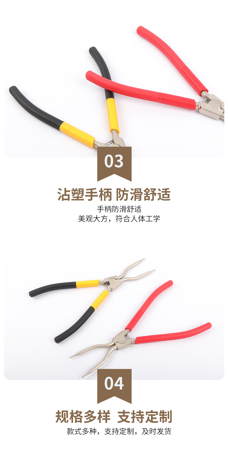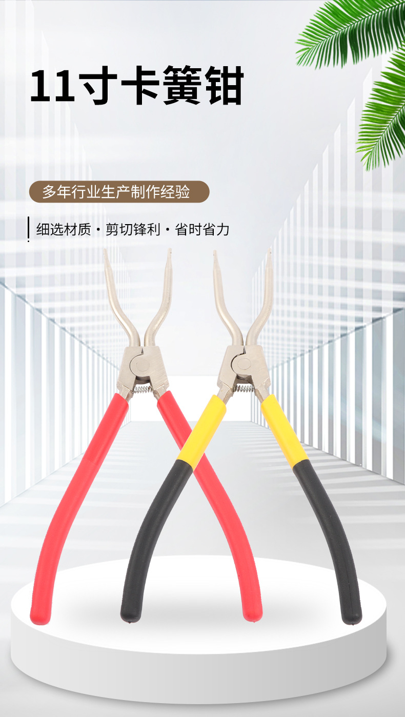 Комплект пружинных плоскогубцев Cross-border 11inch с пластиковыми рукоятками желто-черного цвета, ручные плоскогубцы, плоскогубцы для внутренних и внешних стопорных колец.