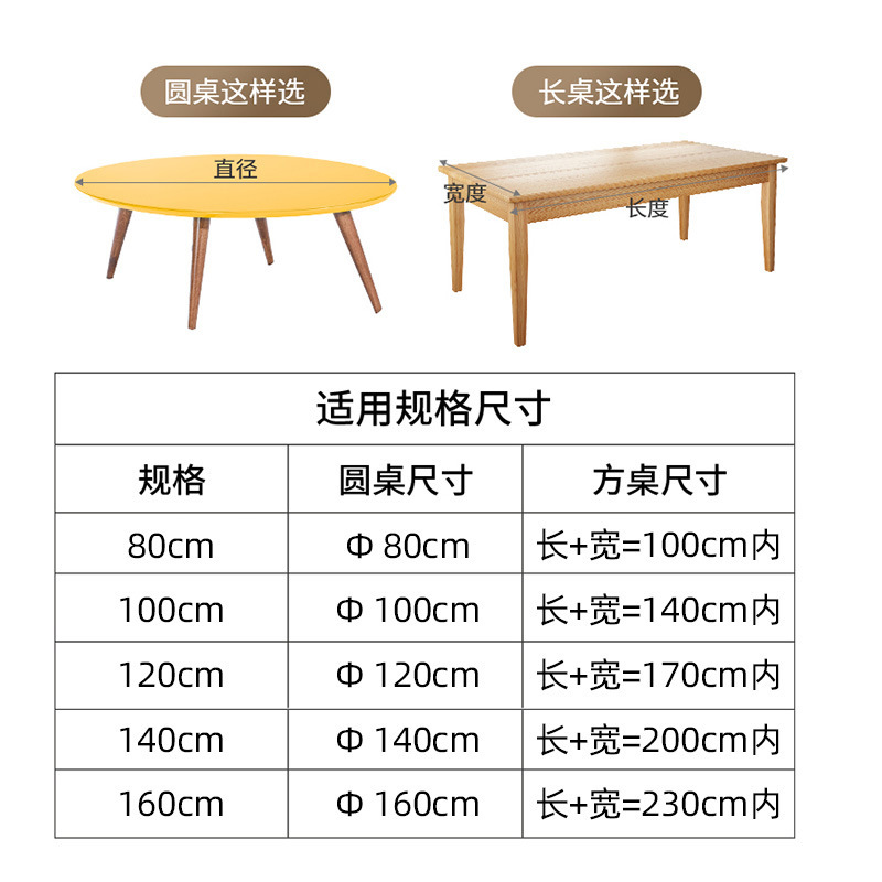 Диаметр круглого стола 60см/квадратный стол диаметром 80см.; Диаметр круглого стола 80 см/диаметр квадратного стола 100 см.; Диаметр круглого стола 100 см/диаметр квадратного стола 120 см.; Диаметр круглого стола 120 см/диаметр квадратного стола 140 см.; Диаметр круглого стола 140 см/диаметр квадратного стола 160 см.; Диаметр круглого стола 160 см/диаметр квадратного стола 180 см.; Диаметр круглого стола 180 см/диаметр квадратного стола 200 см.
