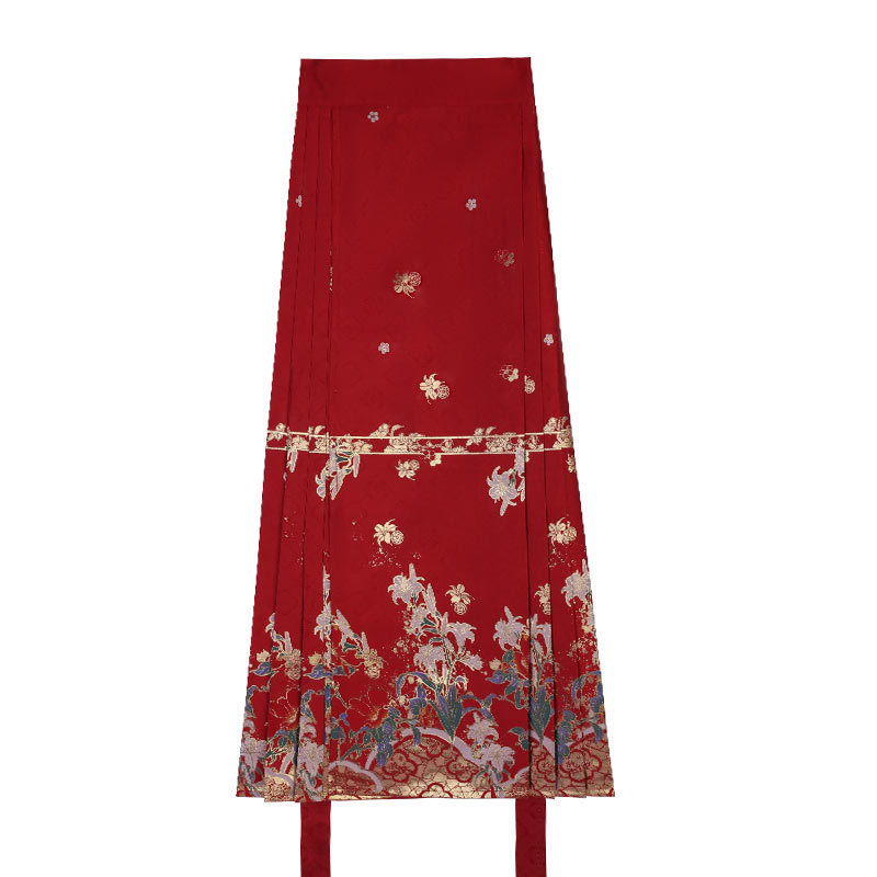 Оригинальный дизайн Xixi Han Элементы улучшены Новая китайская юбка с конским лапшой Женская юбка с длинными рукавами в китайском стиле 8951