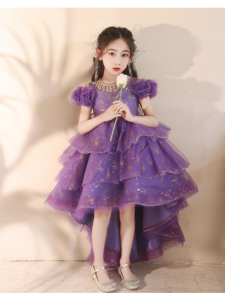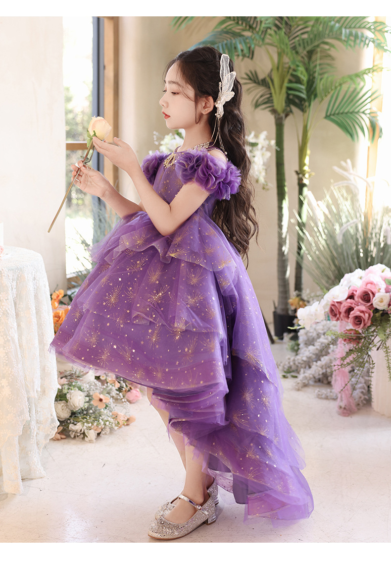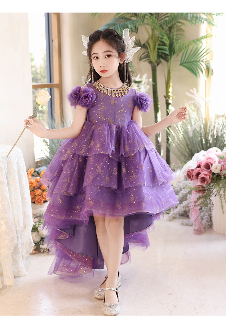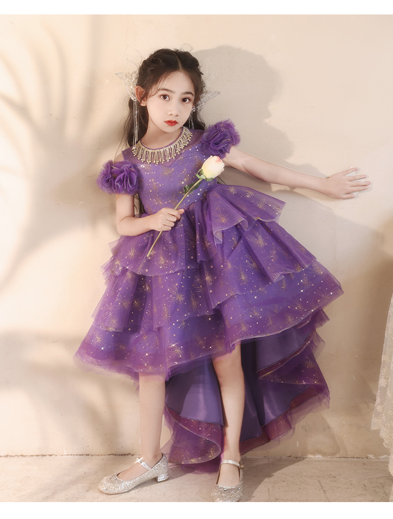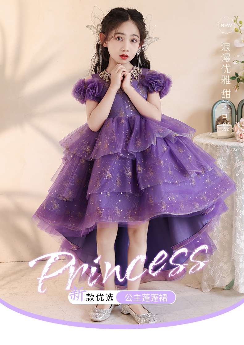 Детское платье на день рождения принцессы юбка фиолетовая девушка хозяйка цветочница свадьба маленькая девочка фортепианный костюм высокого класса