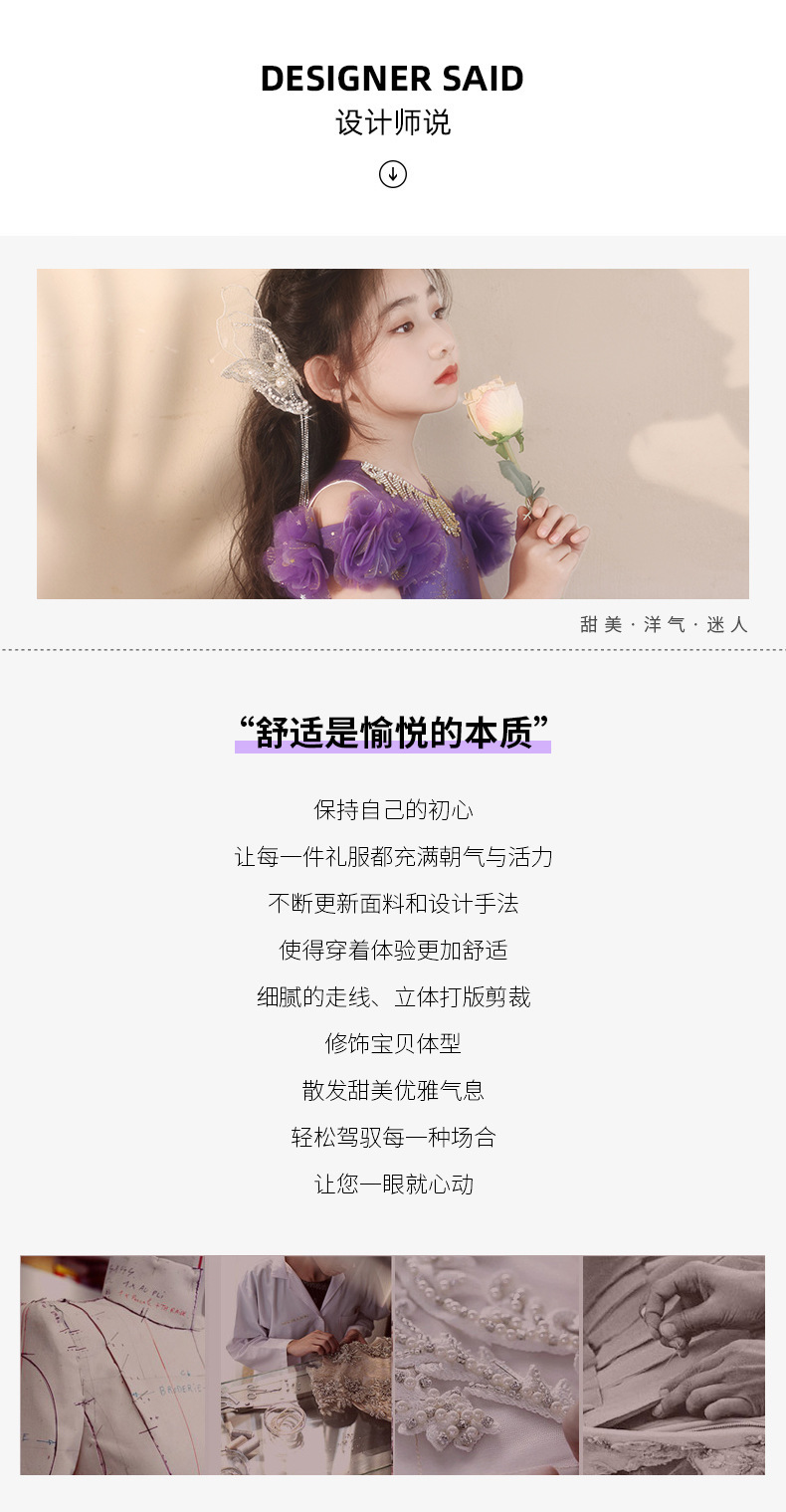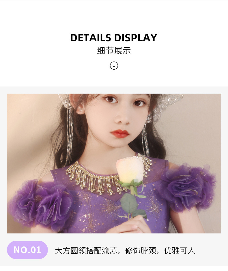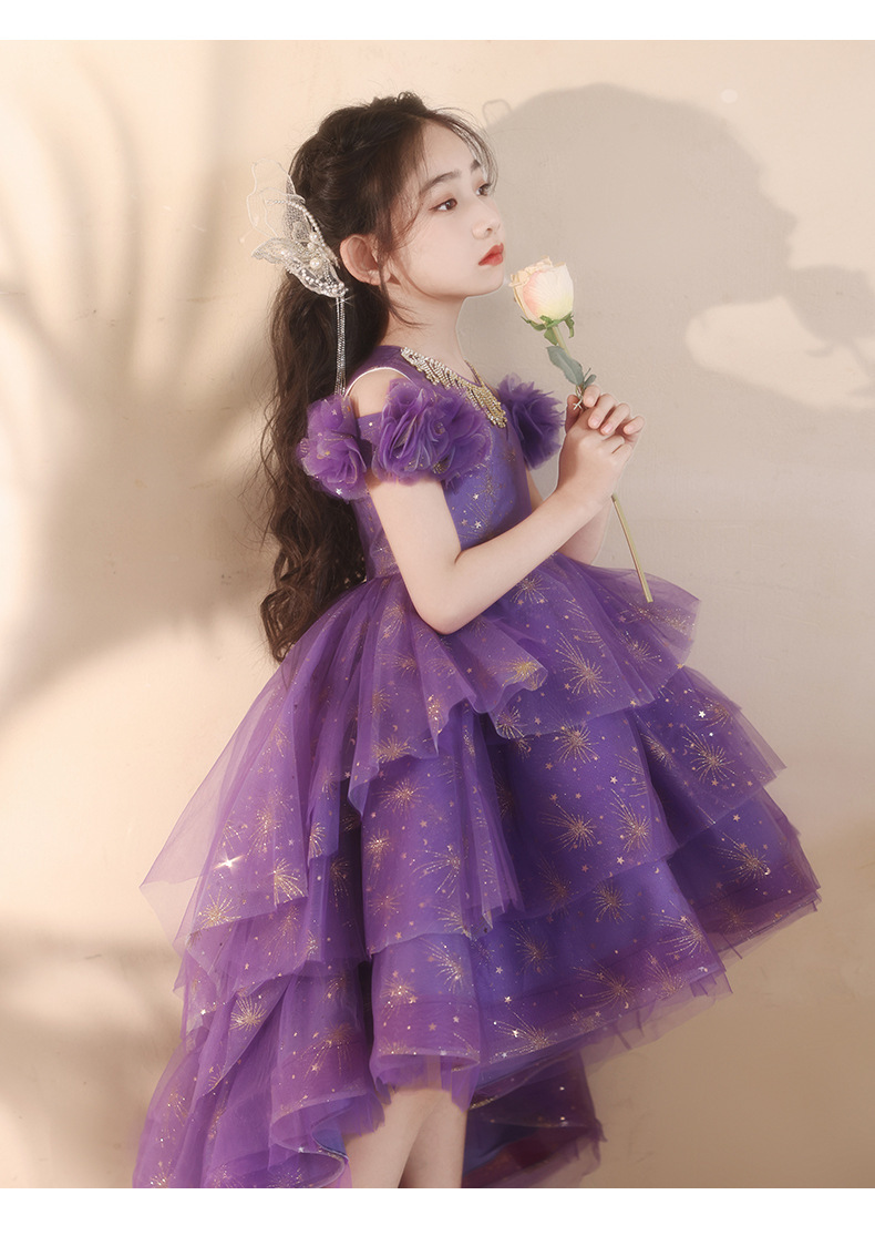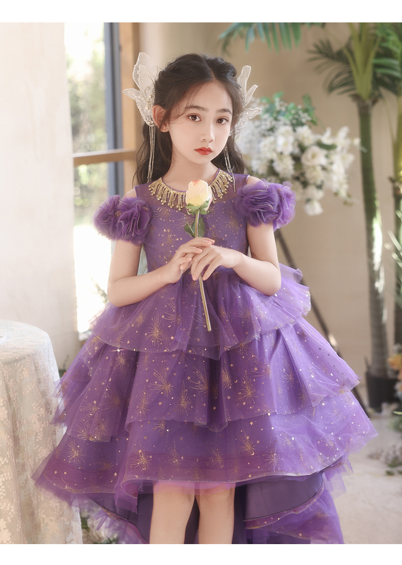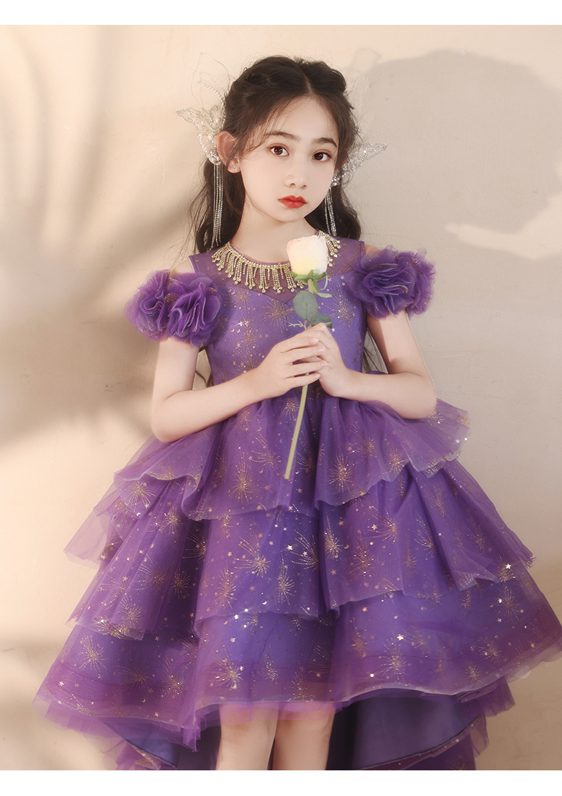 Детское платье на день рождения принцессы юбка фиолетовая девушка хозяйка цветочница свадьба маленькая девочка фортепианный костюм высокого класса