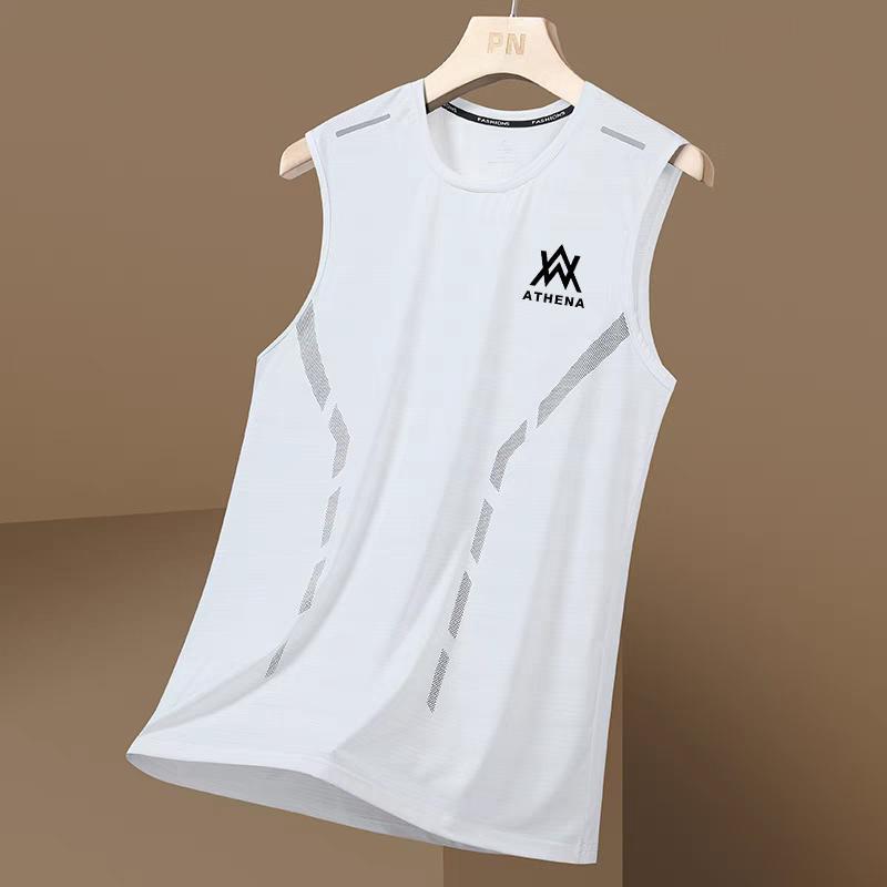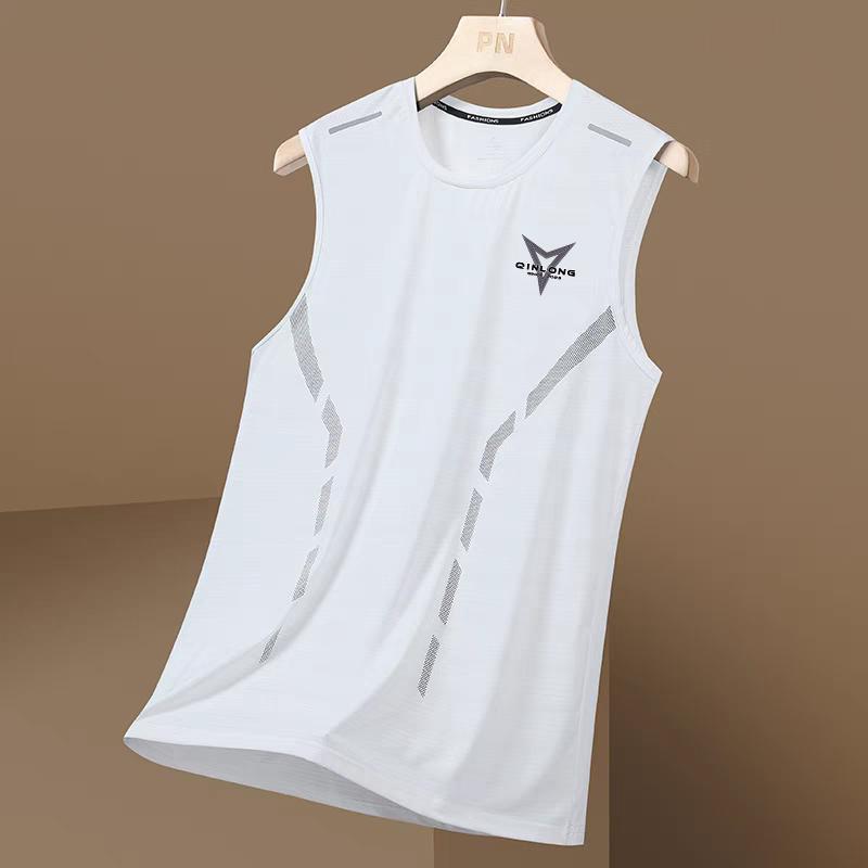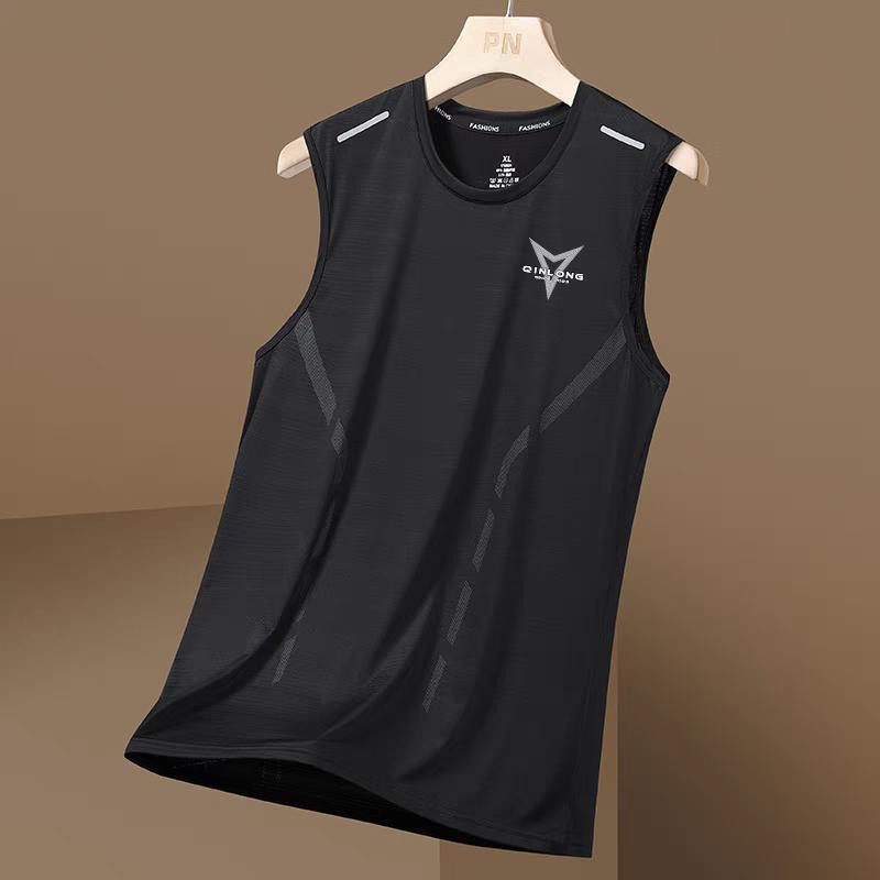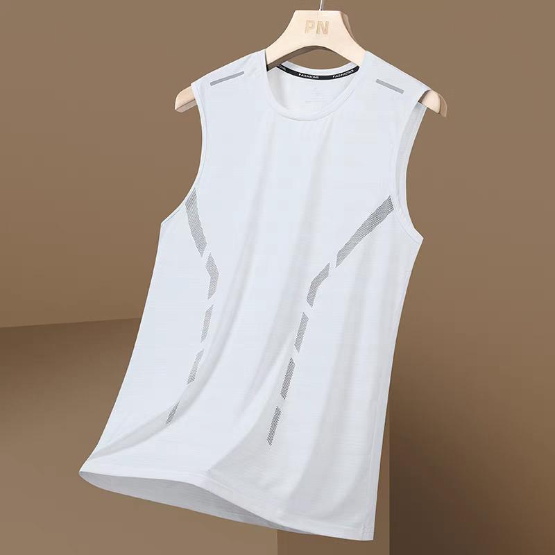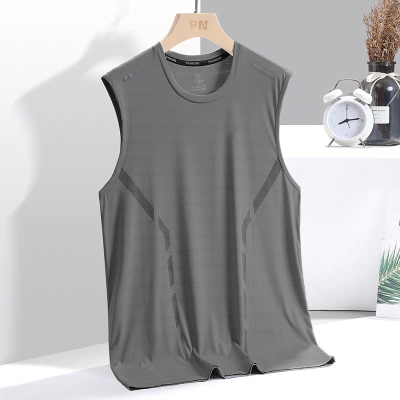 Летняя быстросохненная мужская ледяная шелковая спинка дышащая сердцебиение фитнес нижняя рубашка с широким плечом тренировочная футболка без рукавов
