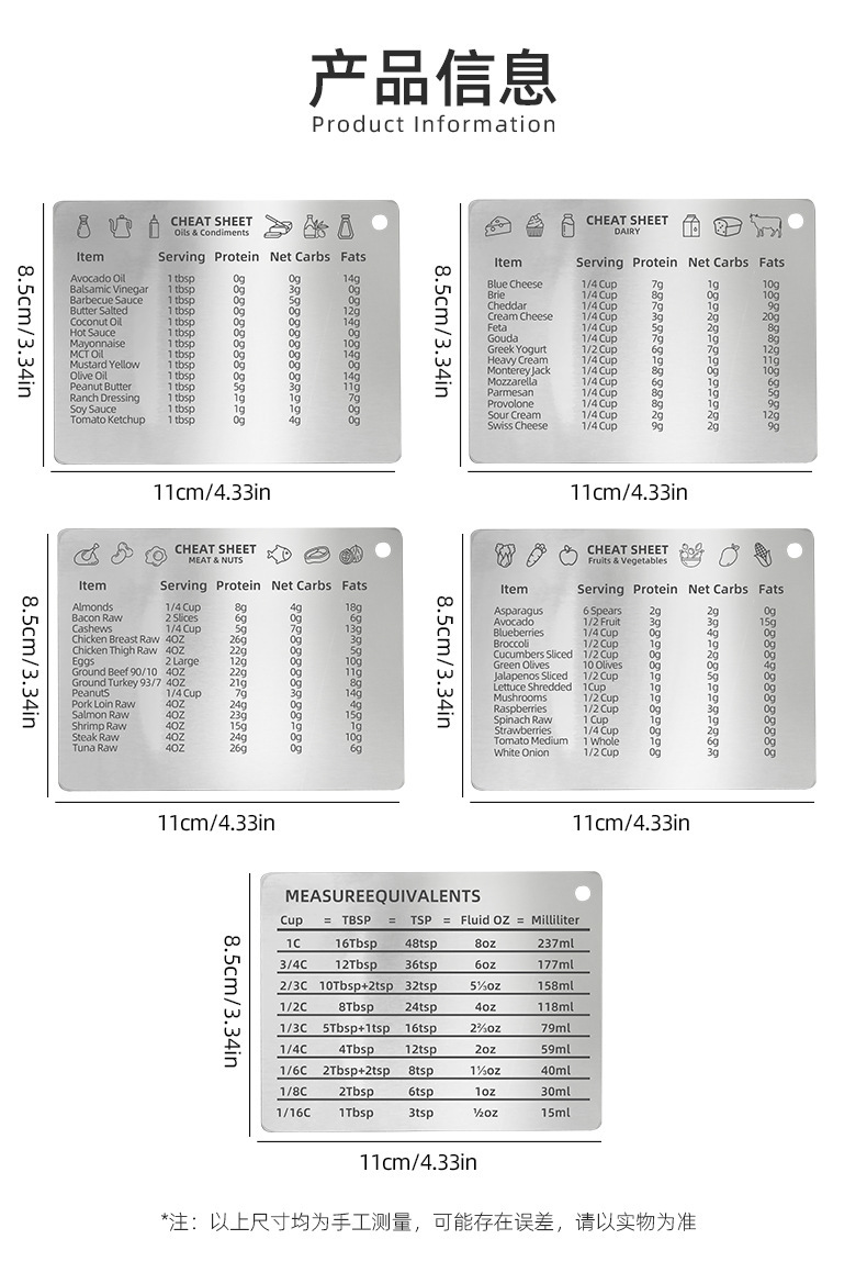 Стол сравнения выпечки (в пакете OPP); Стол сравнения молока (герметичный пакет OPP); Стол сравнения мясных орехов ((в мешке OPP)); Стол сравнения фруктов и овощей (запечатанный пакет OPP); Таблица сравнения масел и приправ ((запечатанный пакет OPP))