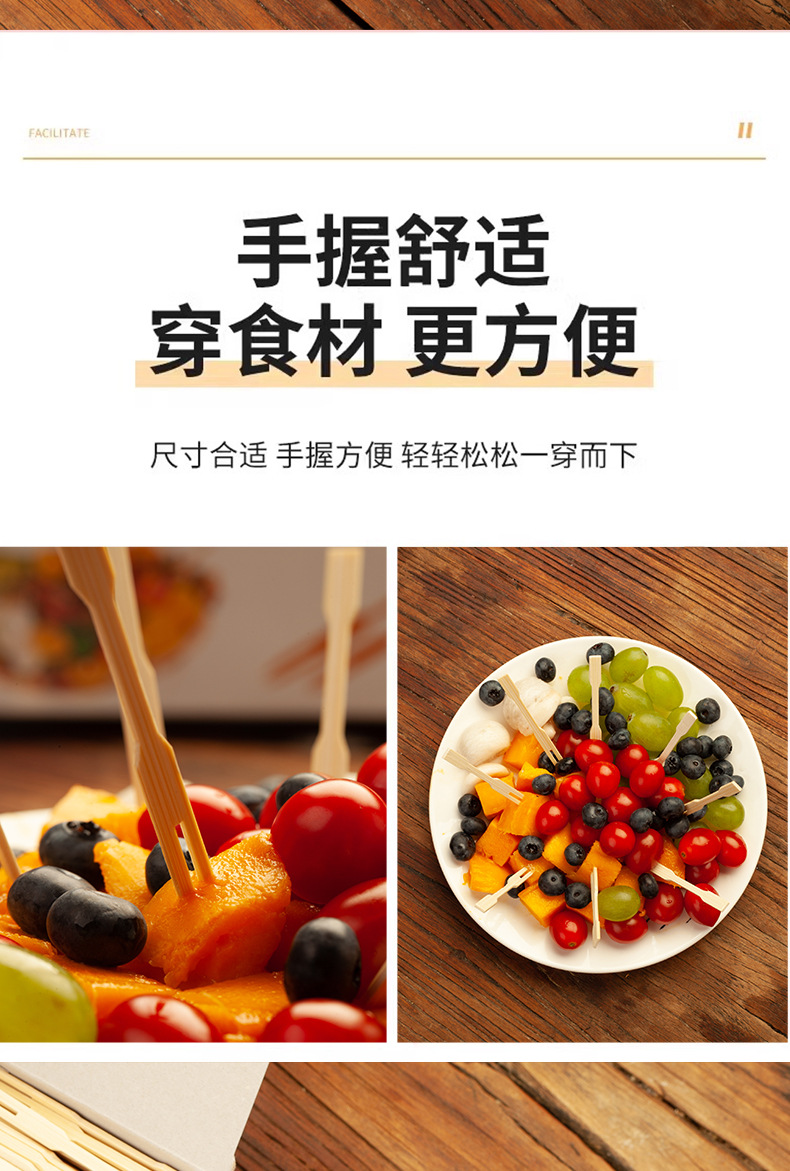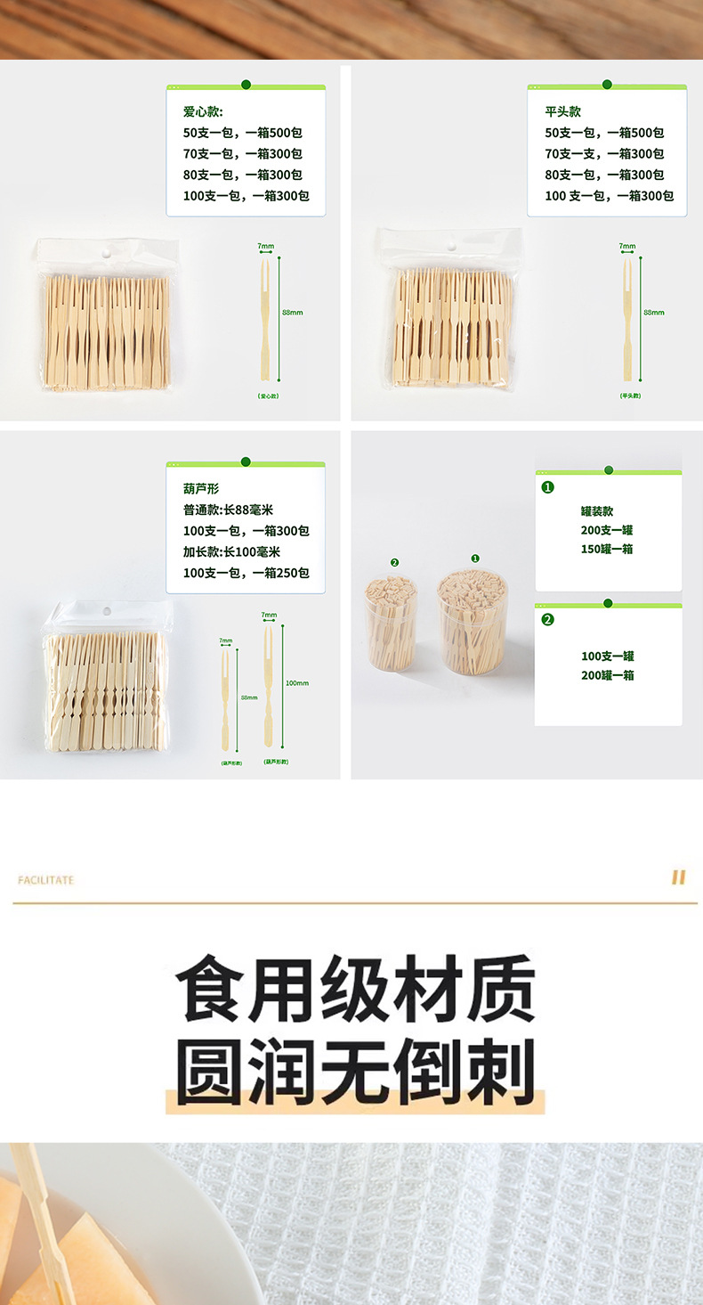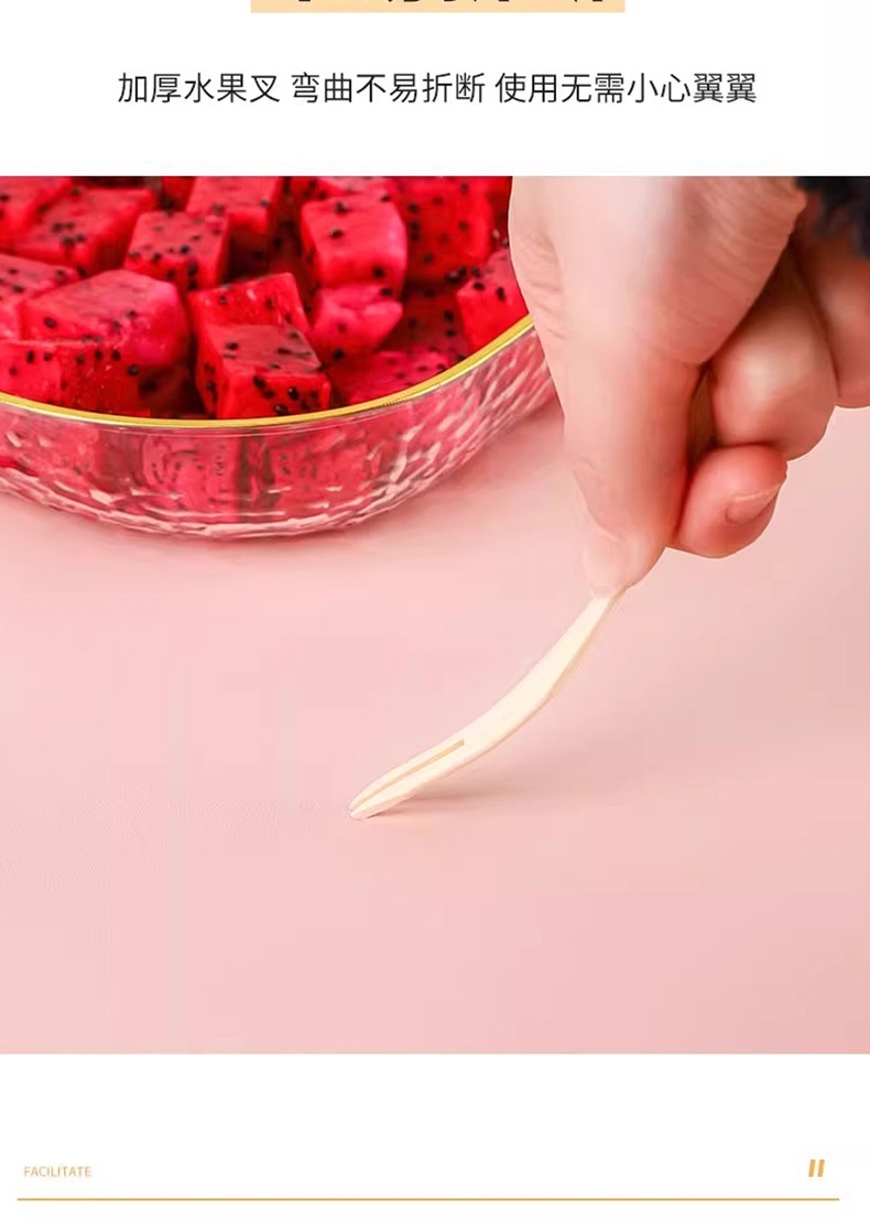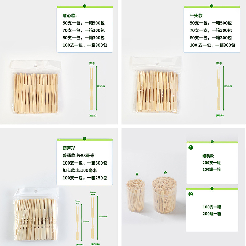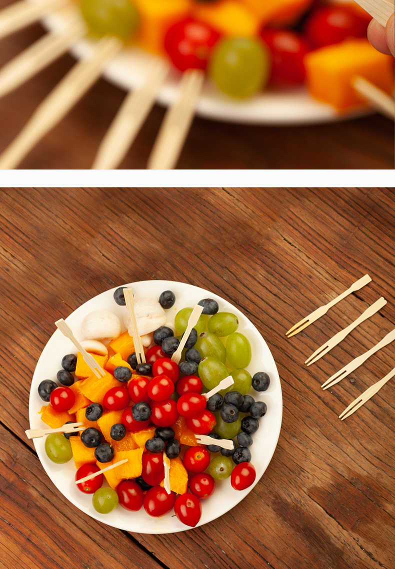 Фруктовая вилка одноразовая маленькая вилка плоская голова бамбуковая вилка фруктовая вилка