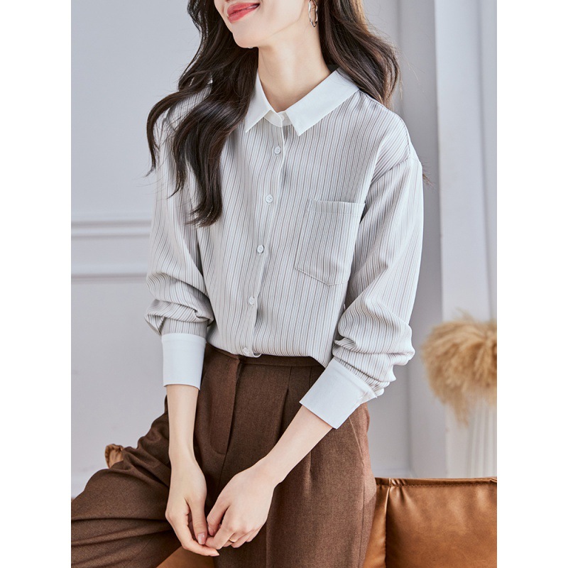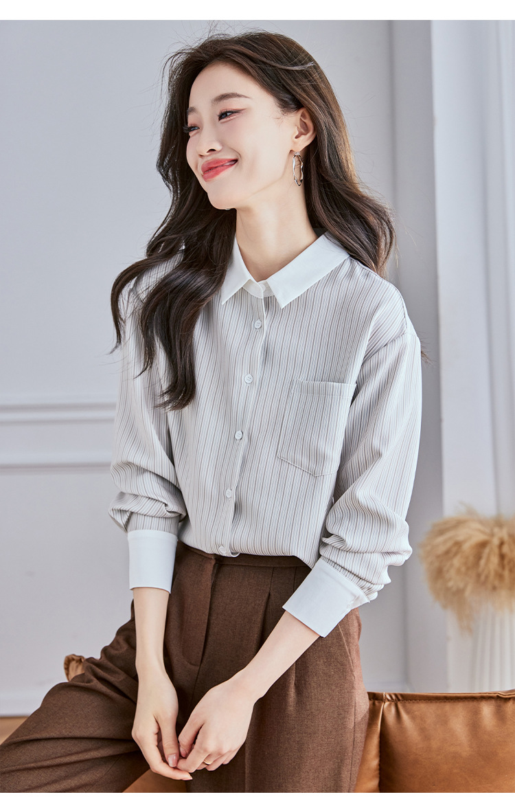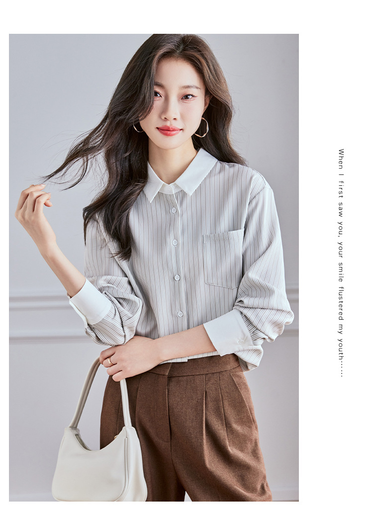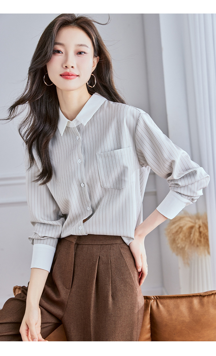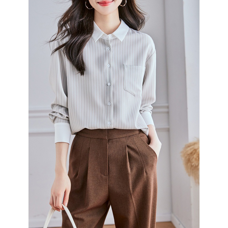 Реальный выстрел высокого уровня в полоску рубашка женская мода дикая рубашка 2024 осенний топ с длинными рукавами темпераментный рубашка