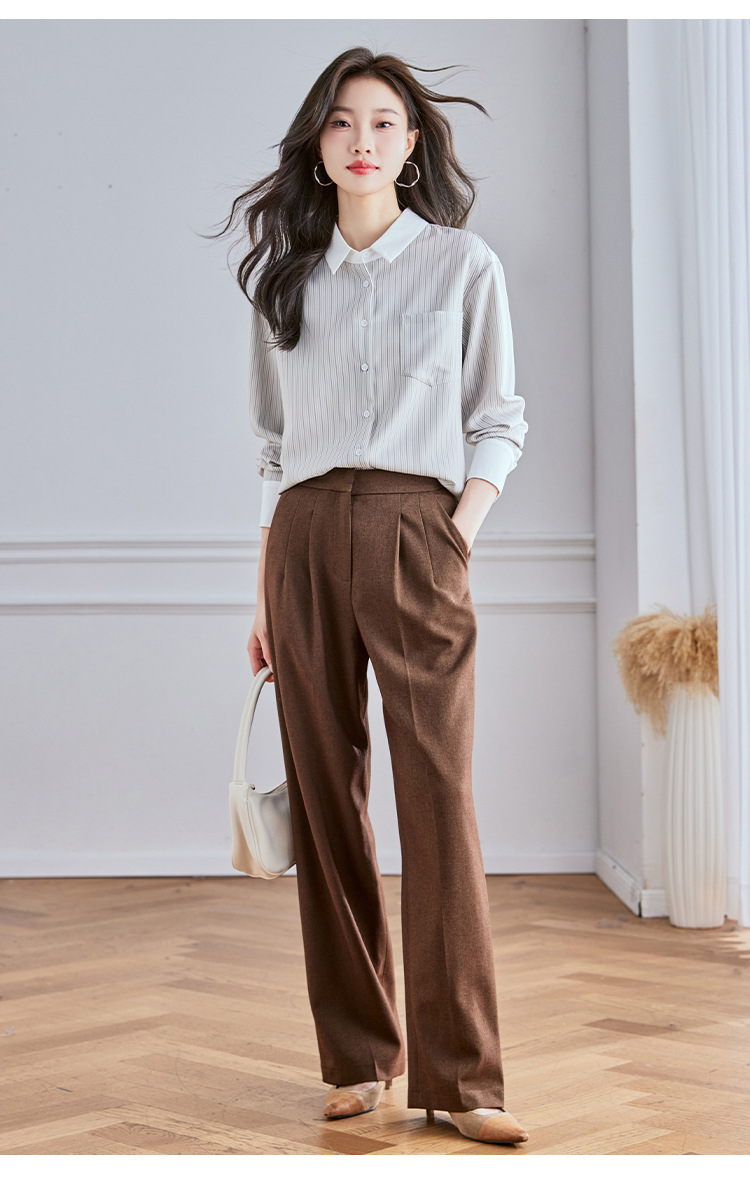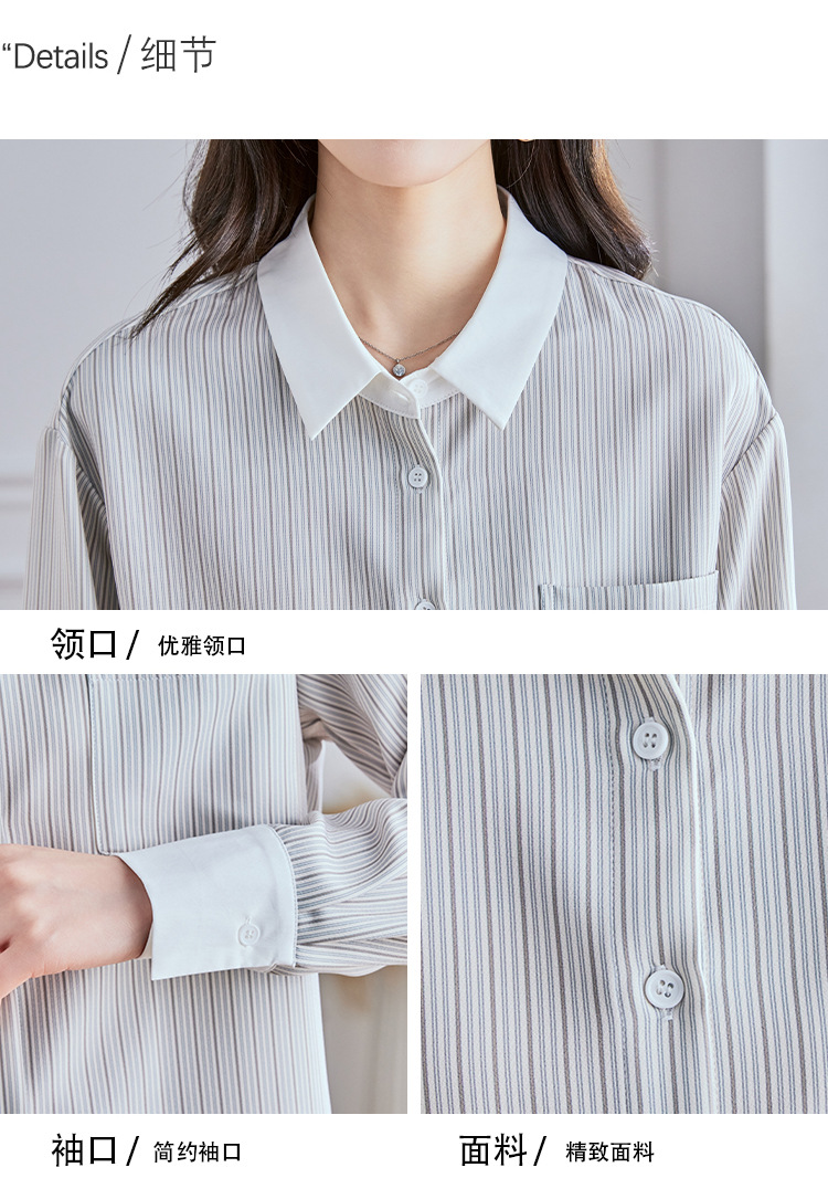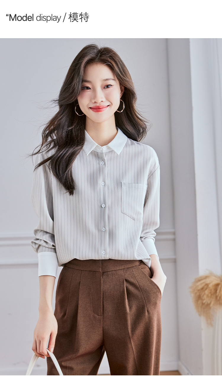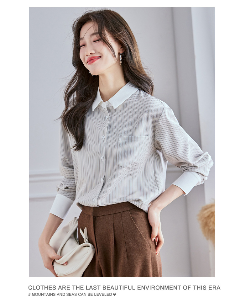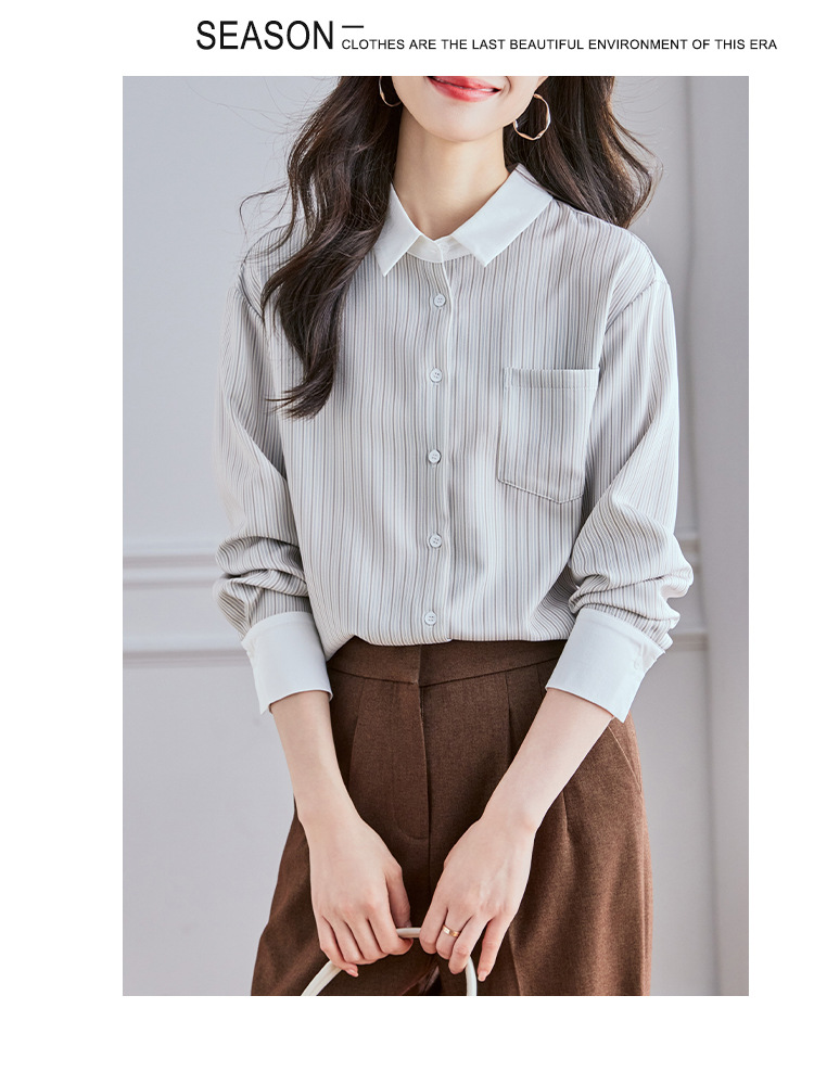 Реальный выстрел высокого уровня в полоску рубашка женская мода дикая рубашка 2024 осенний топ с длинными рукавами темпераментный рубашка