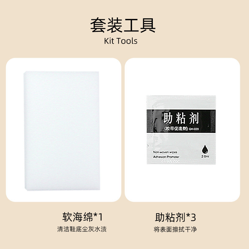 Набор (наклейка на подошву * 4 ножницы * 1 вспомогательное клейкое вещество * 1 мягкая губка * 1); Другие