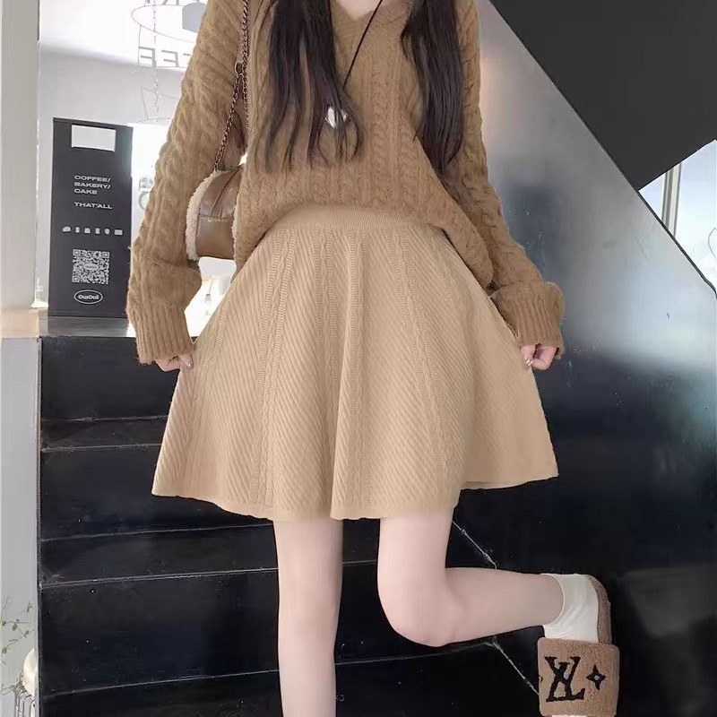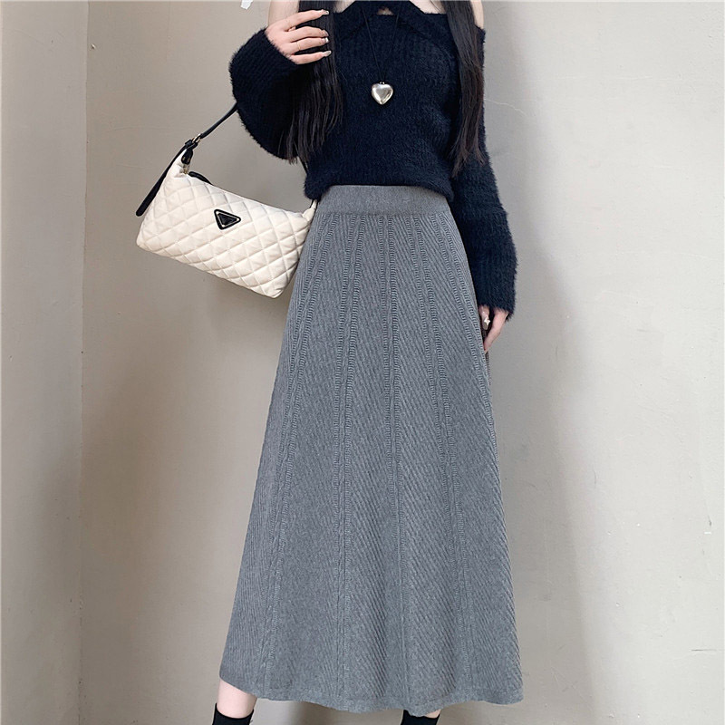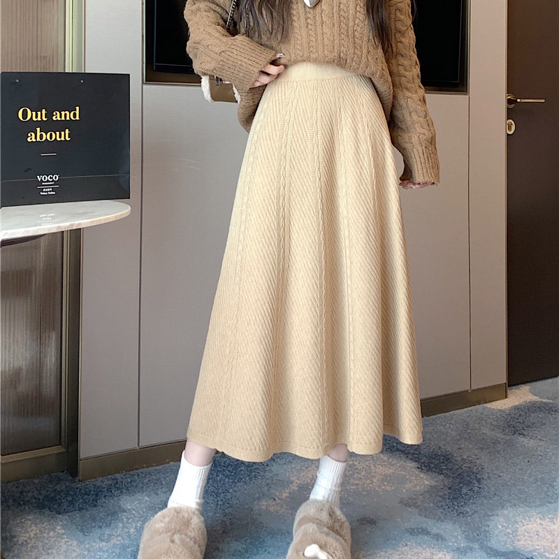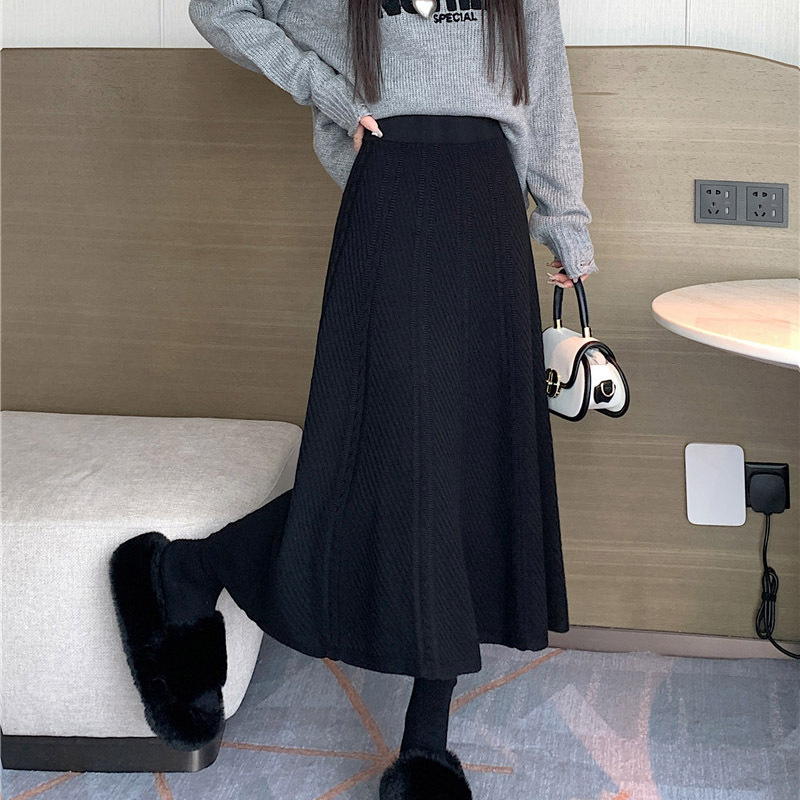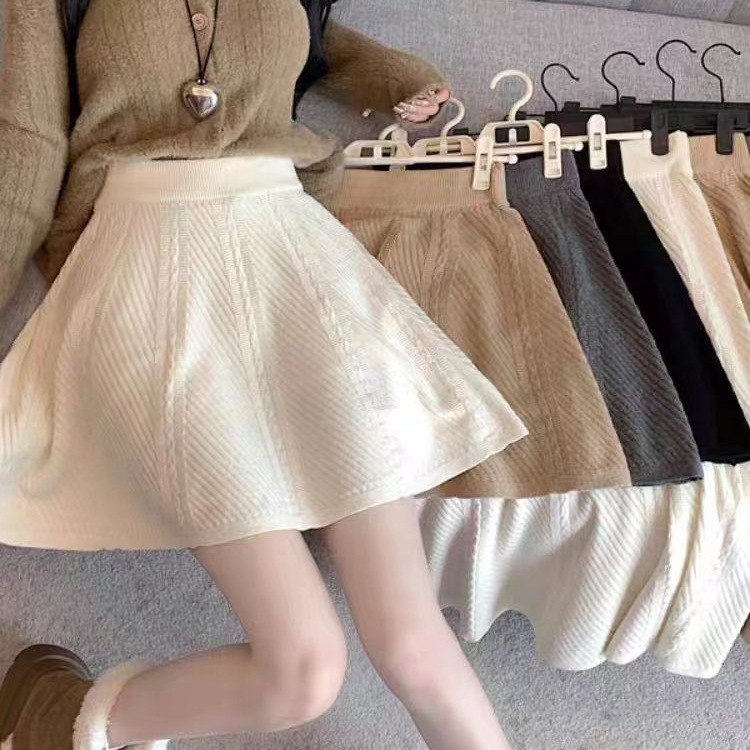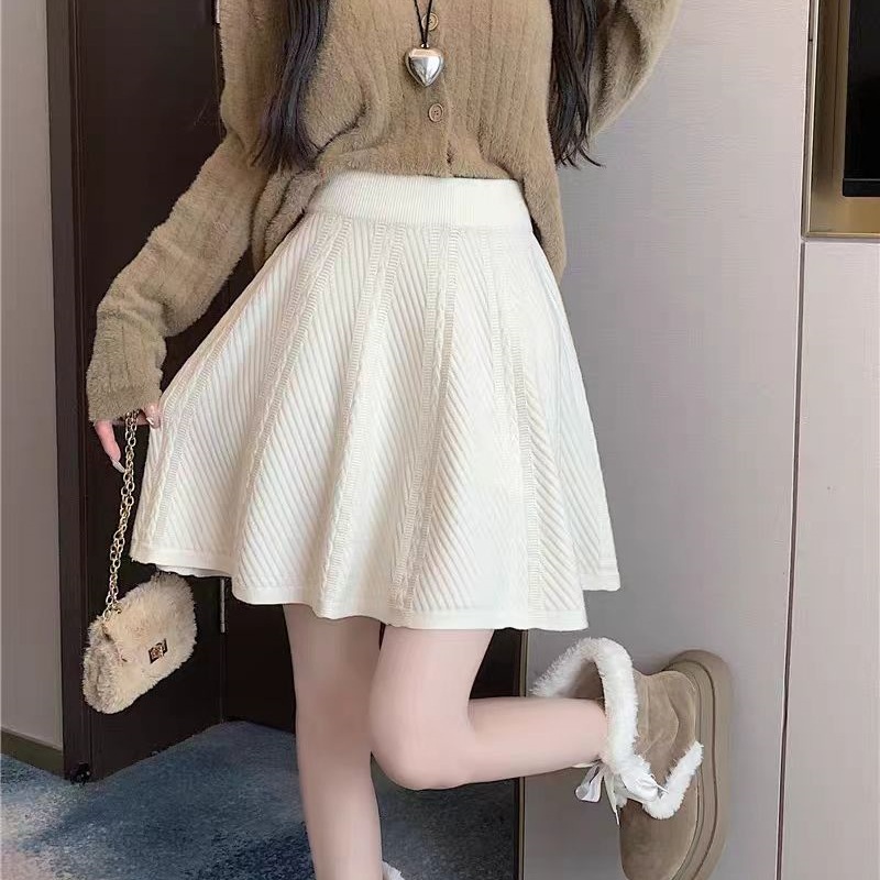 2024 осень-зима корейская вязаная плиссированная юбка эластичная шерсть с высокой талией