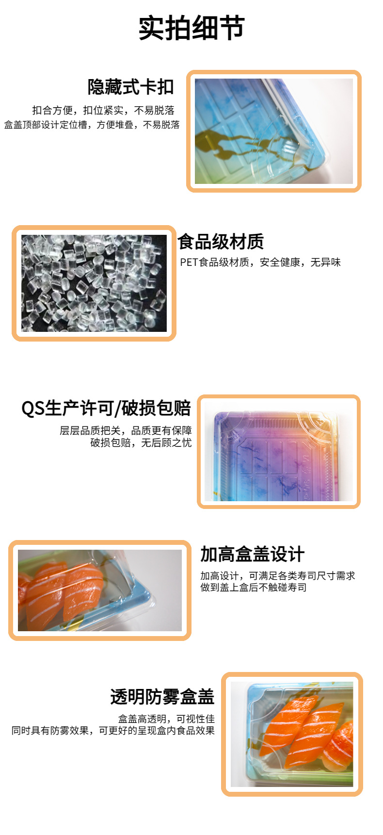 Caiyun суши упаковочная коробка коммерческая стойка сашими крышка крышка коробка для приготовления пищи одноразовая коробка на вынос для пищевых продуктов