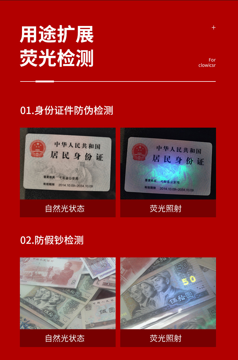 功能 :货币检测,宠物真菌检测,珠宝鉴别