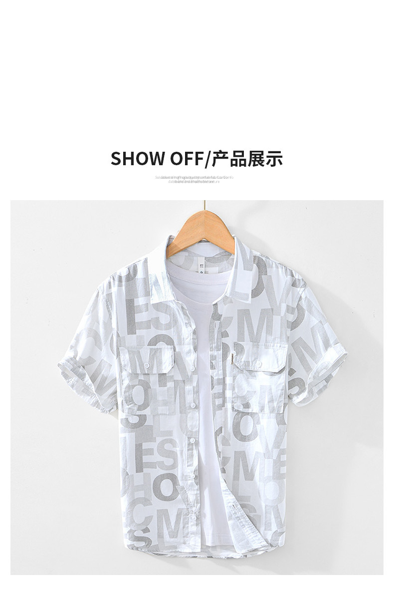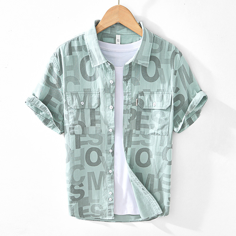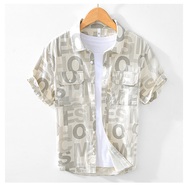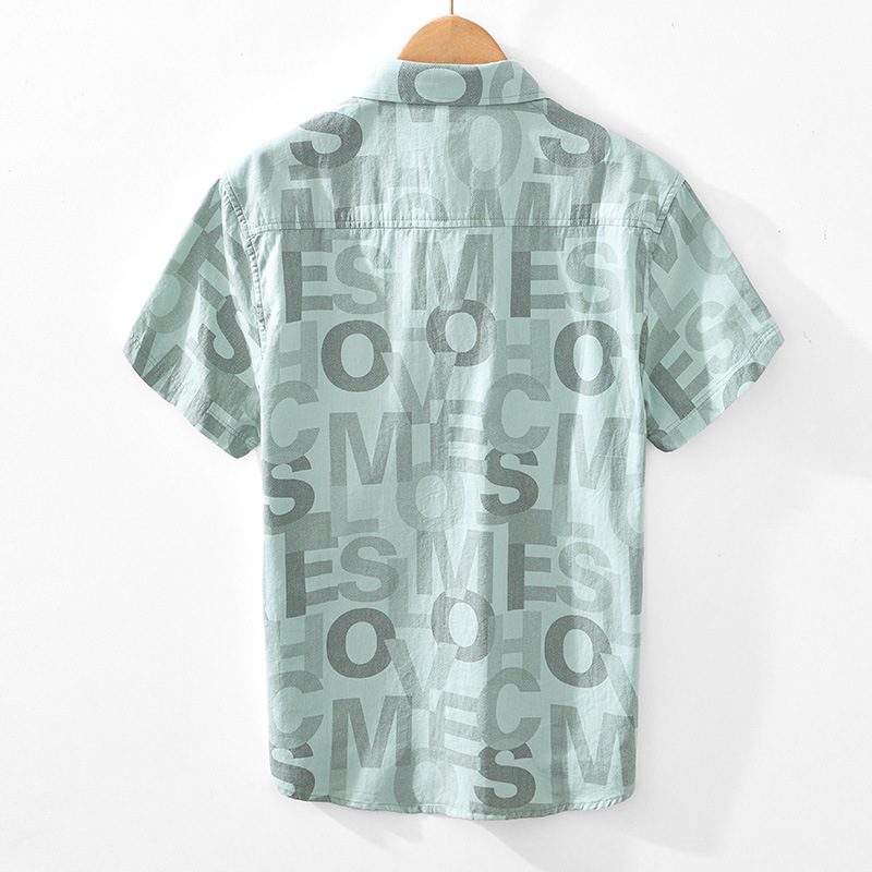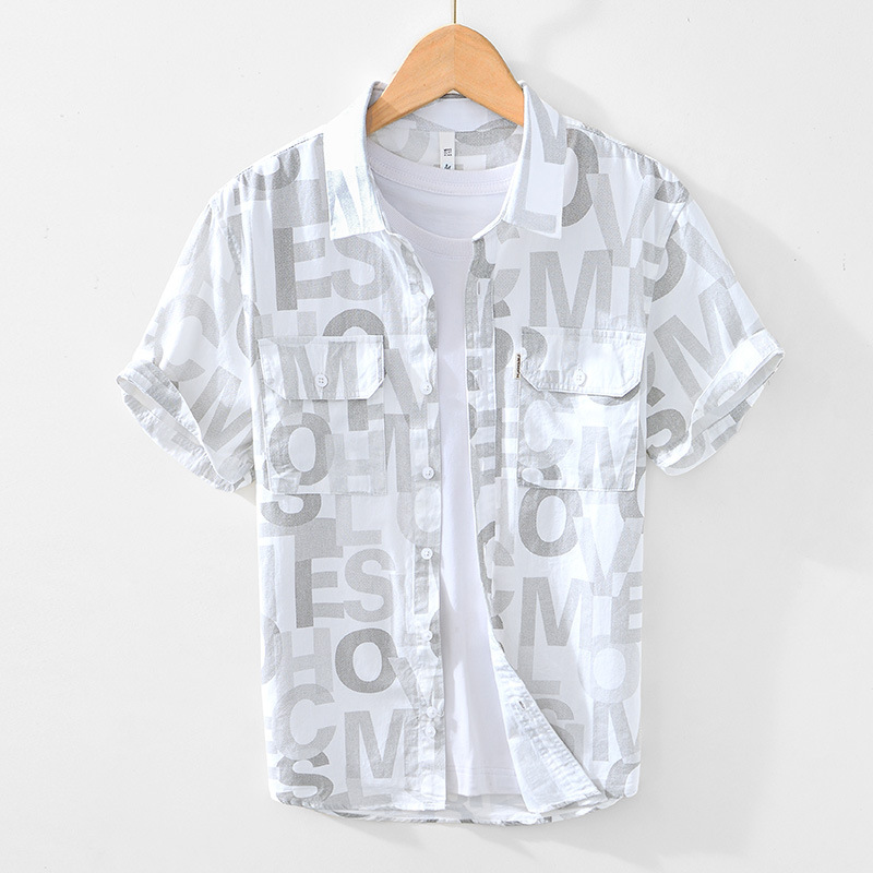 8027 Полная печать, легкая дышащая рубашка с короткими рукавами, буквенные принты, полрукава, легкая рубашка ветра