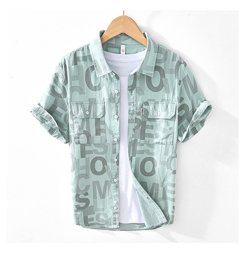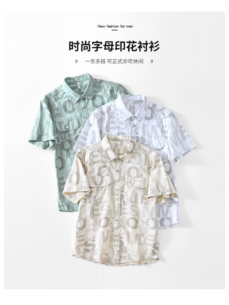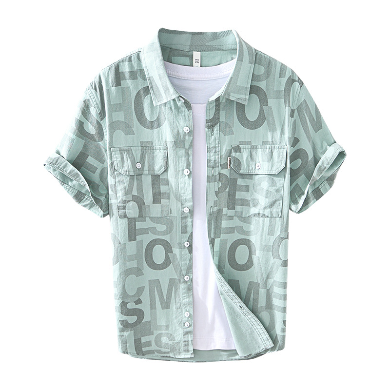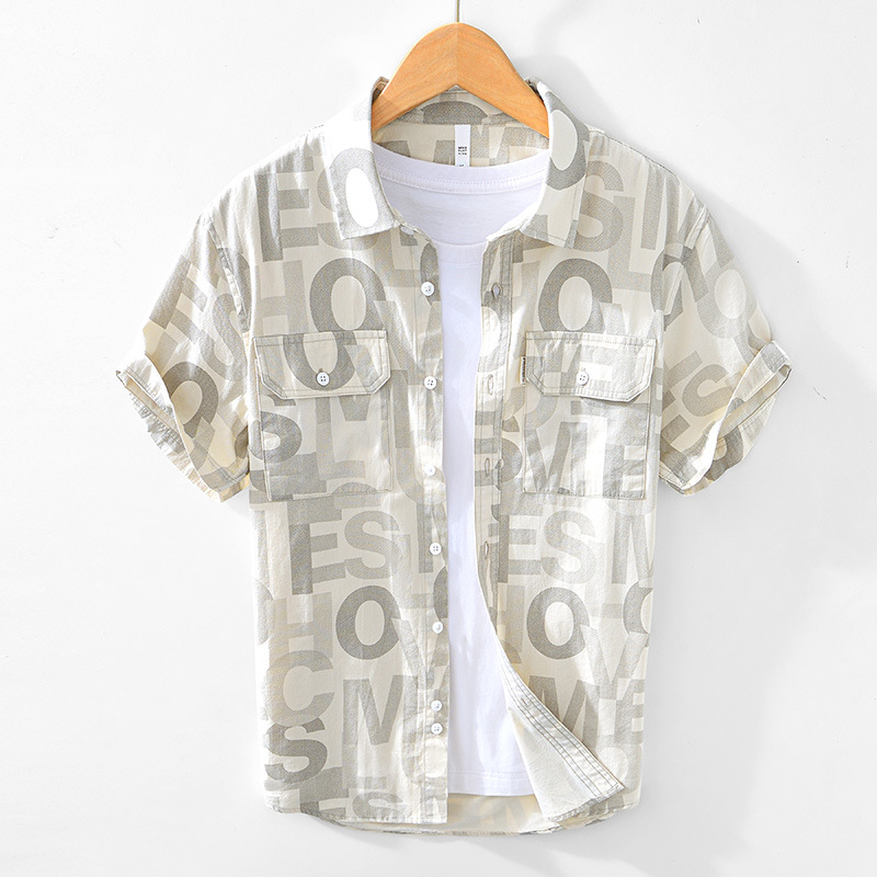 8027 Полная печать, легкая дышащая рубашка с короткими рукавами, буквенные принты, полрукава, легкая рубашка ветра