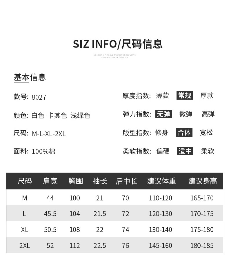 170/88A(M); 175/92A(L); 180/96A(XL); 185/100A(2X)