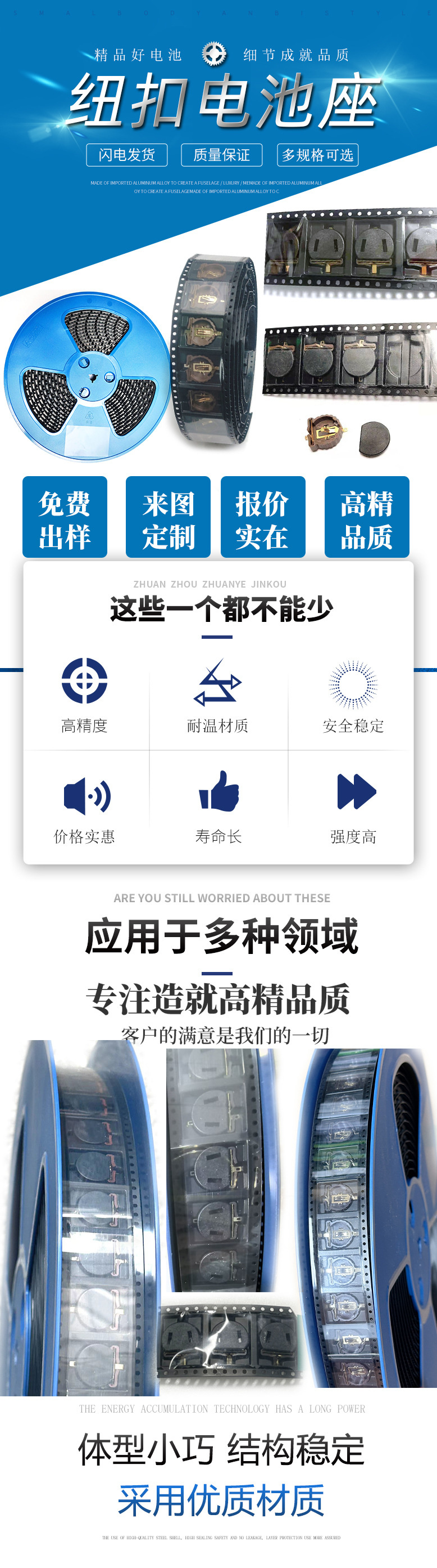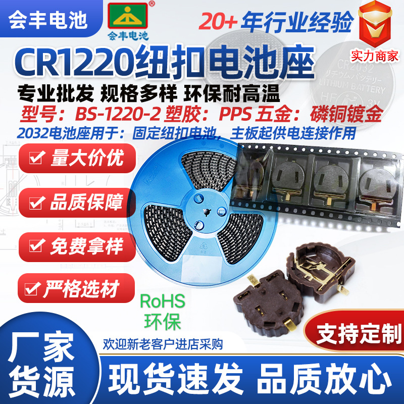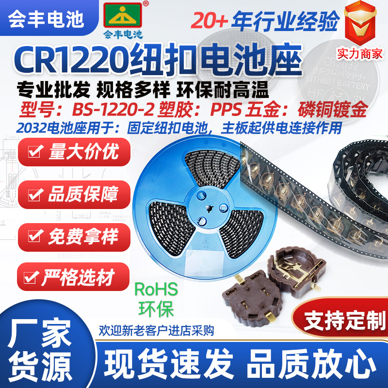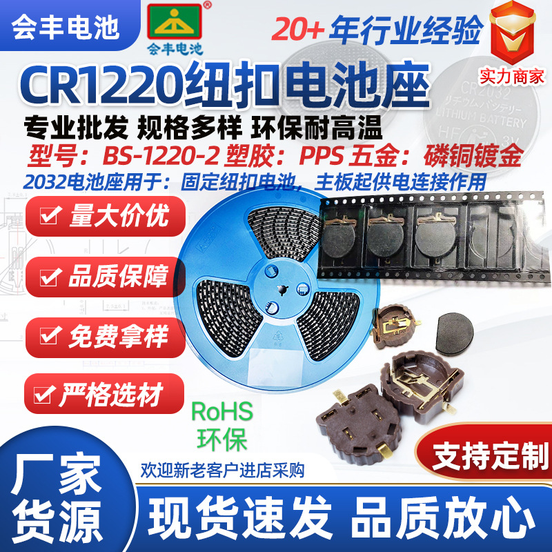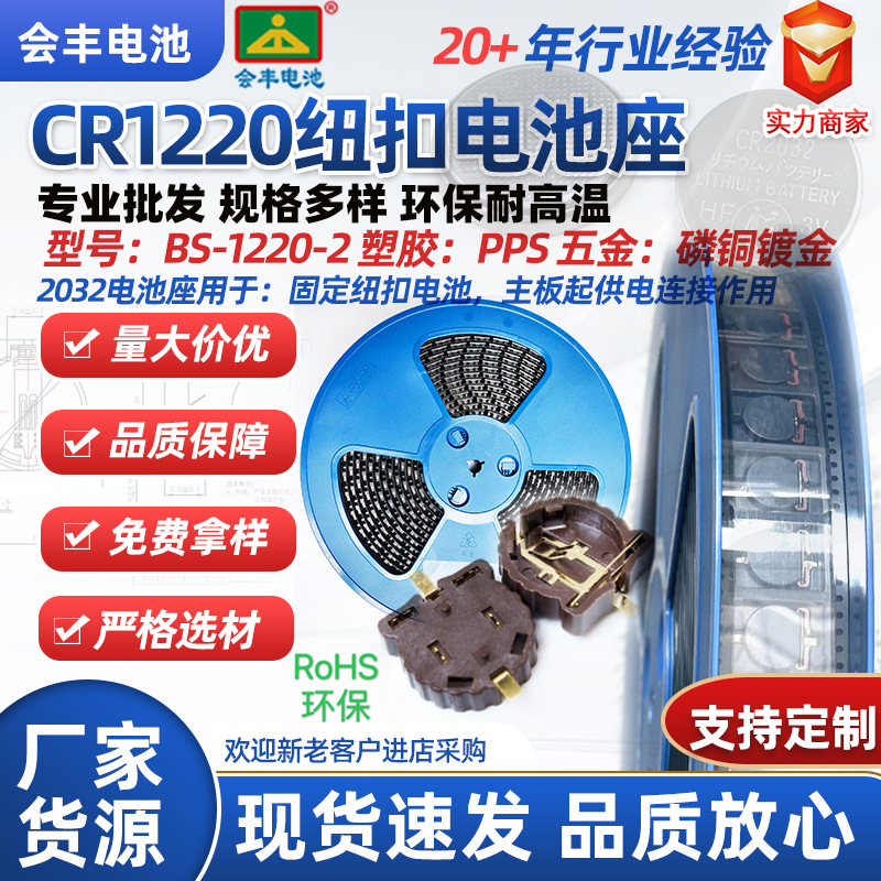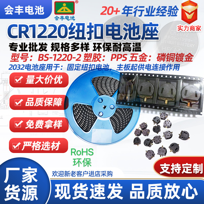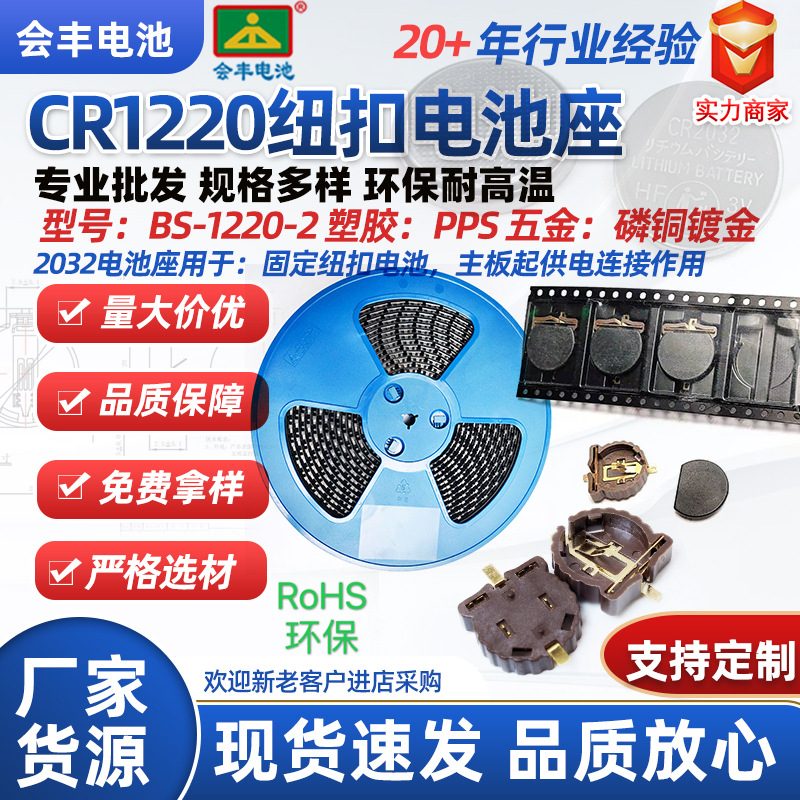 Держатель для батареек SMD-CR1220, 3В, для кнопочных батареек, позолоченный, термостойкий, с клейкой лентой/обмоткой/с крышкой