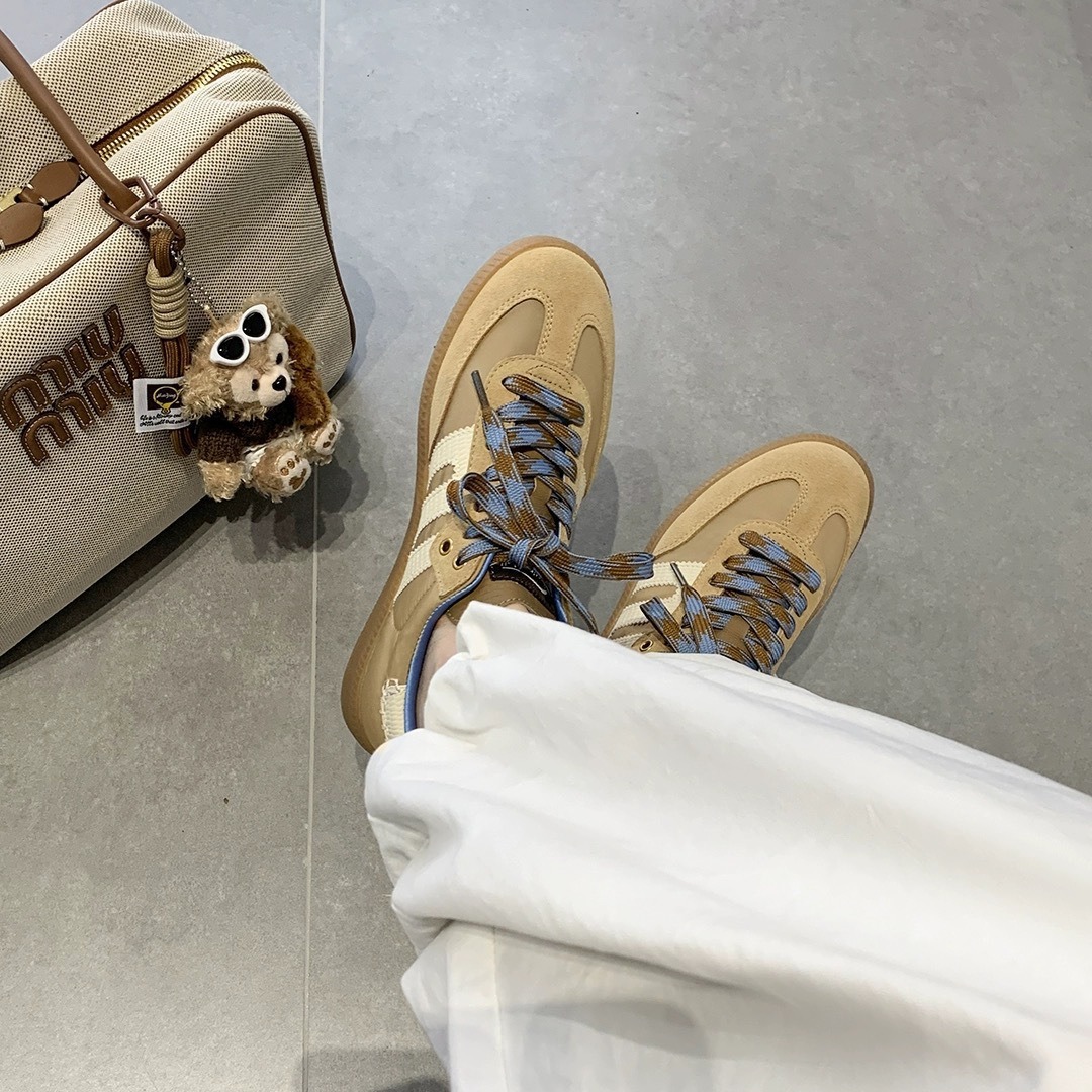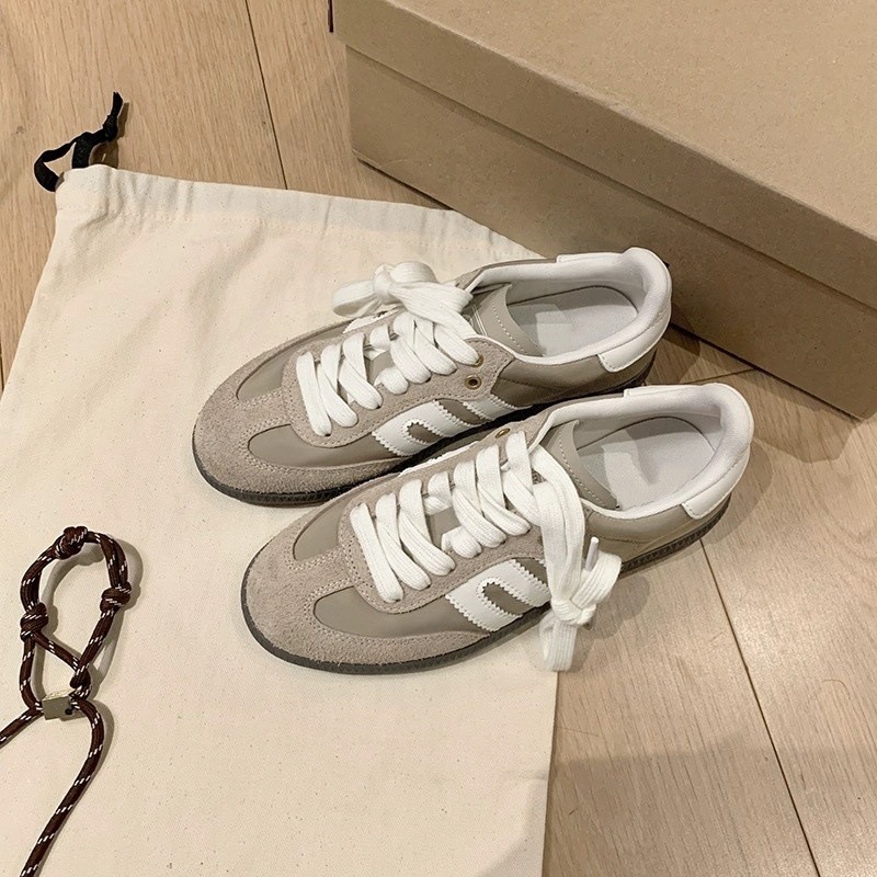 Американские ретро-кроссовки из мягкой кожи с цветовыми блоками, спортивные повседневные немецкие тренировочные туфли для женщин, новинка 2025 года, универсальные кеды на плоской подошве
