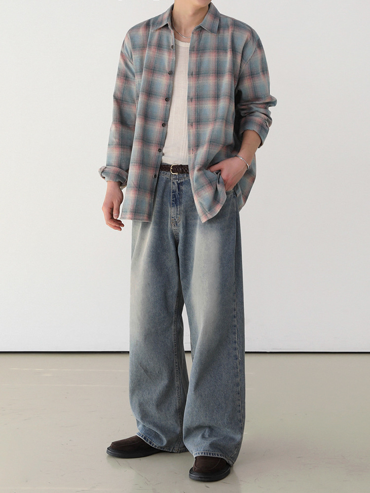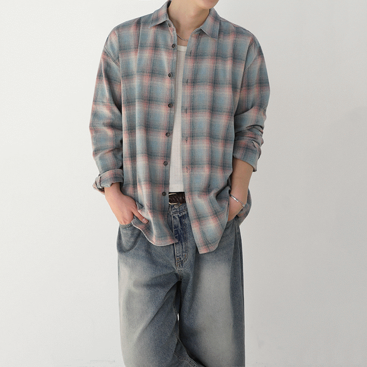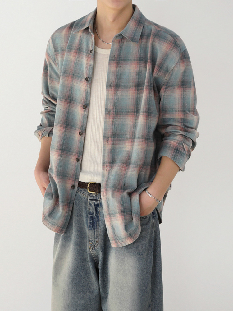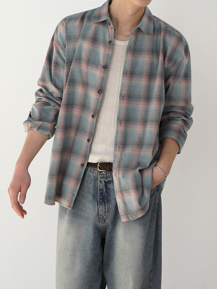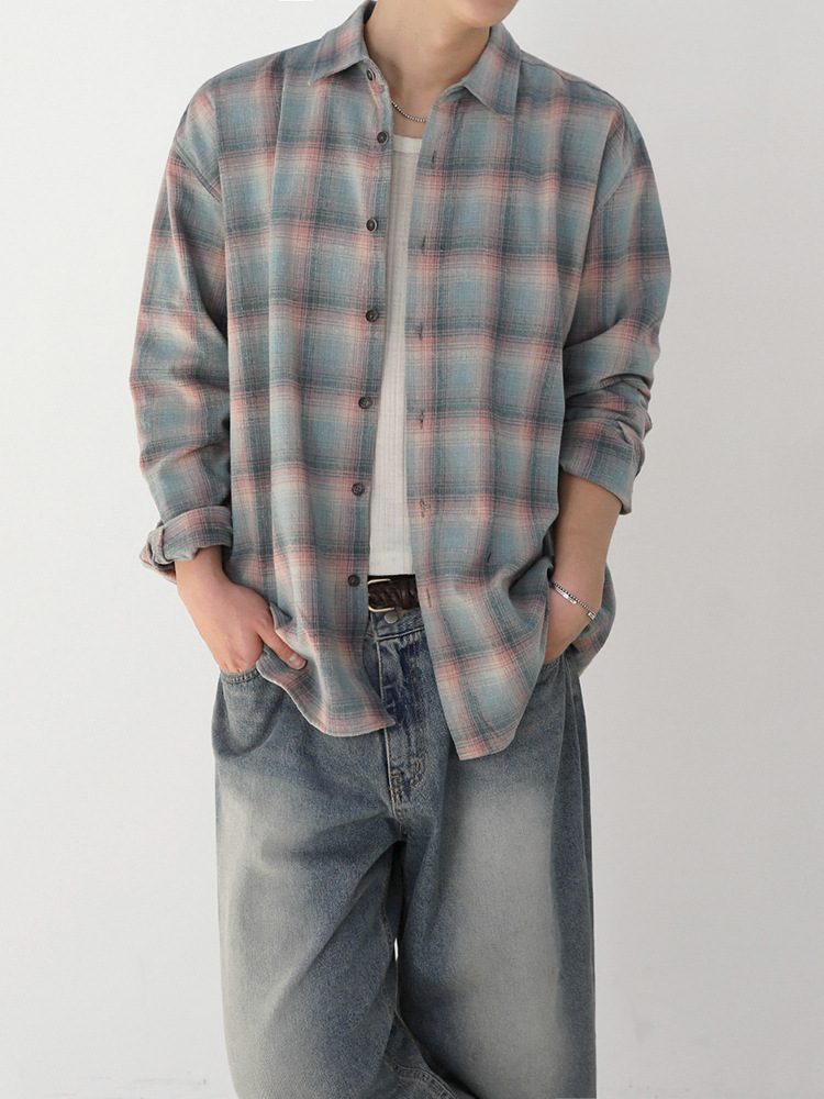 MYQ контрастная клетчатая рубашка с длинными рукавами для мужчин осенью ленивый стиль повседневная рубашка корейская модная рубашка с отворотом