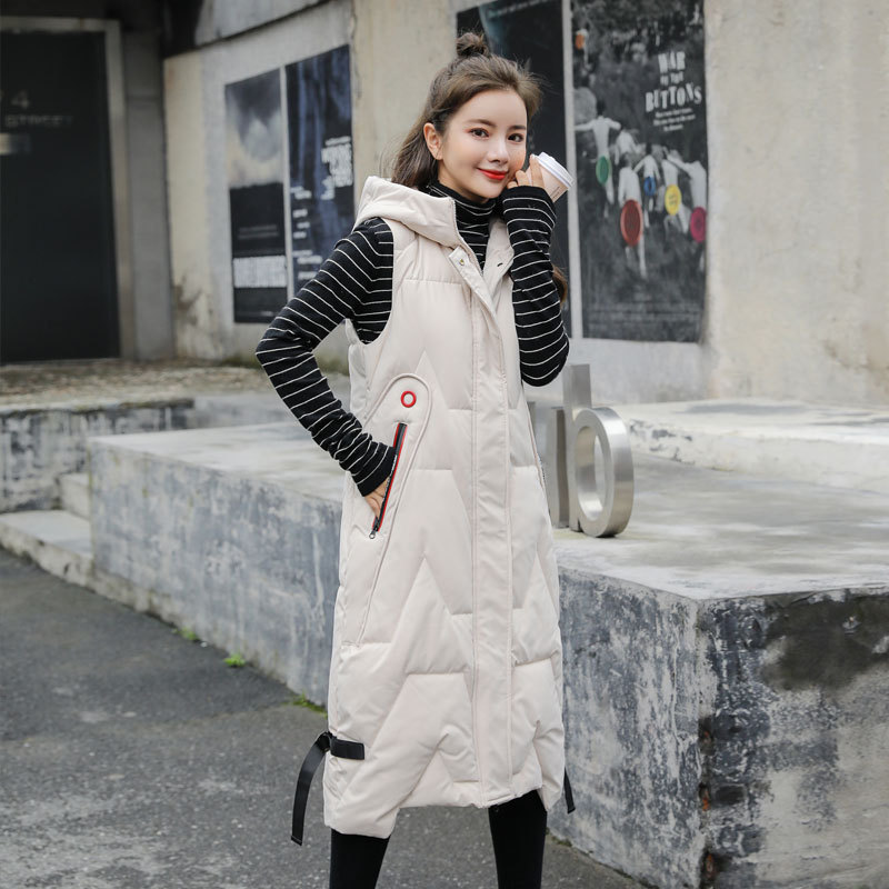 Длинная хлопчатобумажная одежда на коленях длинная жилет женская осень-зима новая мода с капюшоном
