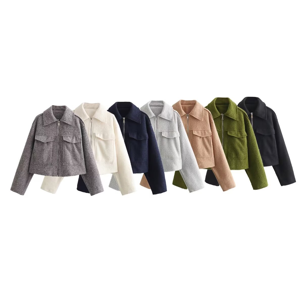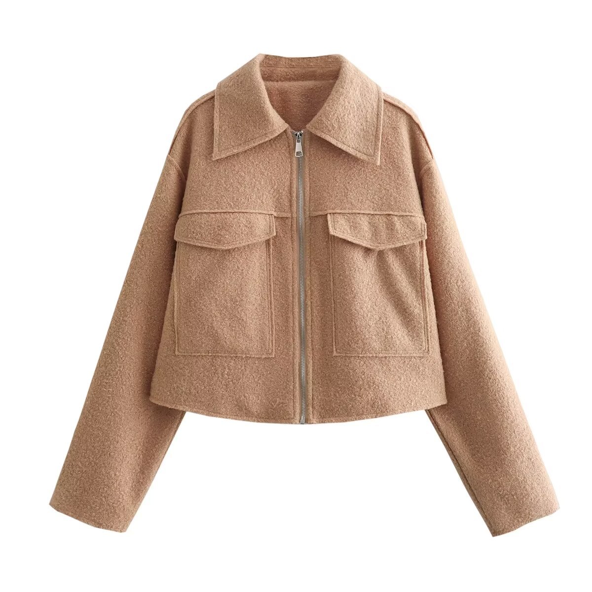 Amazon Женская одежда в европейском и американском стиле новый модный дикий карман с отворотами Короткая куртка с длинными рукавами куртка S8684