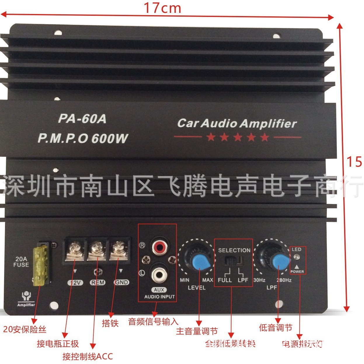 12v автомобильный усилитель платы высокой мощности звуковой сабвуфер раскрывает усилитель мощности 12v усилитель 600WPA-60A
