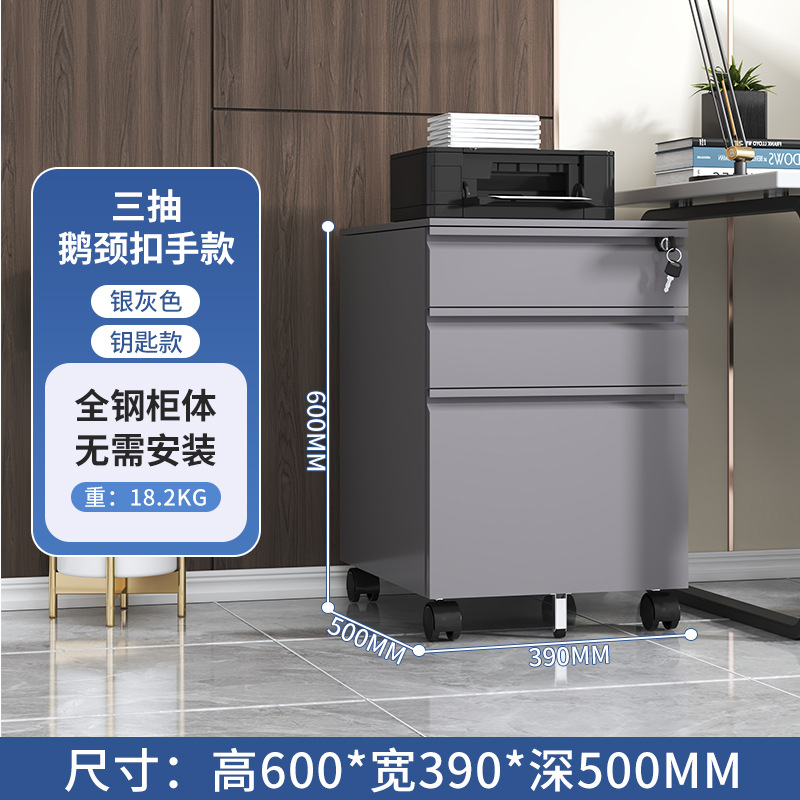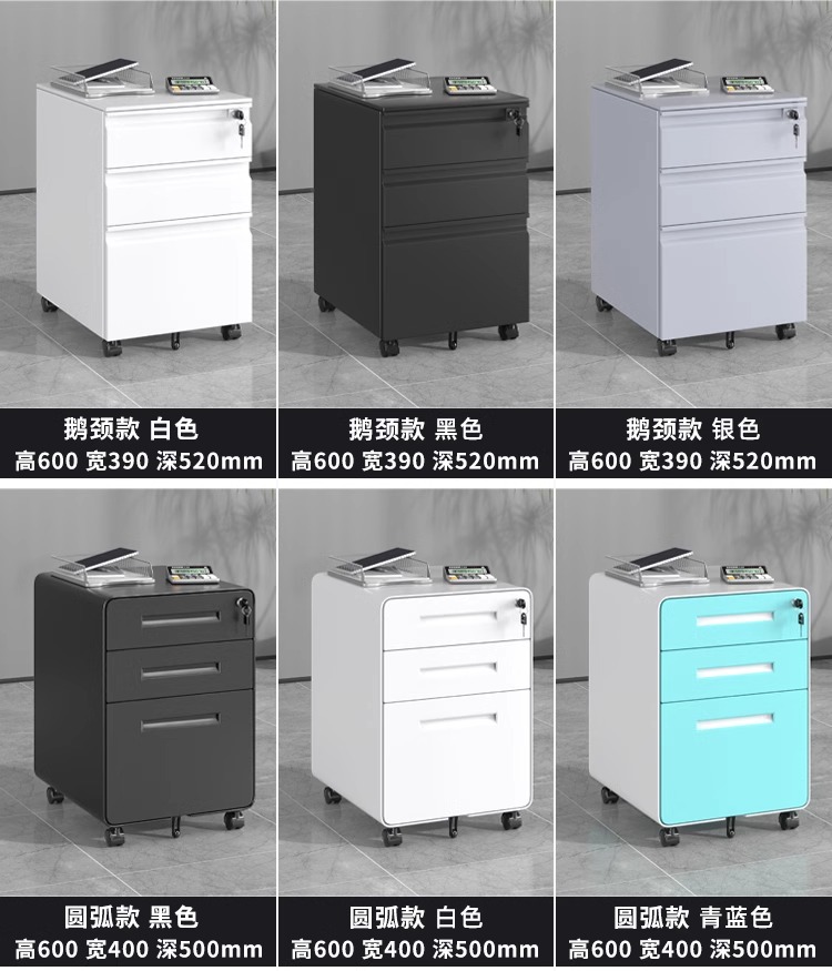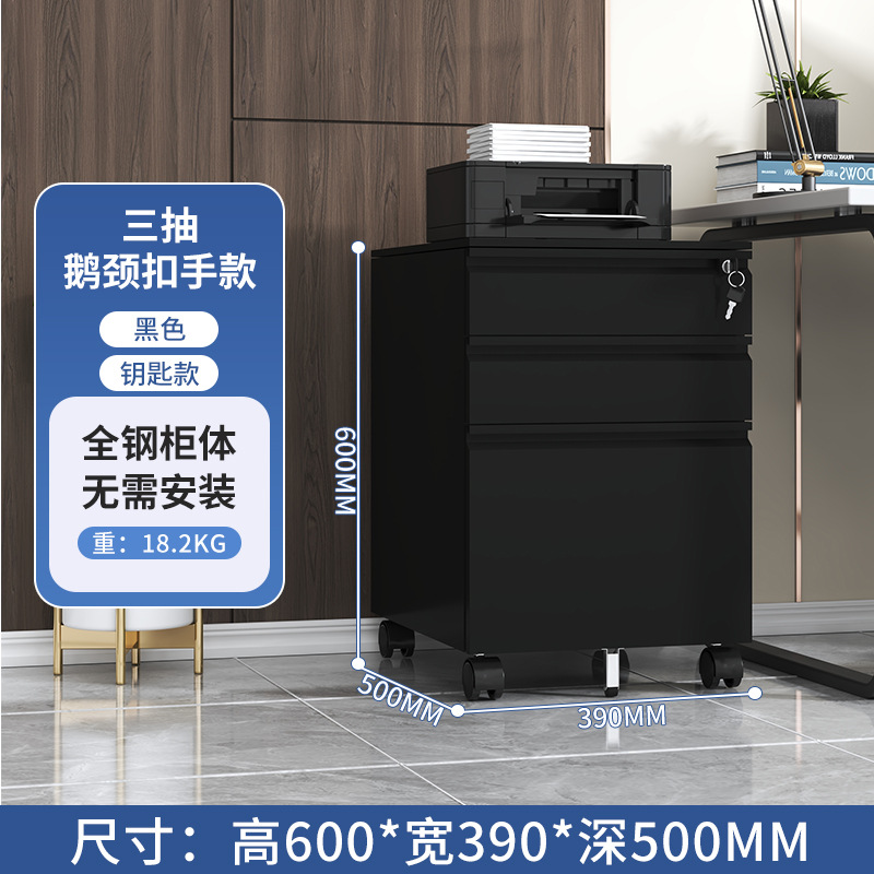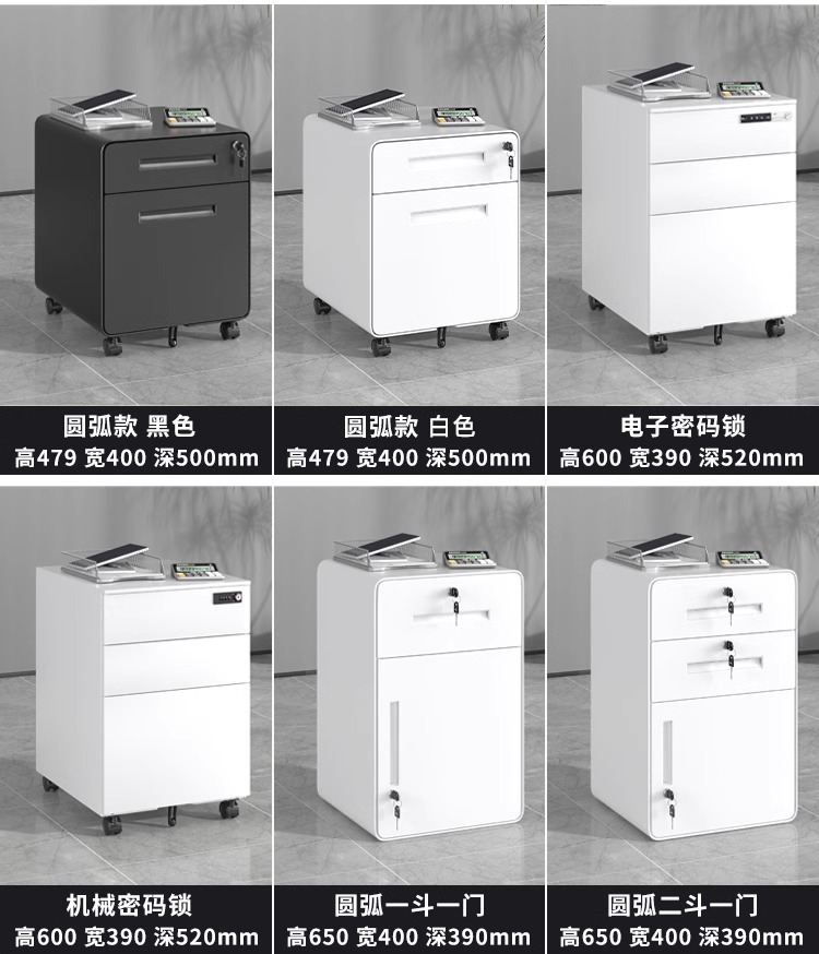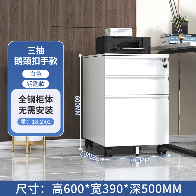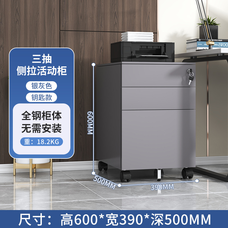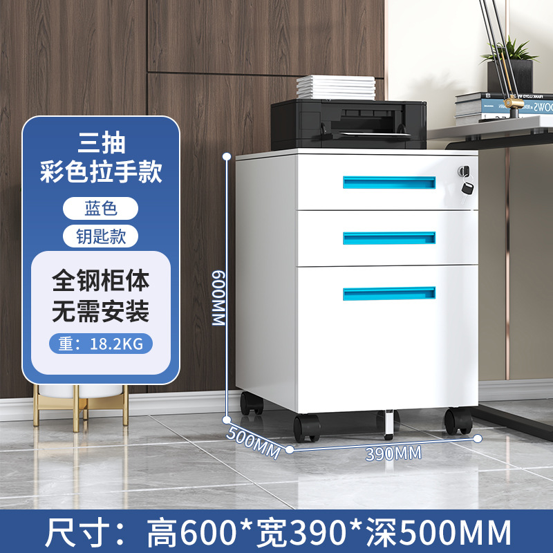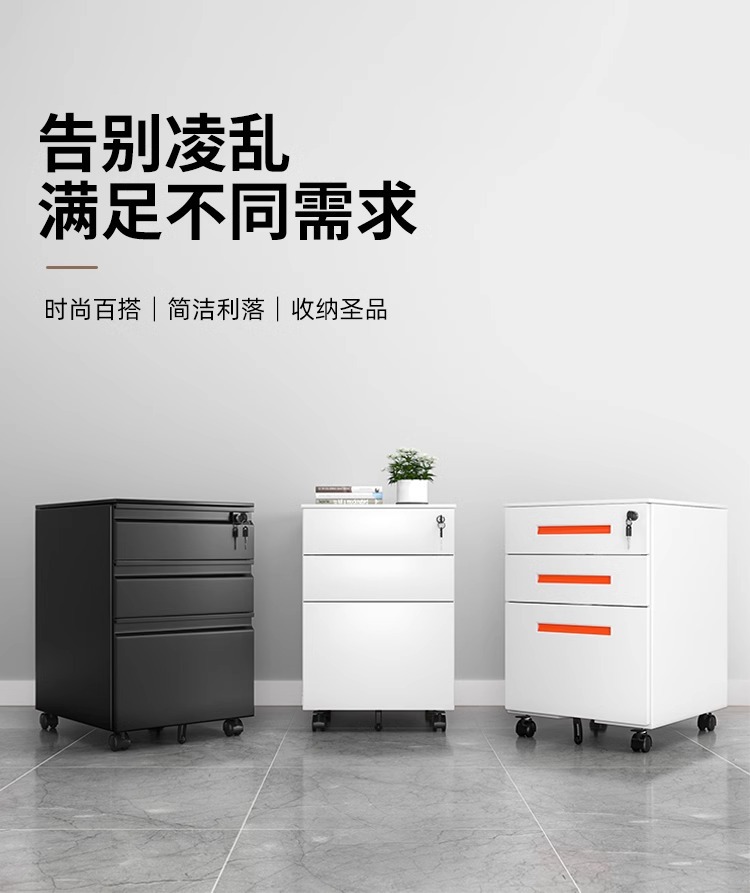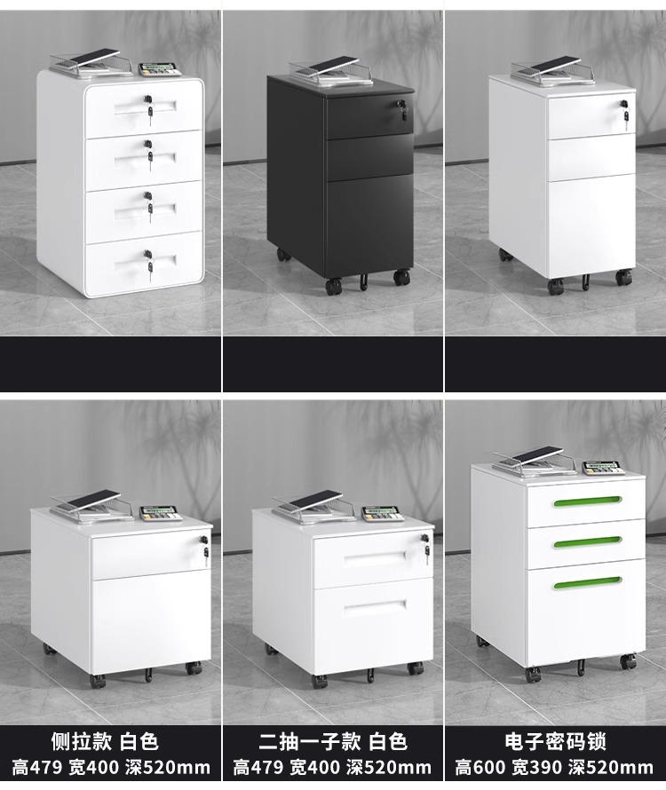 钢制活动柜办公室桌下移动铁皮资料柜储物柜矮柜抽屉柜带锁收纳柜