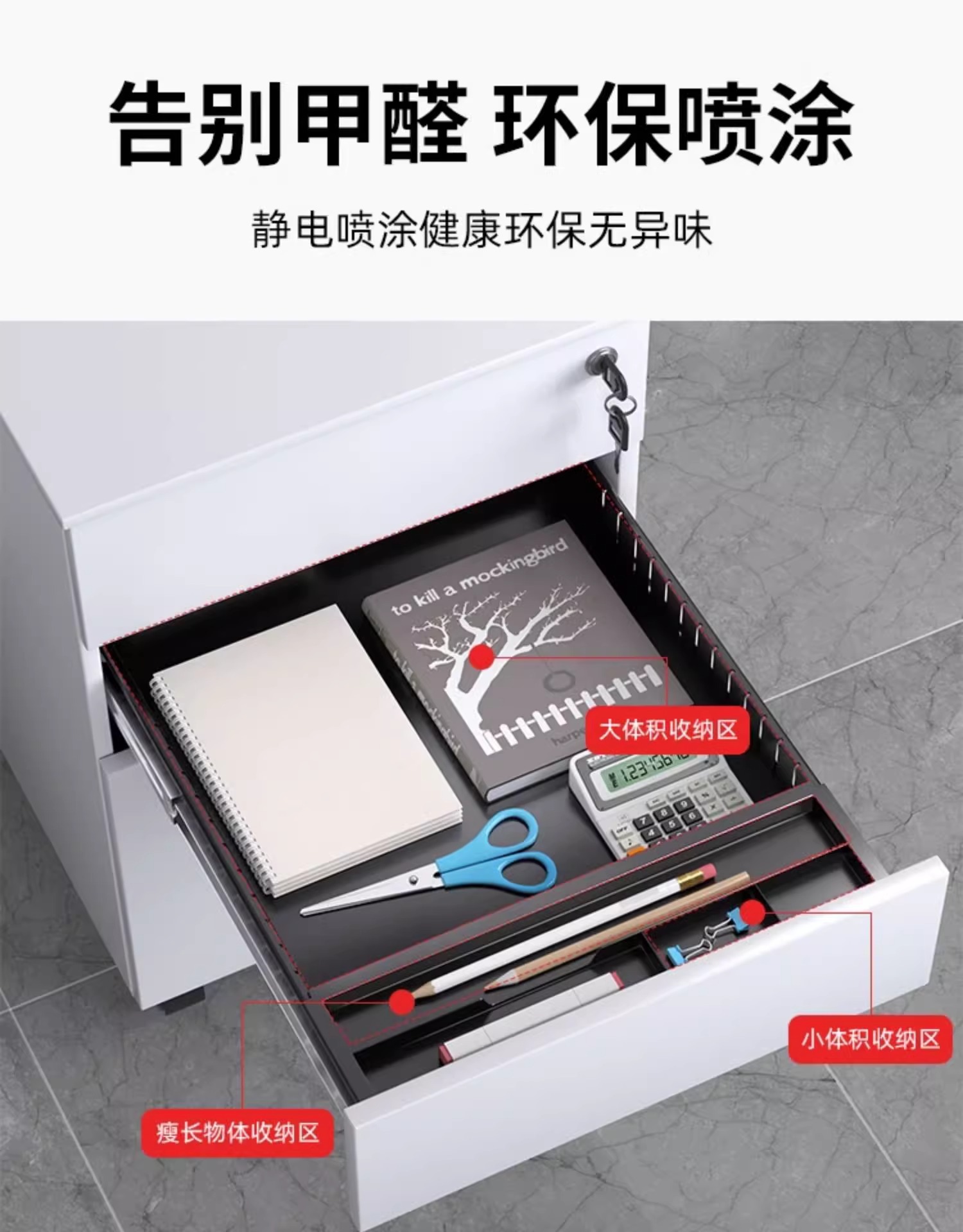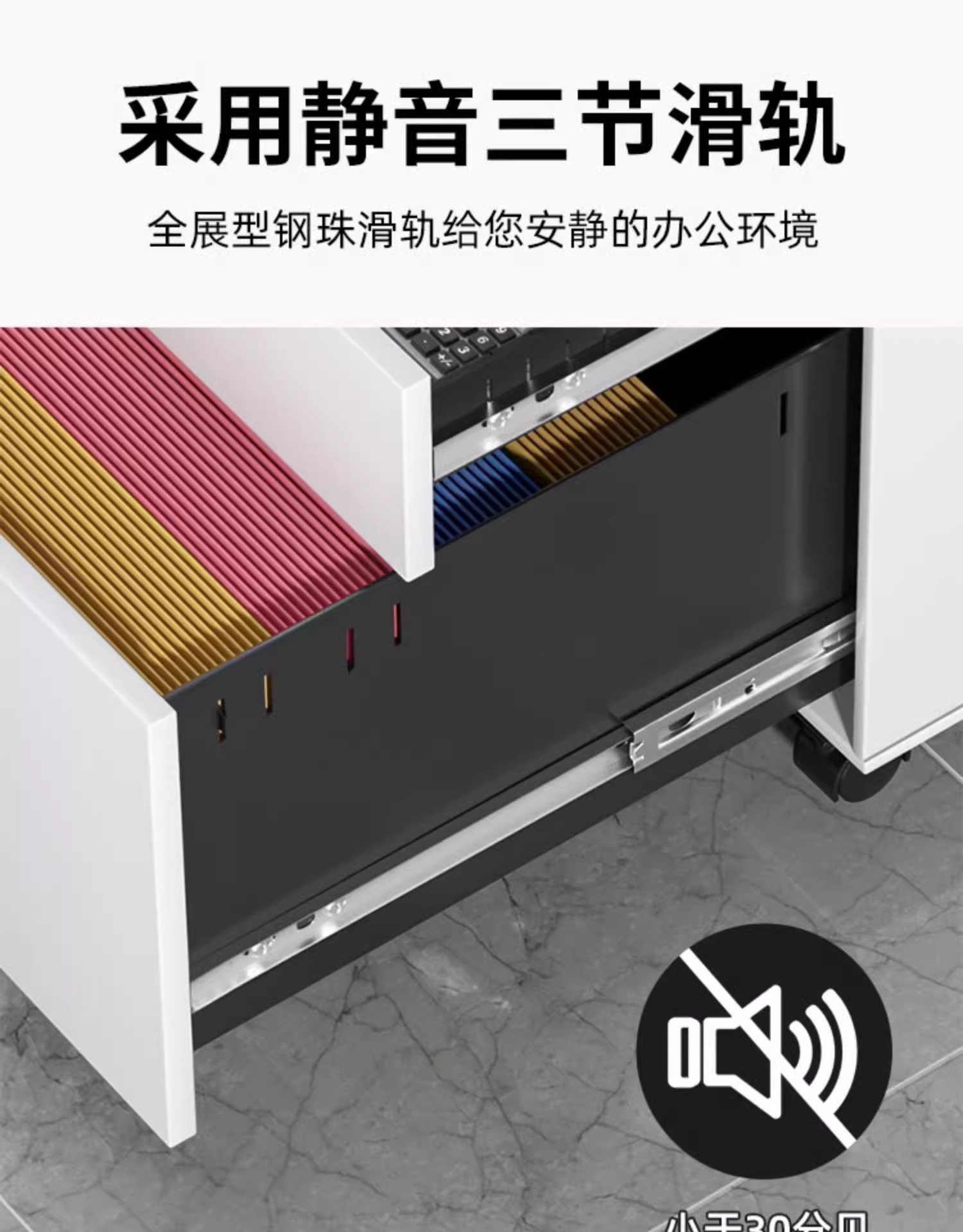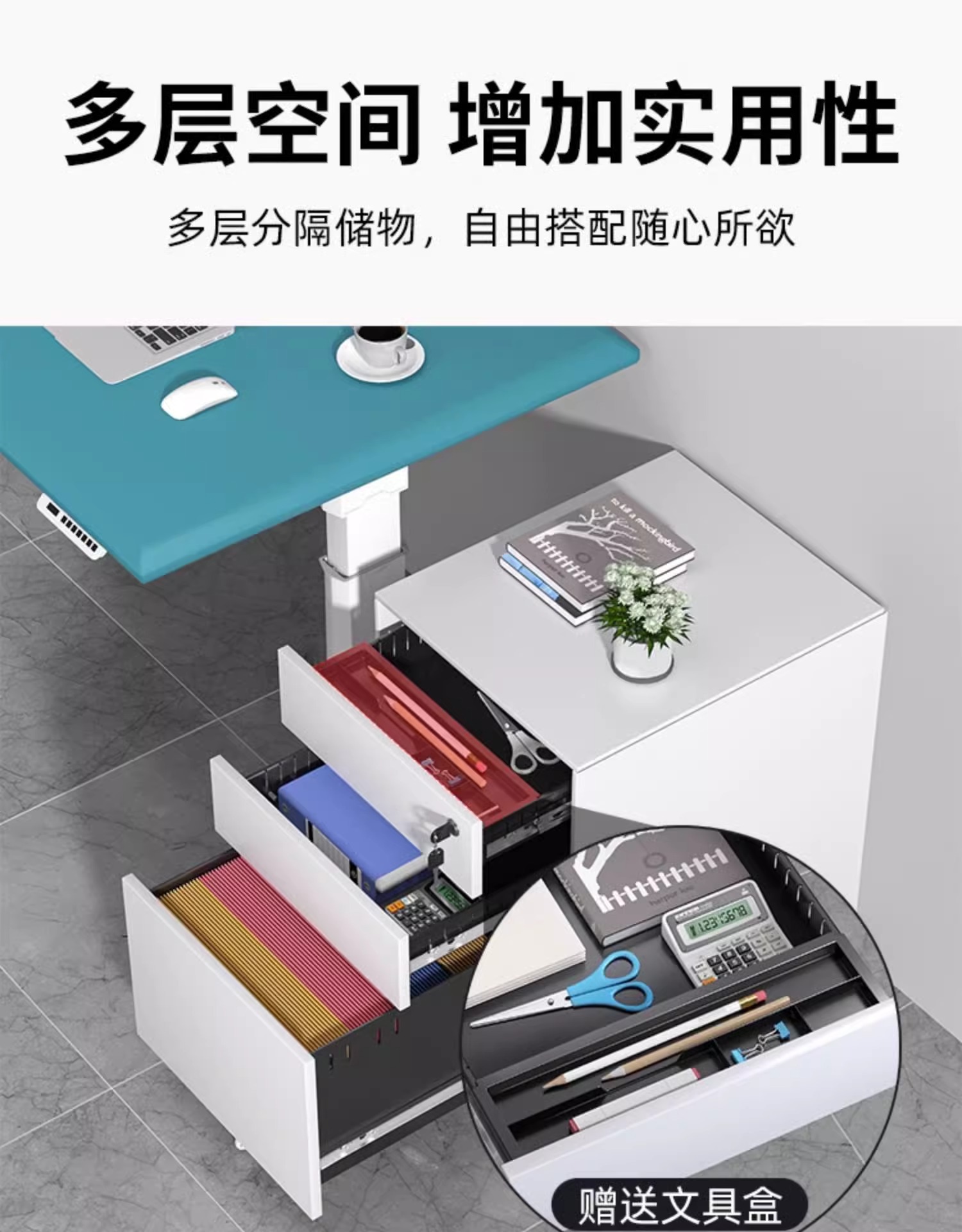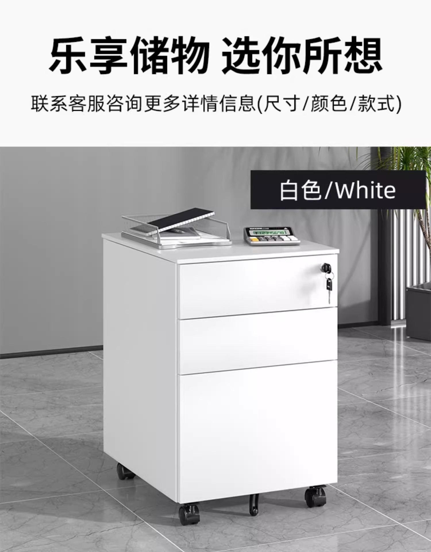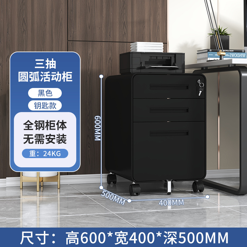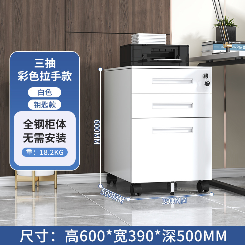 钢制活动柜办公室桌下移动铁皮资料柜储物柜矮柜抽屉柜带锁收纳柜