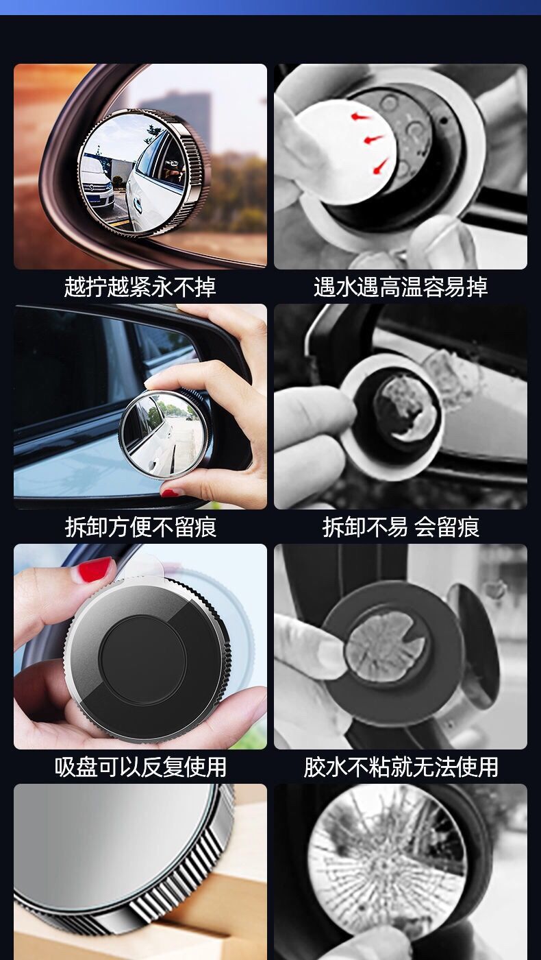 Новый автомобиль присоски задний вид вспомогательное зеркало универсальное 360-градусное регулируемое широкоугольное зеркало слепой точки заднего вида