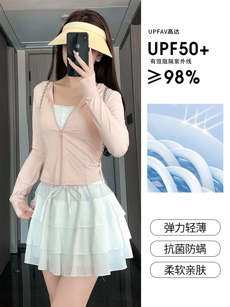 Розовый солнцезащитный крем из ледяного шелка женский летний тонкий наружный солнцезащитный крем УФ-солнцезащитный костюм тонкий облегчай короткий топ