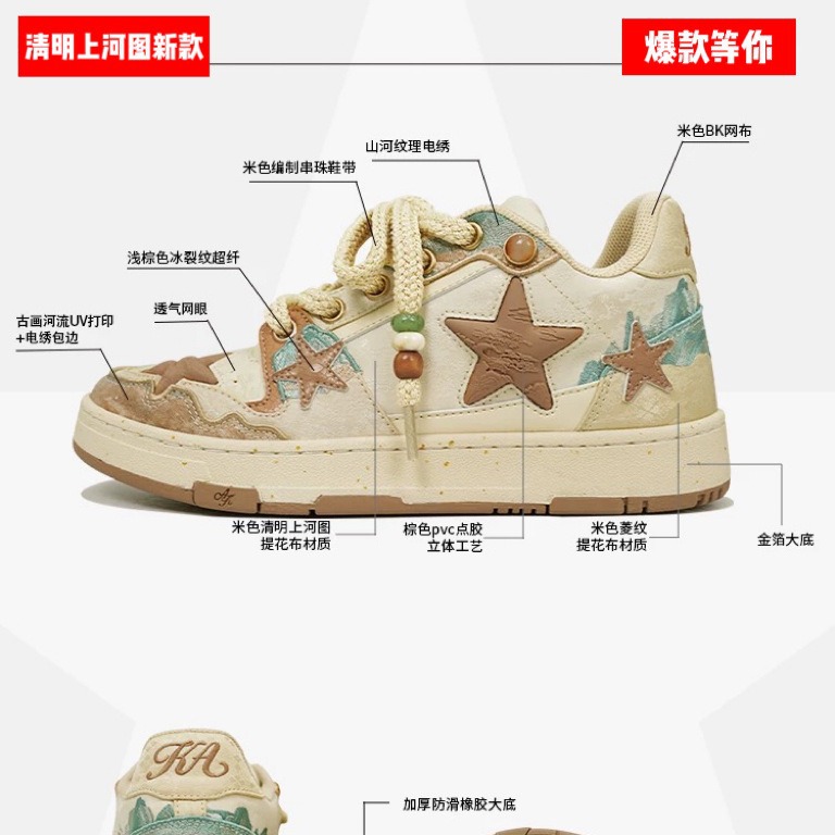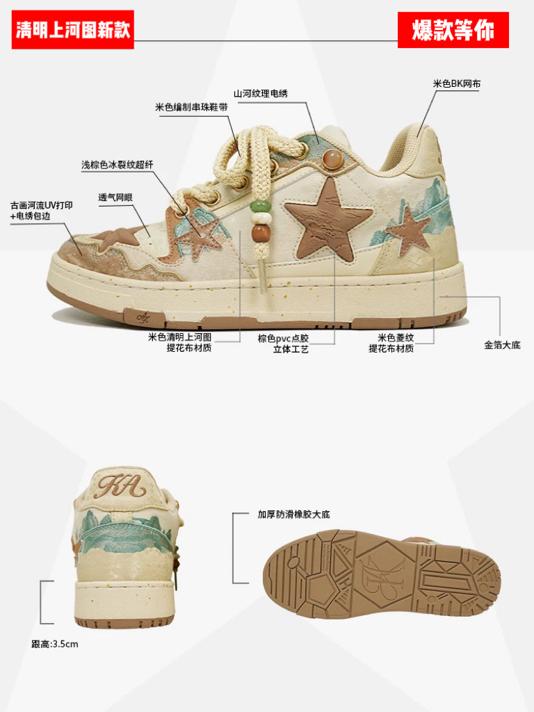 Кроссовки в стиле Лин Гаоюань, модель «Сцена у реки Циньмин», унисекс, увеличивающие рост, универсальные, летние, в национальном стиле.