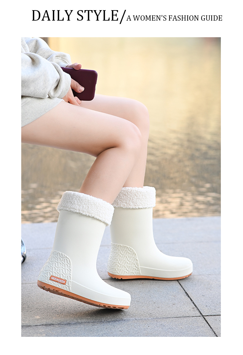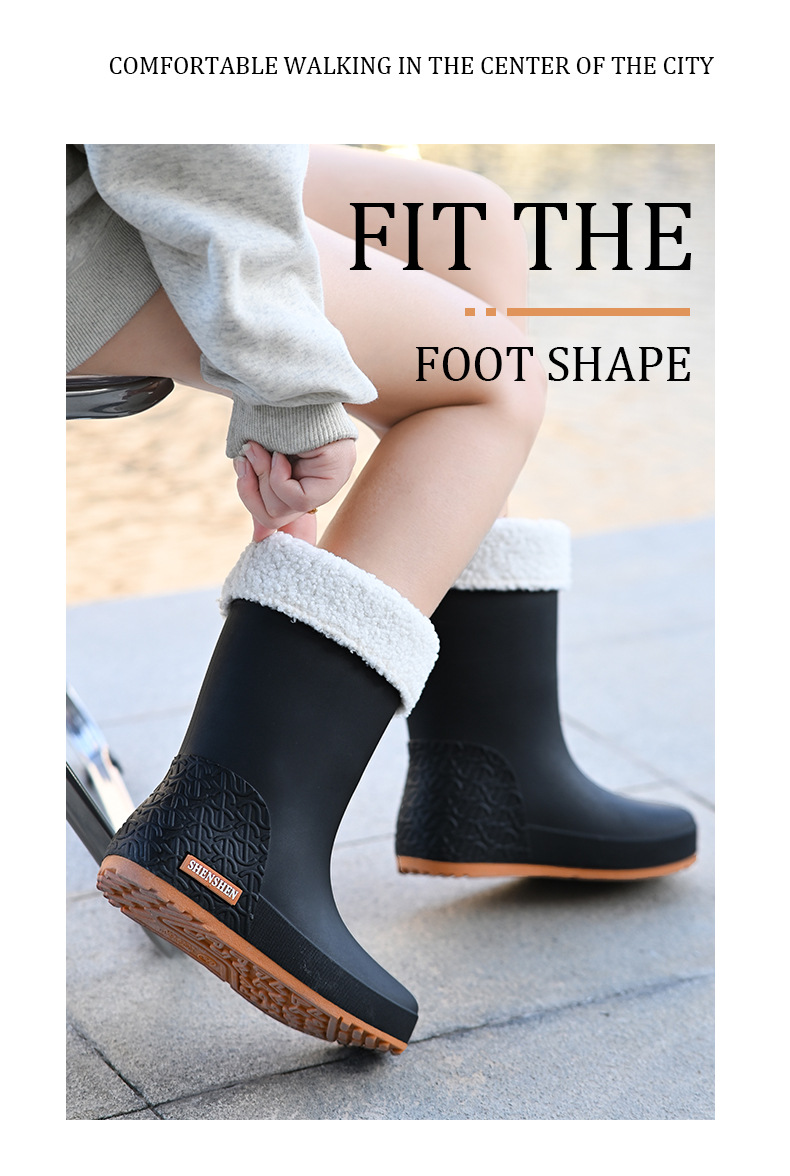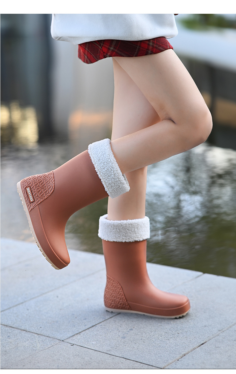 Модные трансграничные нескользящие водонепроницаемые сапоги дождевые сапоги водяные сапоги теплая туфли женские взрослые длинные трубки завод прямых продаж