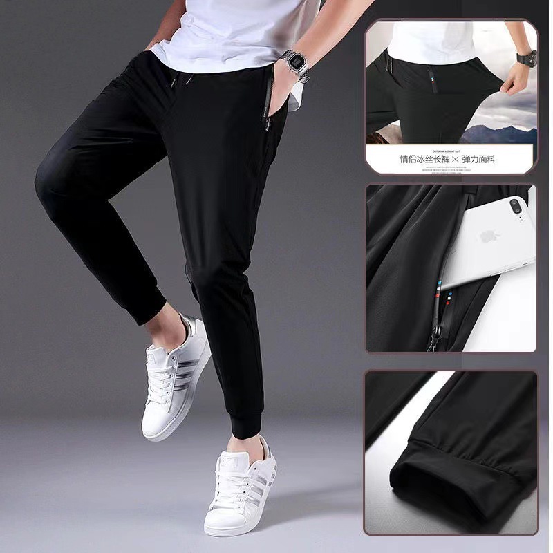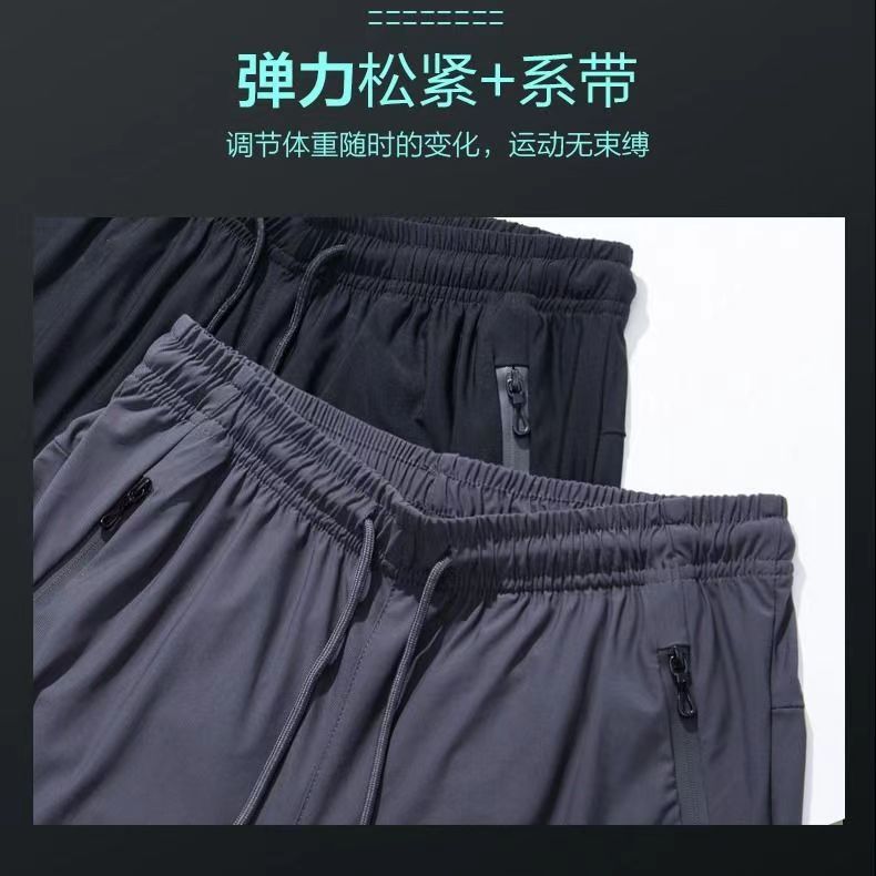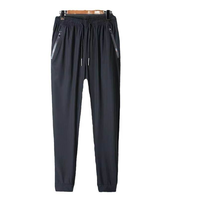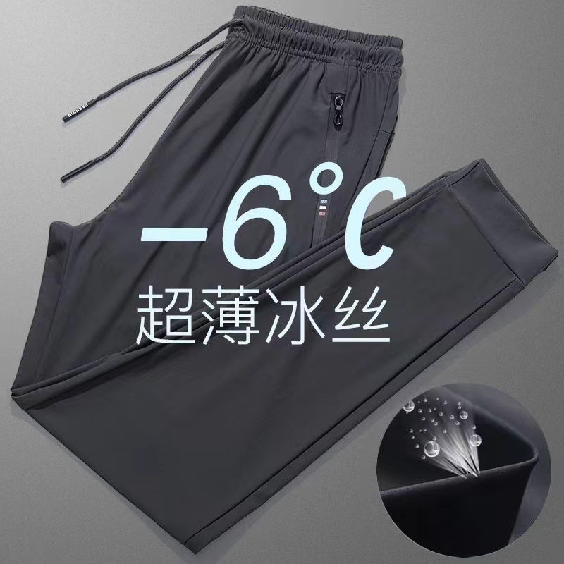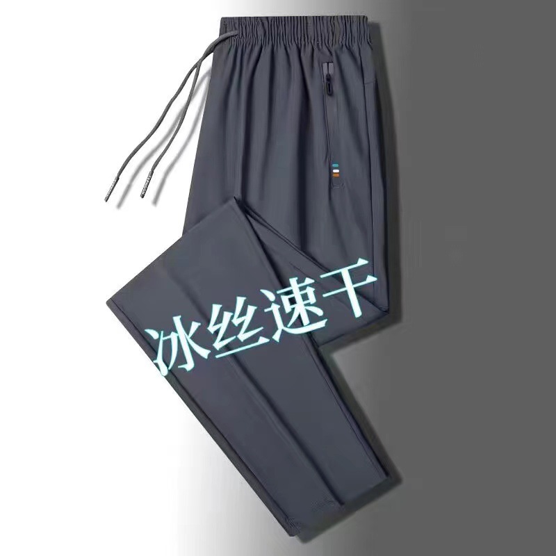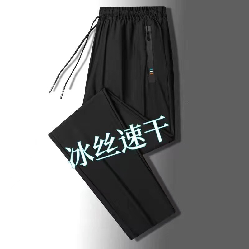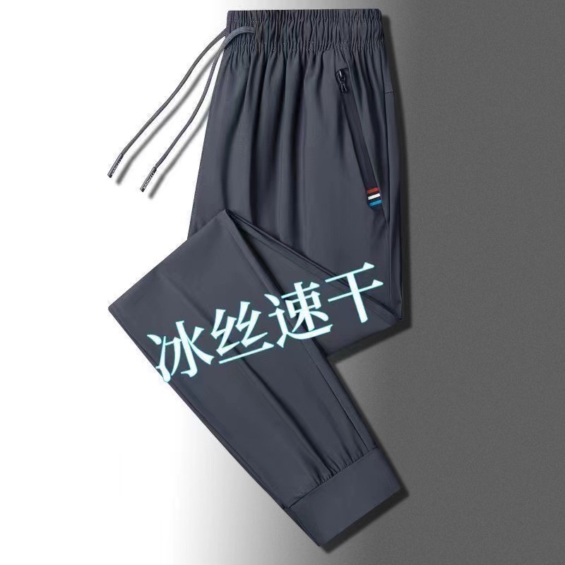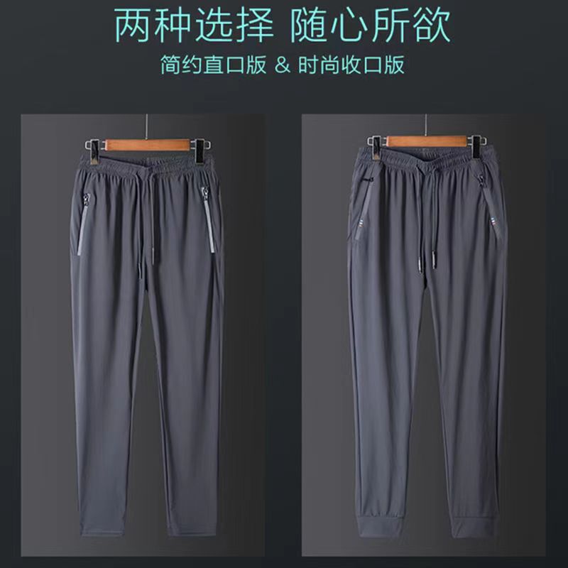 Летние штаны из ледяного шелка для мужчин, тонкие повседневные брюки, свободные прямые быстросохнущие спортивные повседневные длинные брюки.