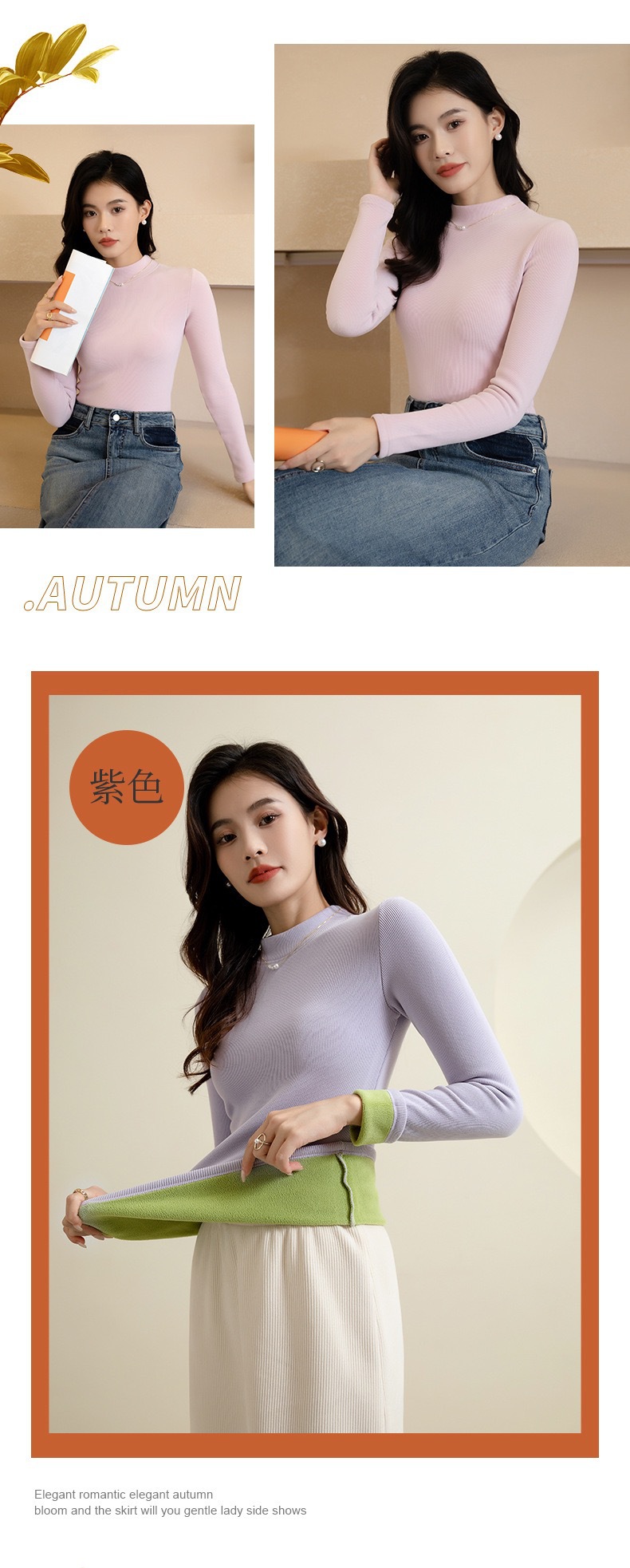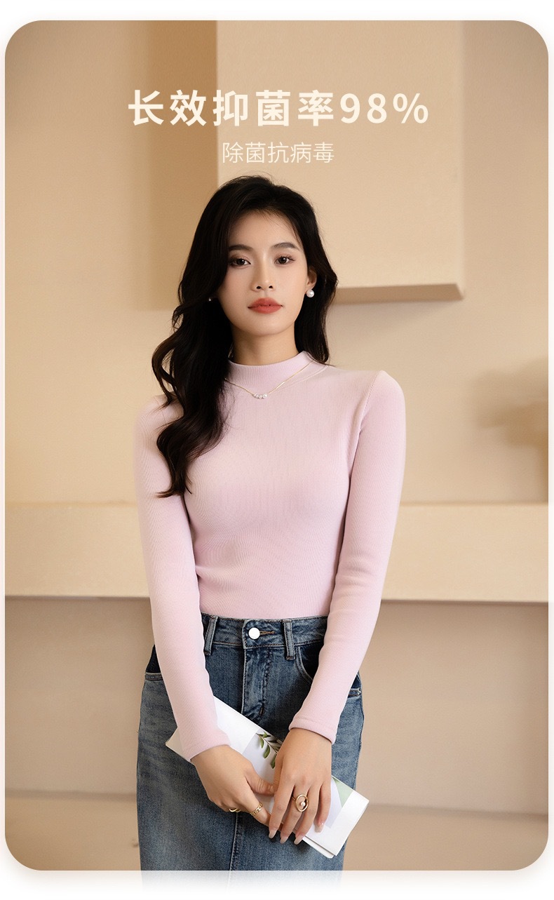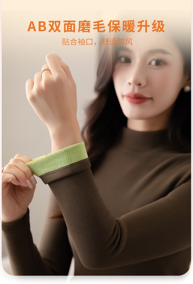 [Горбатый бархат] Зимний женский полувысокий воротник плюс бархат толстый нижний рубашка термобелье