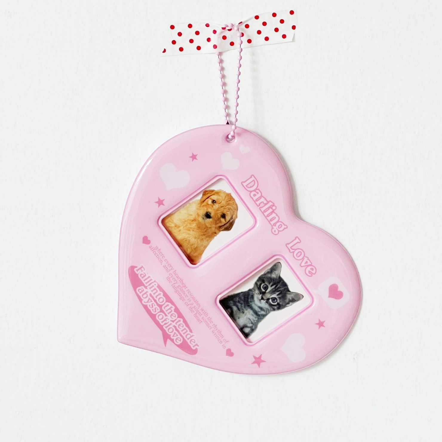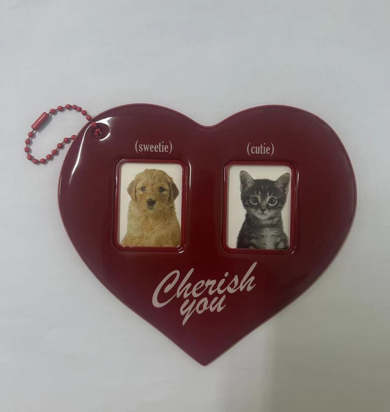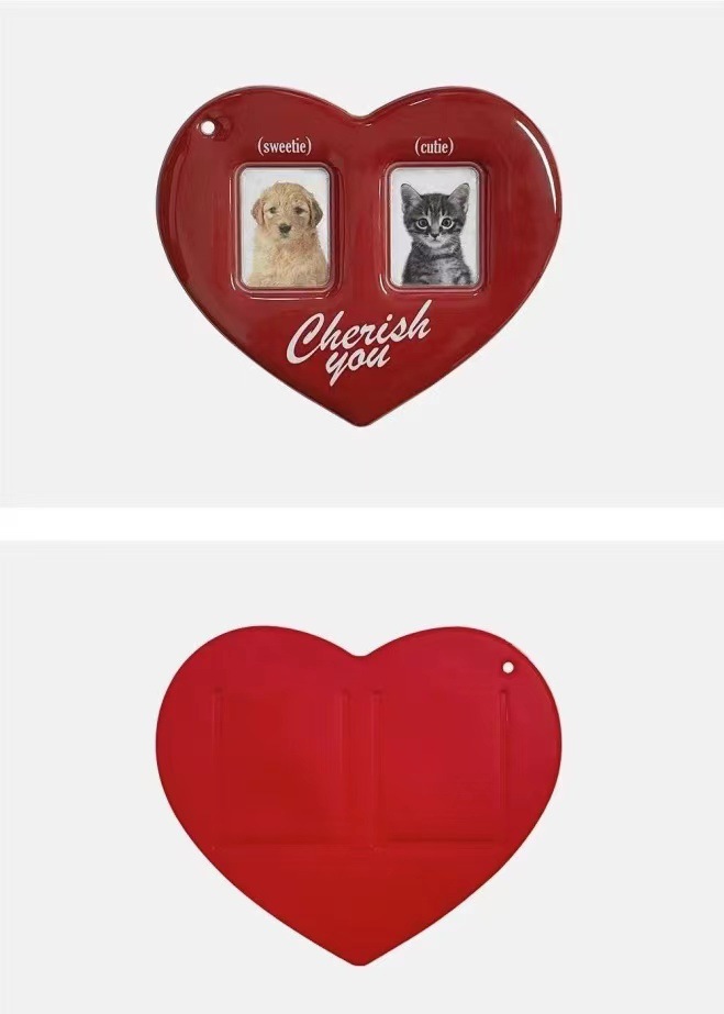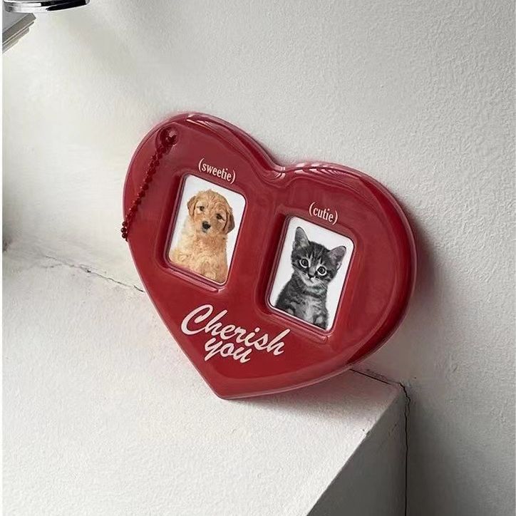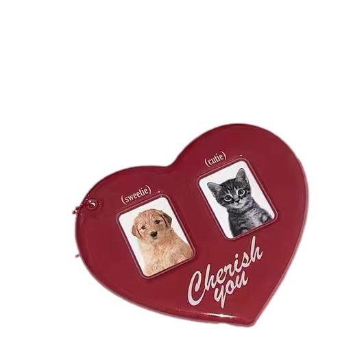 ins红色双爱心2寸大头贴证件照情侣照追星爱豆照片卡套挂件钥匙扣