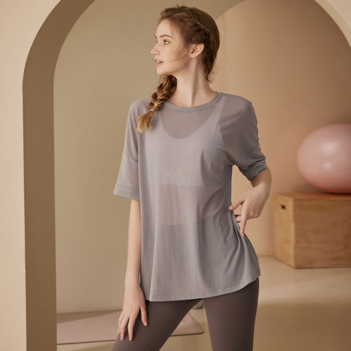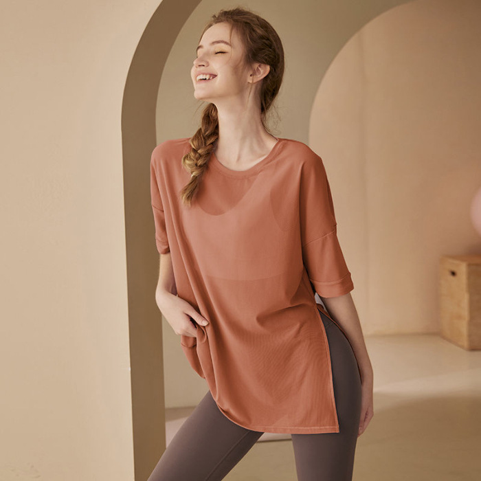 Интернет красная одежда для йоги дышащий фитнес с короткими рукавами, покрывающий бедра спортивный топ женский летний бег тренировочная блузка свободная блузка для похудения