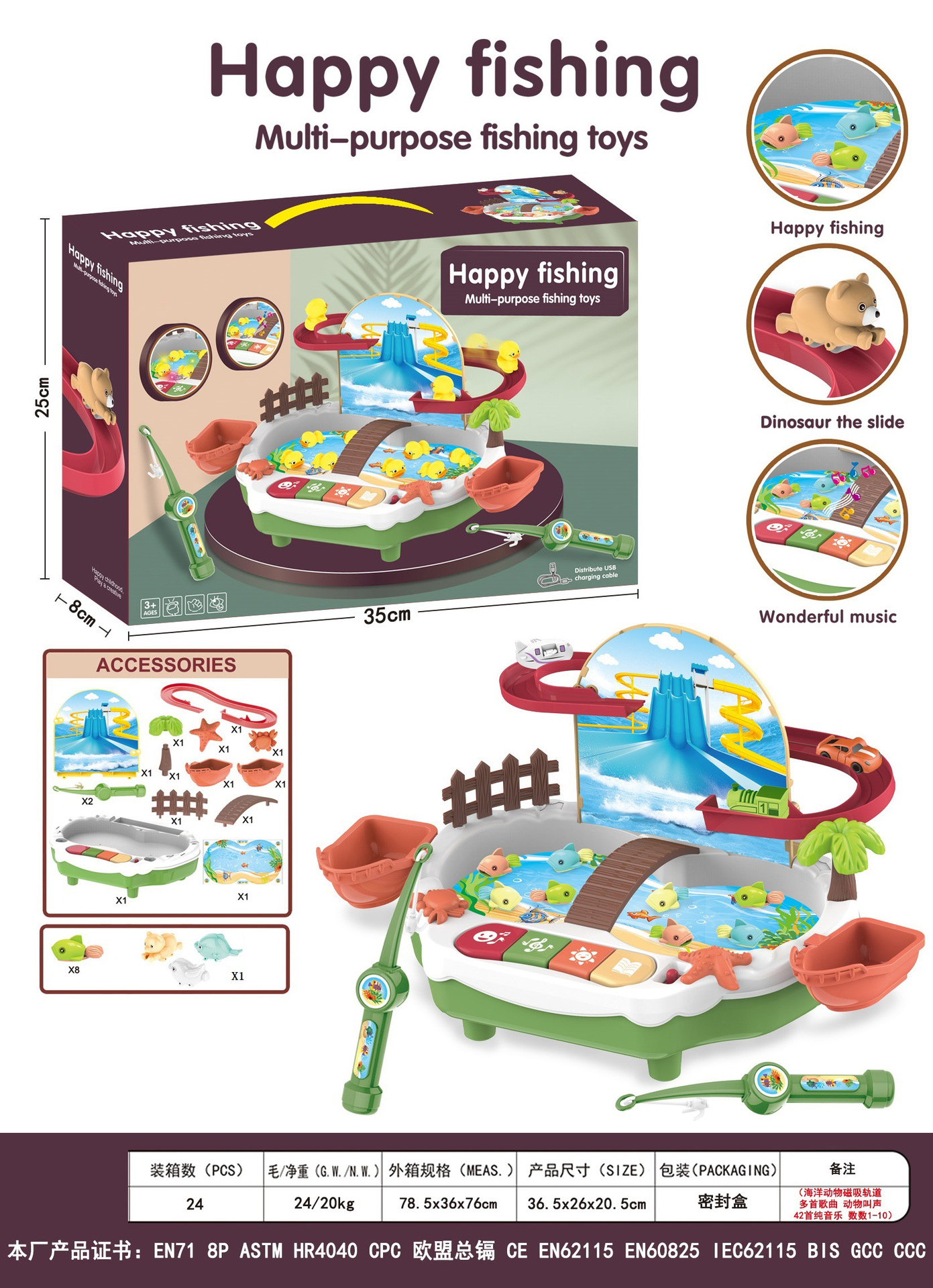 Летняя электрическая дорожка играет в воде Diaoyutai Fun Ocean Paradise Горка Магнитная рыбалка Игрушка Свет Музыка