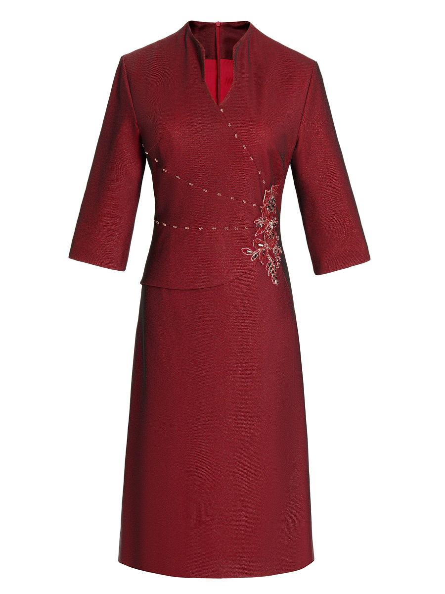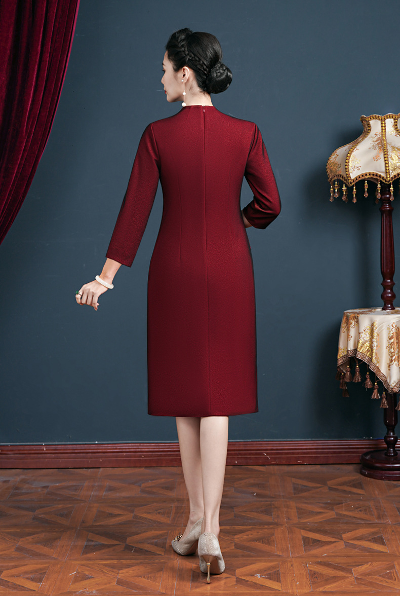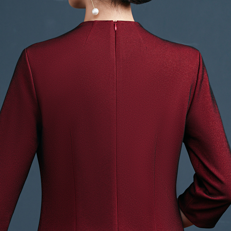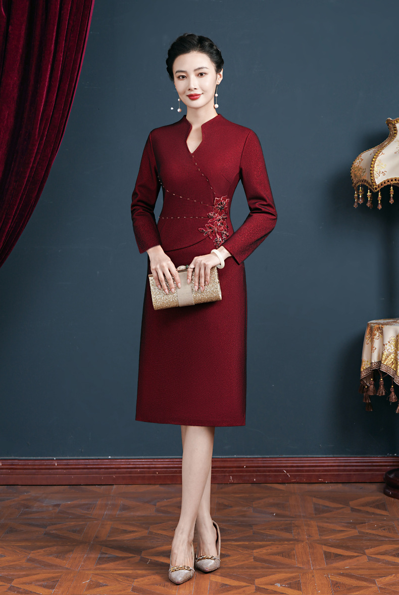 2024 новый осенний костюм мамы с талией и листьями винно-красного свадебного платья
